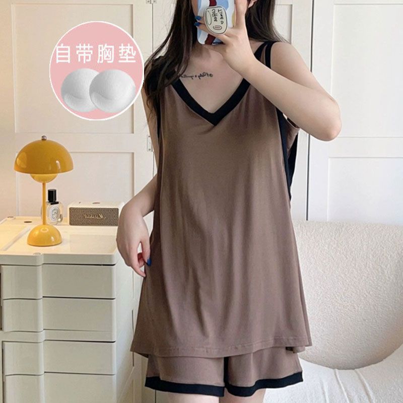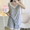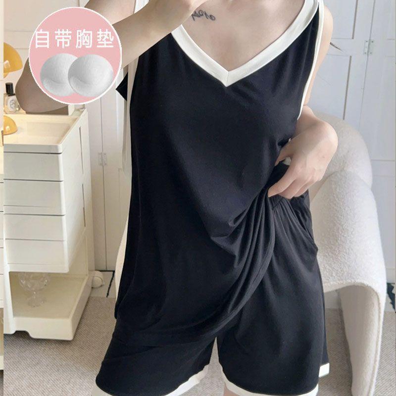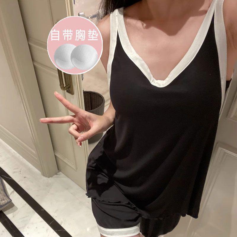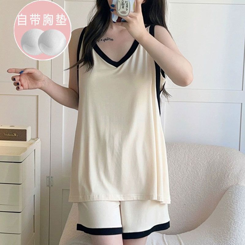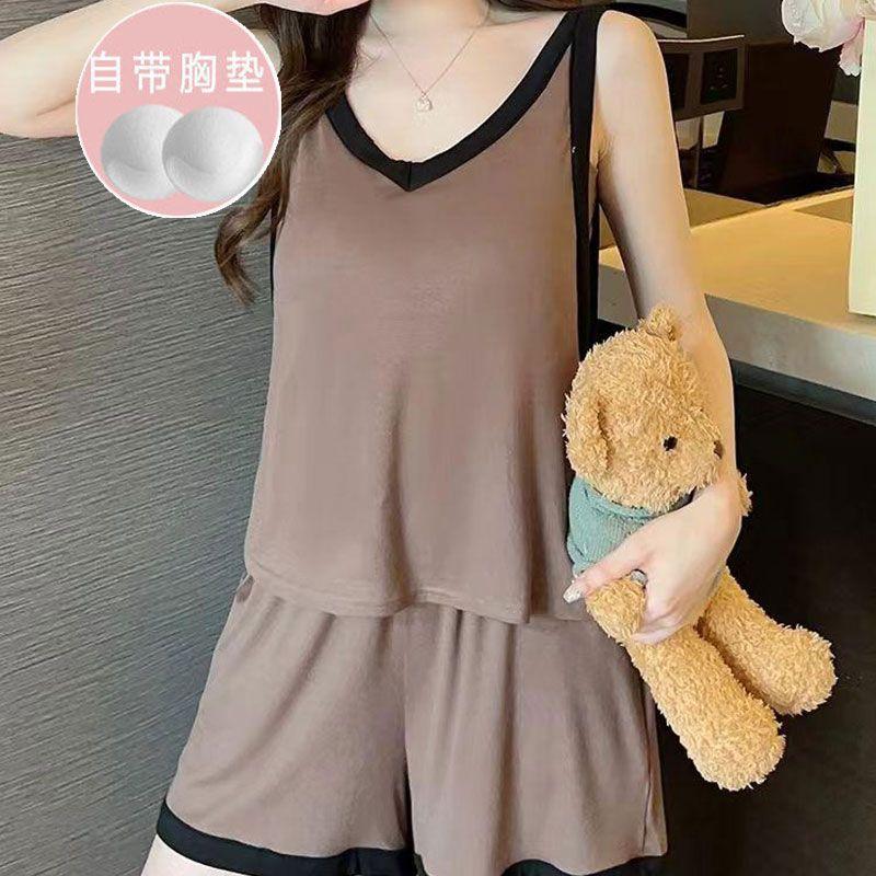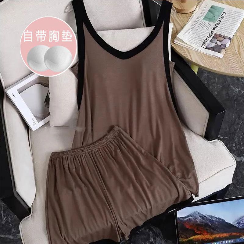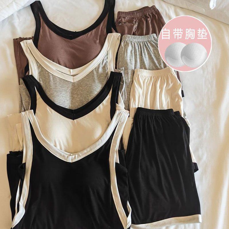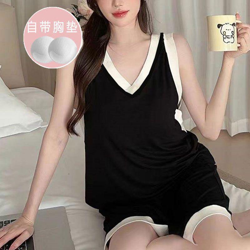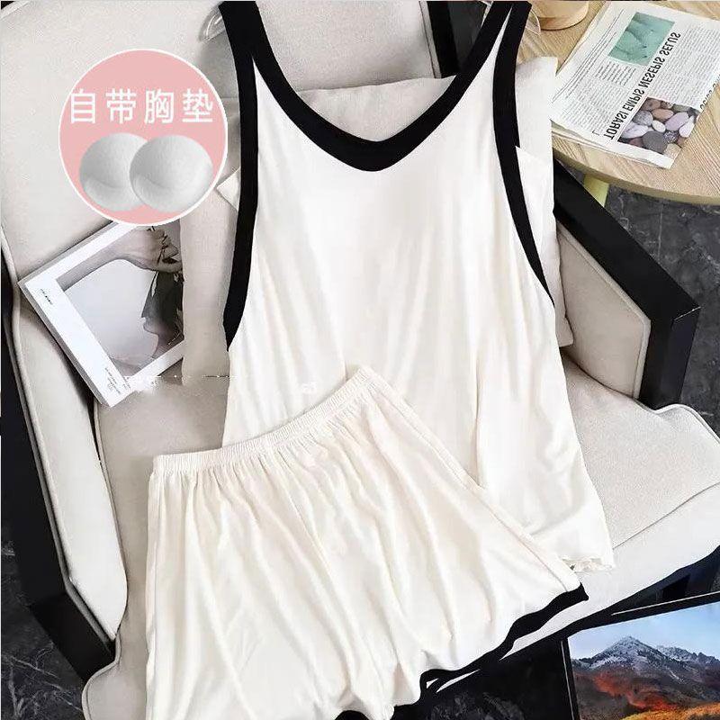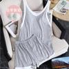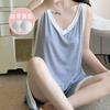 Chaleco de Verano Nuevo para Mujer sin Mangas con Almohadilla en el Pecho Traje de Shorts de Color Sólido Ropa de Casa Casual Holgada