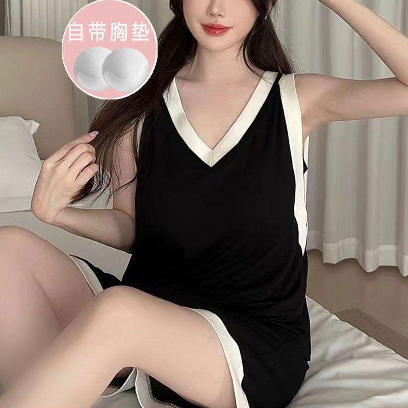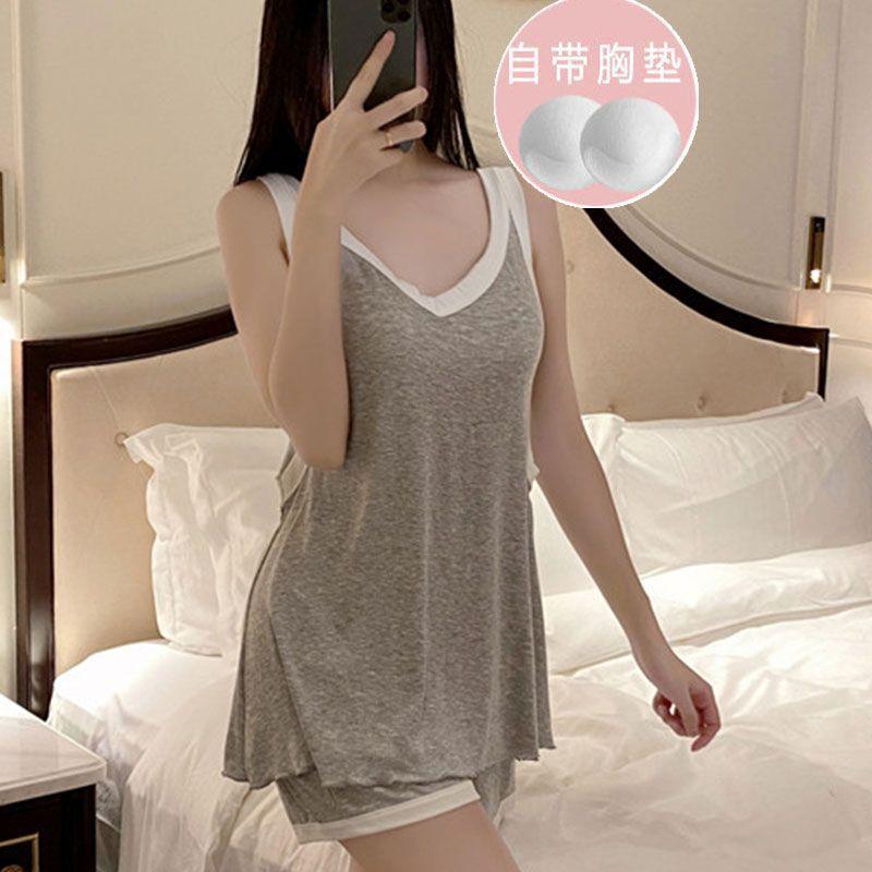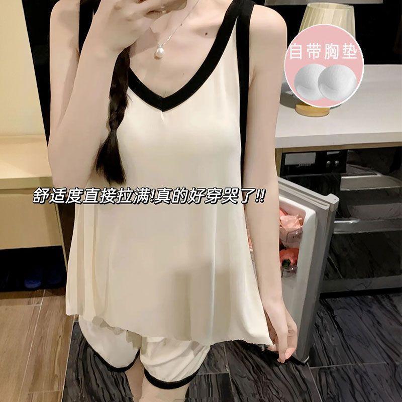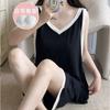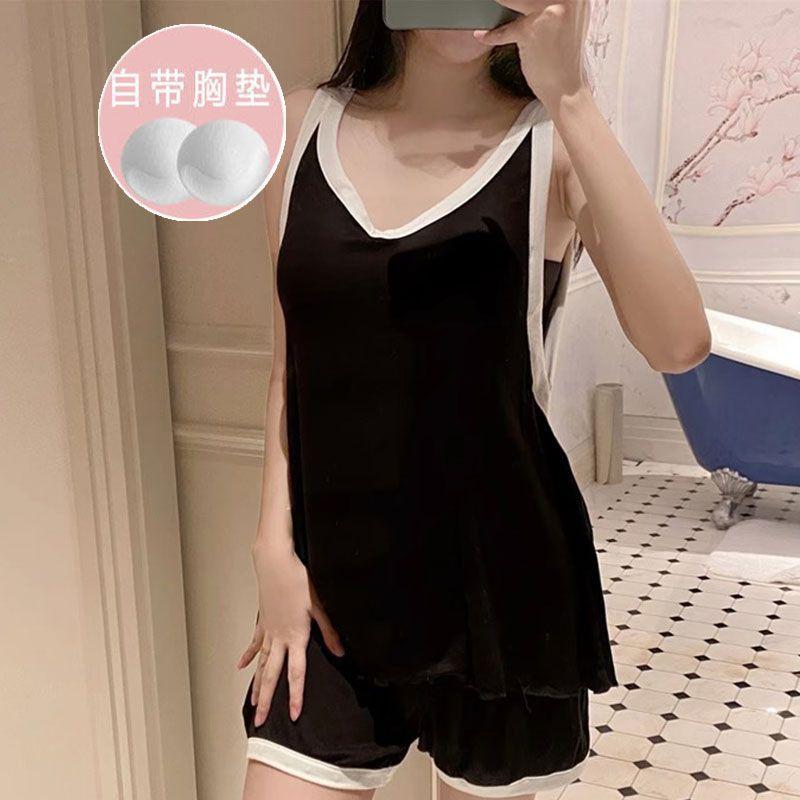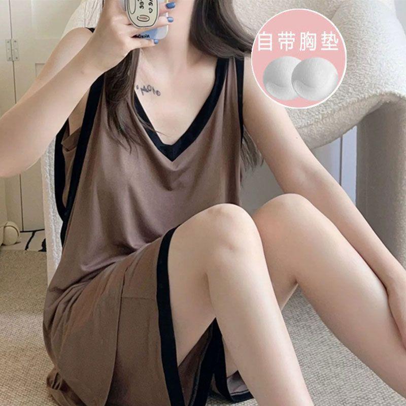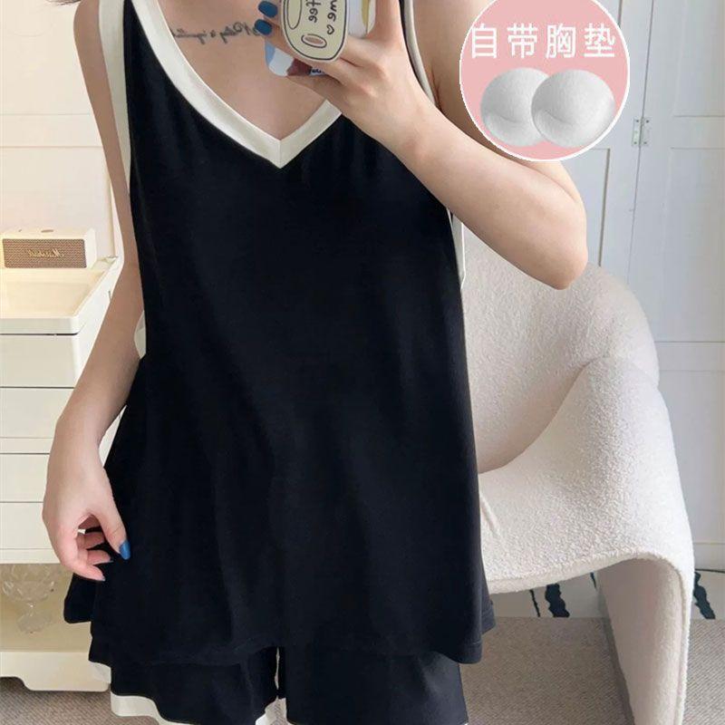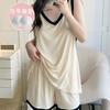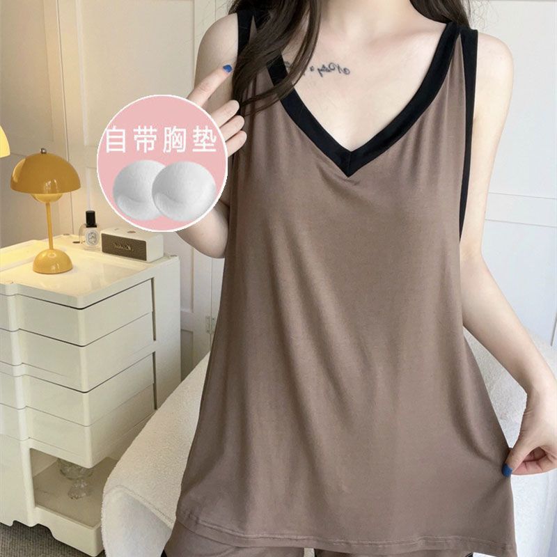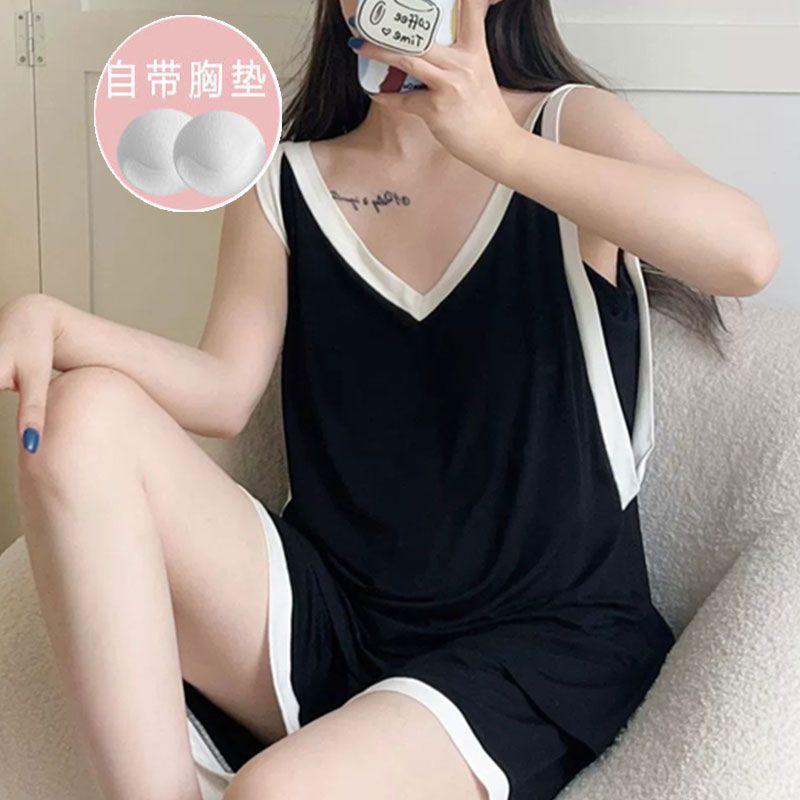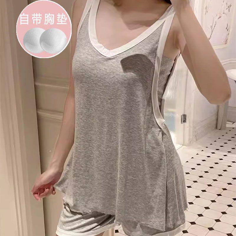 Chaleco de Verano Nuevo para Mujer sin Mangas con Almohadilla en el Pecho Traje de Shorts de Color Sólido Ropa de Casa Casual Holgada