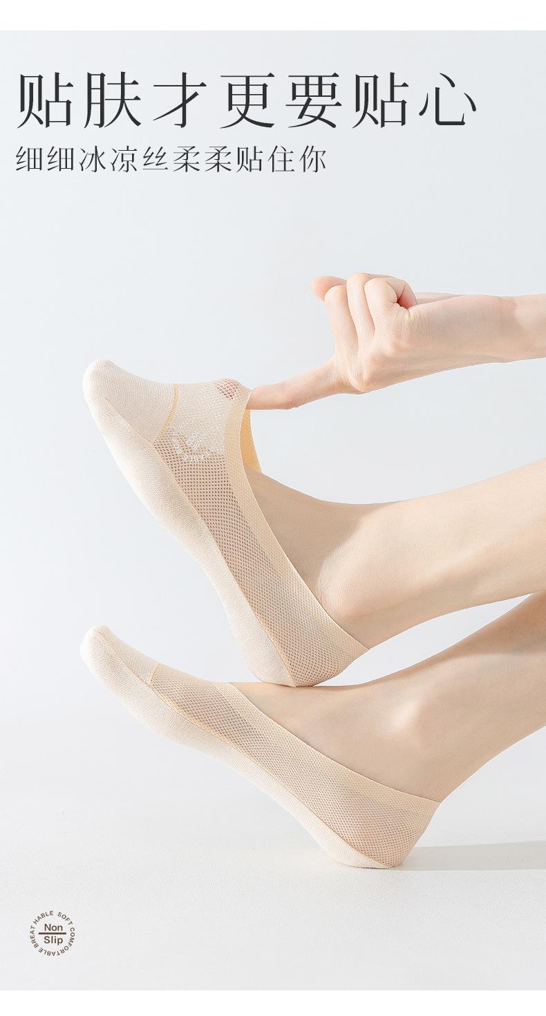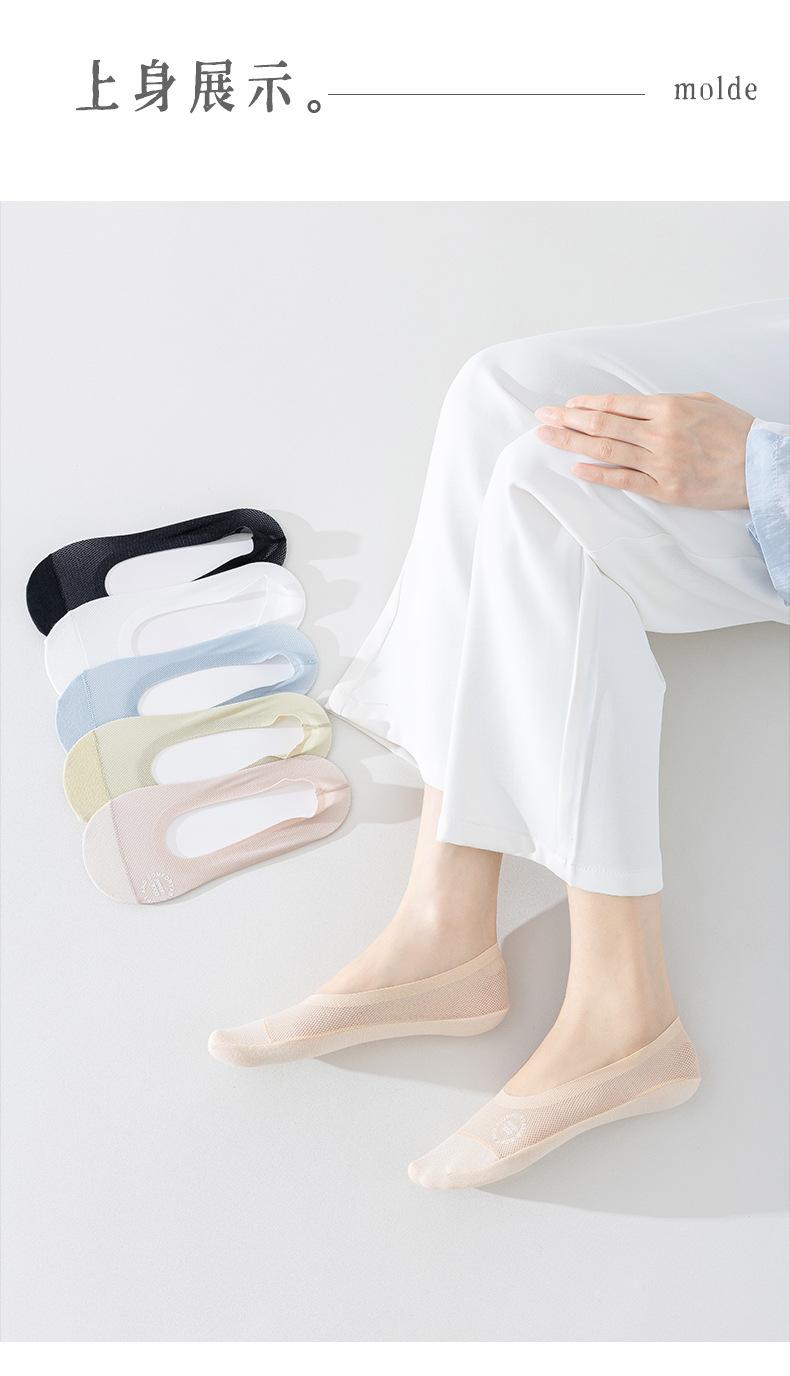 Calcetines Invisibles Tipo Barco de Seda de Hielo con Etiqueta Redonda Pequeña para Mujer, Antideslizantes, Invisibles, Calcetines Cortos, Calcetines Finos de Algodón para Verano, Calcetines de Corte Bajo