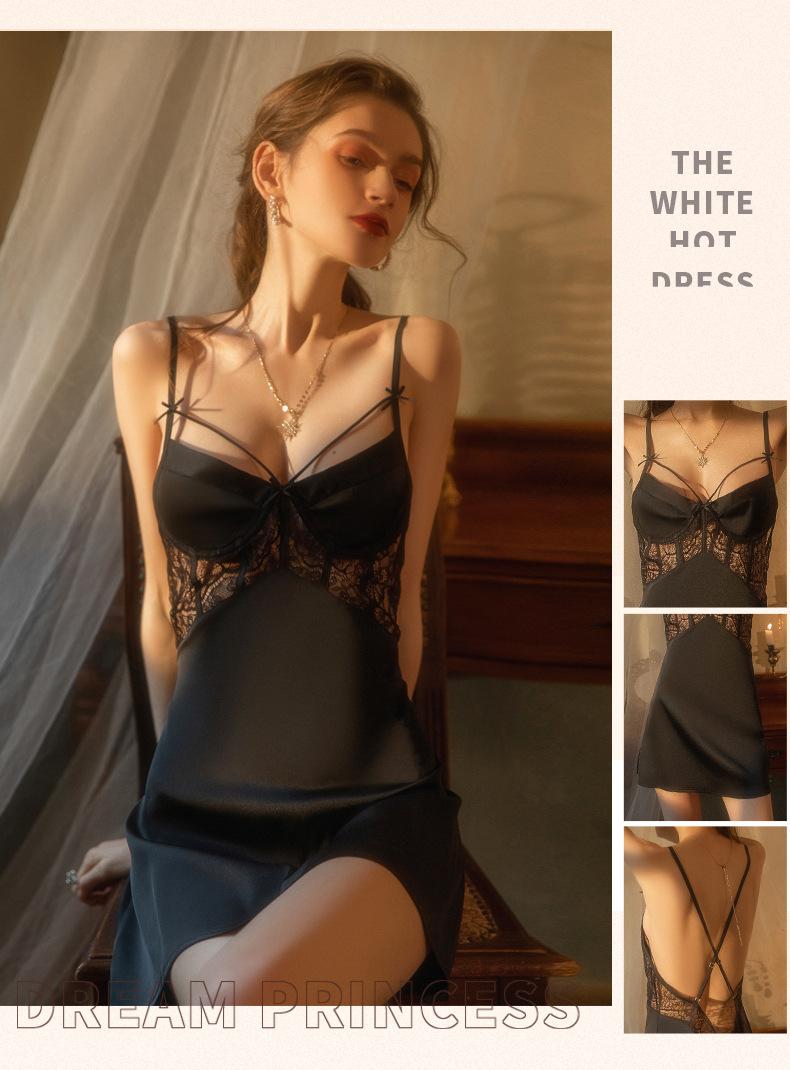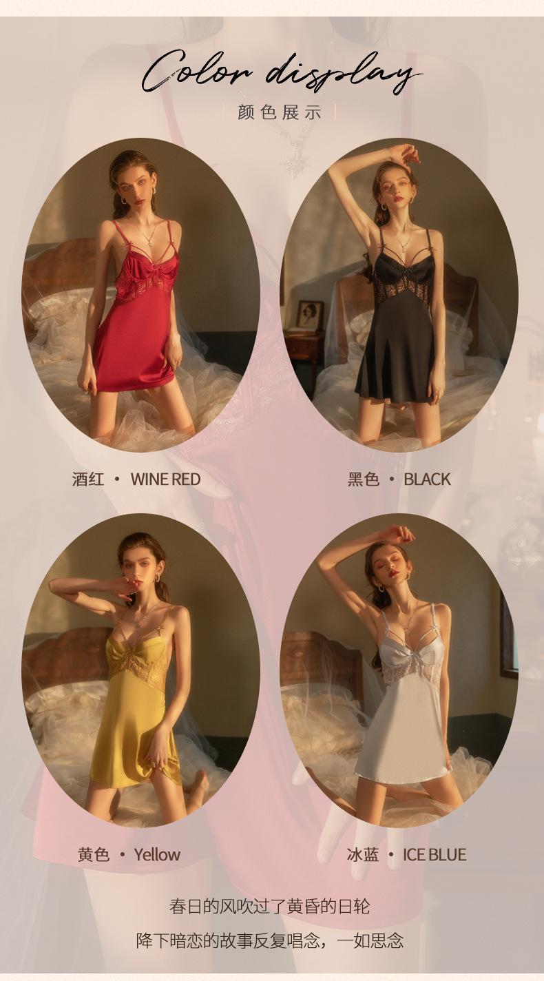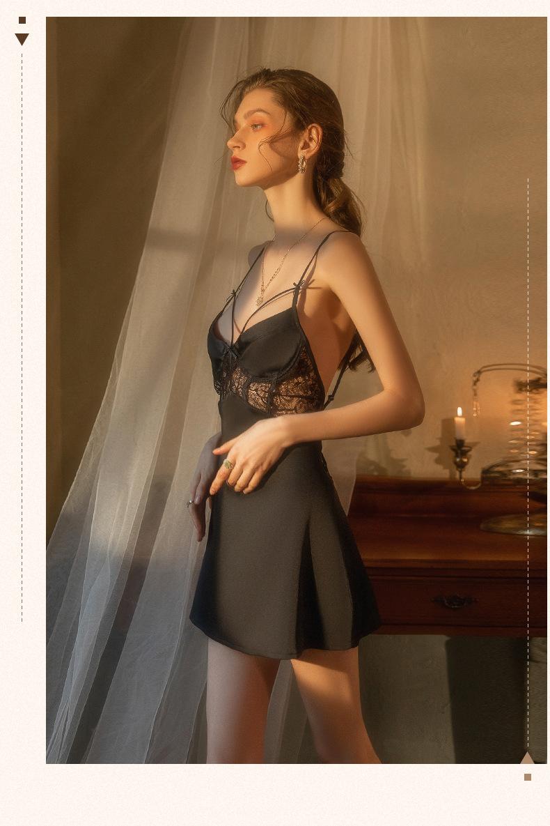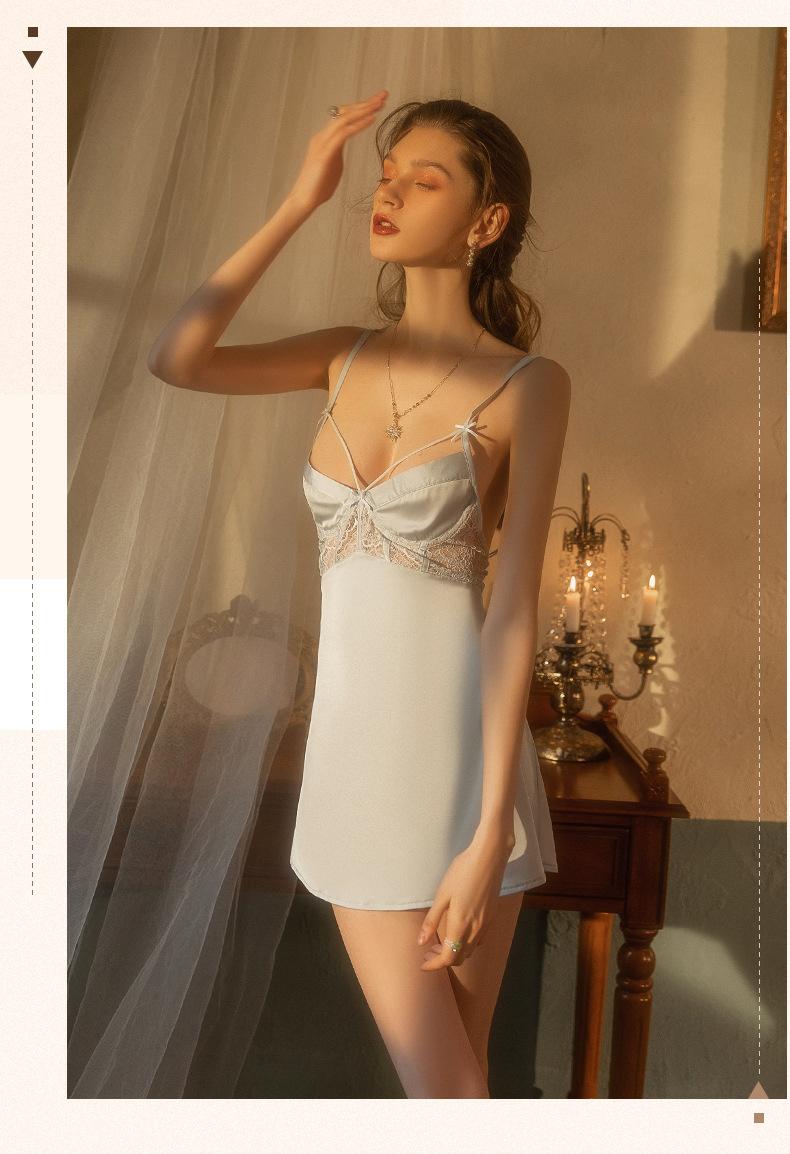 Mono de Lencería Sexy Camisón Mujer Verano Encaje Fino Calado Camisón de Tirantes Falda Corta Ropa de Noche Ropa de Casa 1753