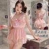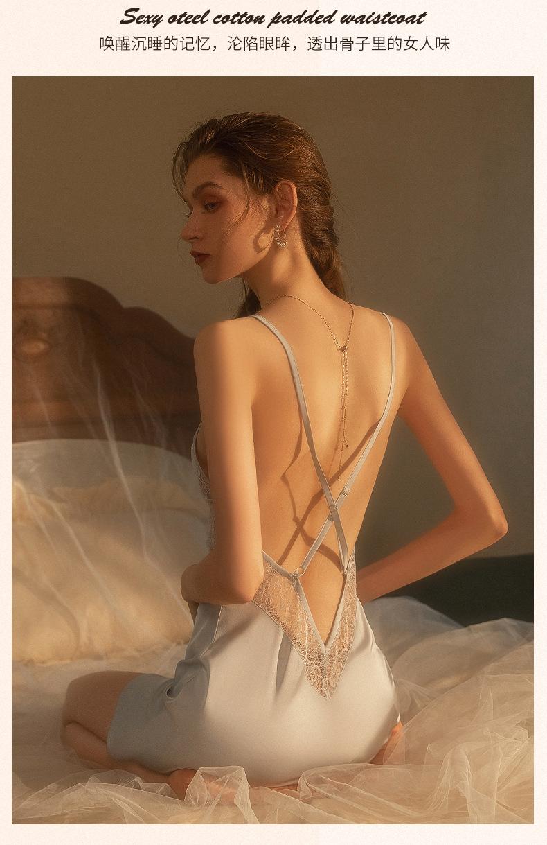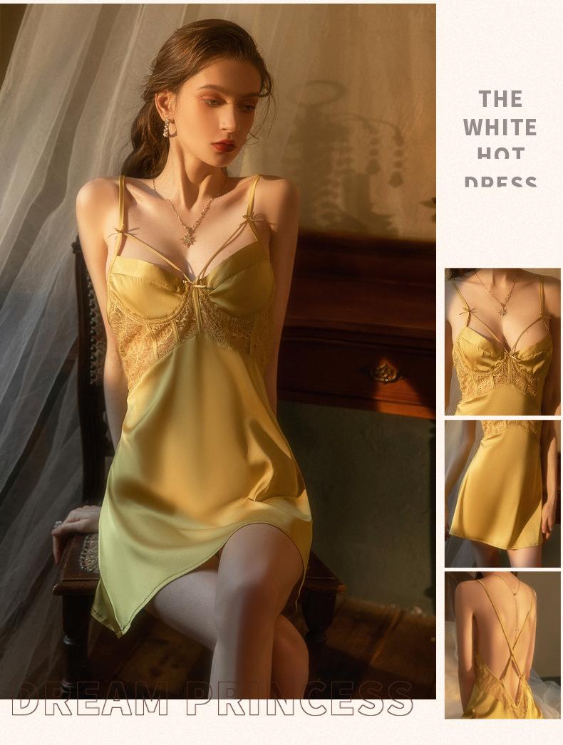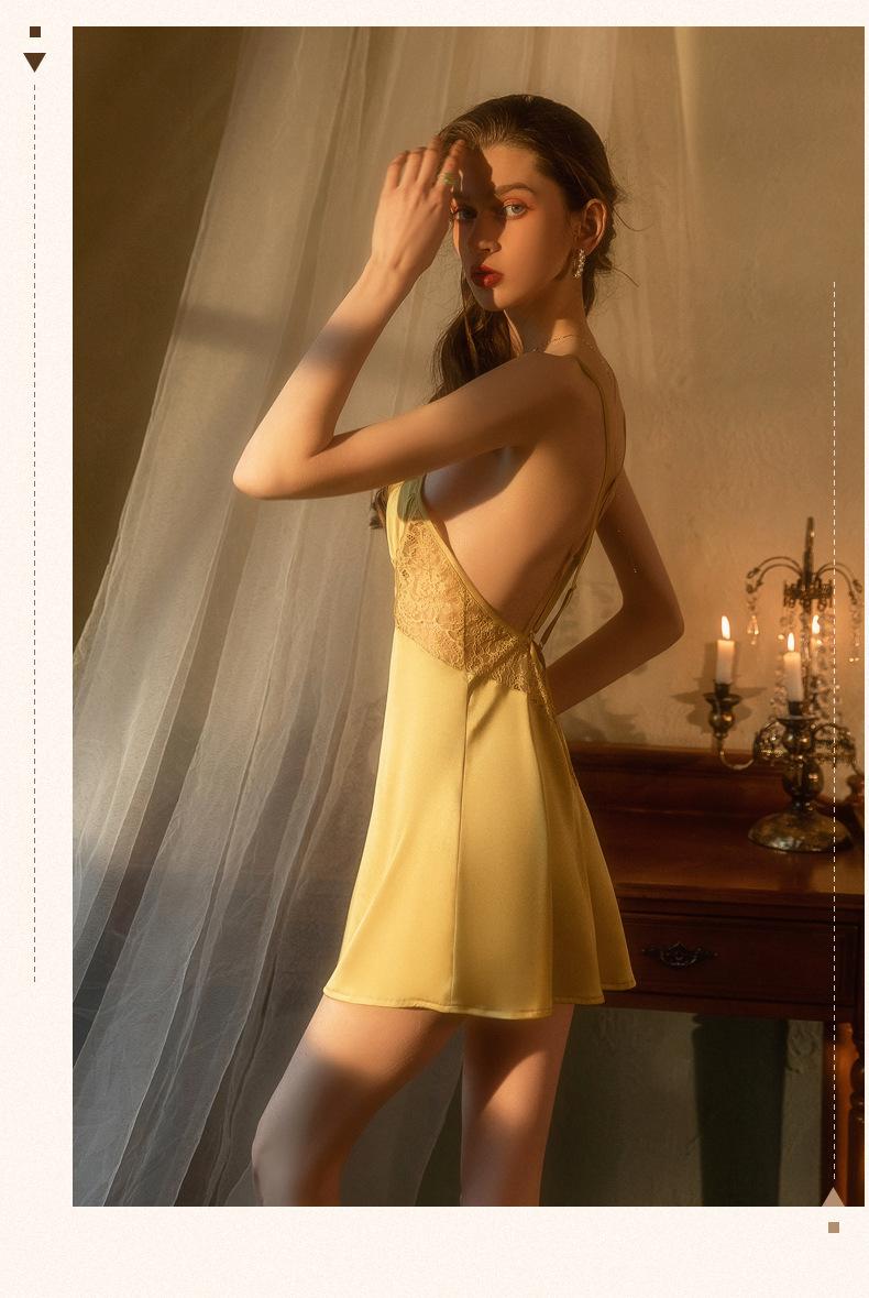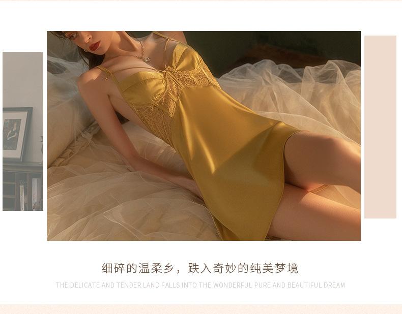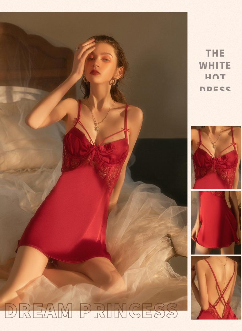 Mono de Lencería Sexy Camisón Mujer Verano Encaje Fino Calado Camisón de Tirantes Falda Corta Ropa de Noche Ropa de Casa 1753