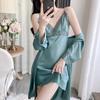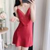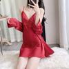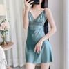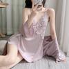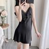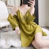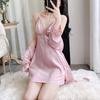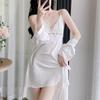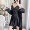Satin ice silk single nightgown-black, Black-two-piece suit (skirt + robe), Satin ice silk single nightgown-wh...