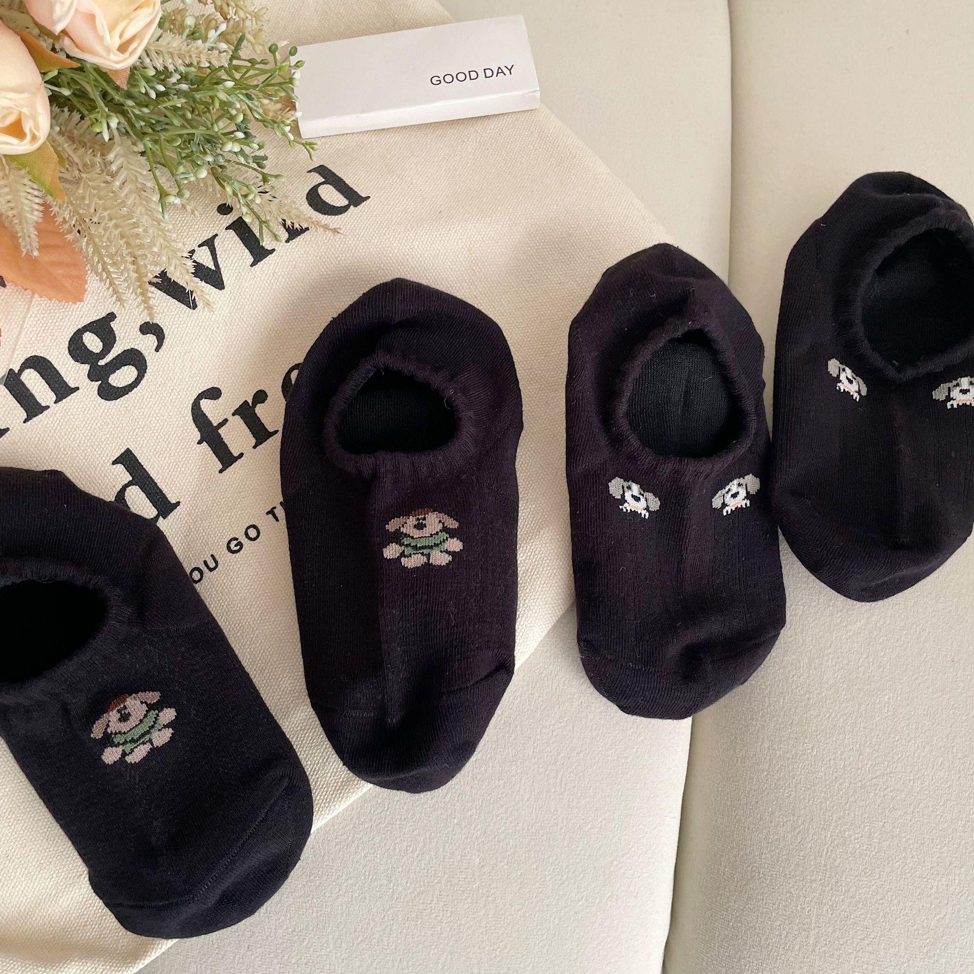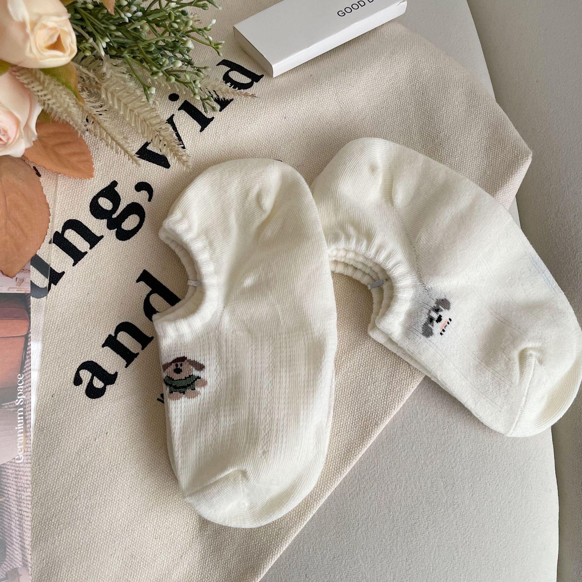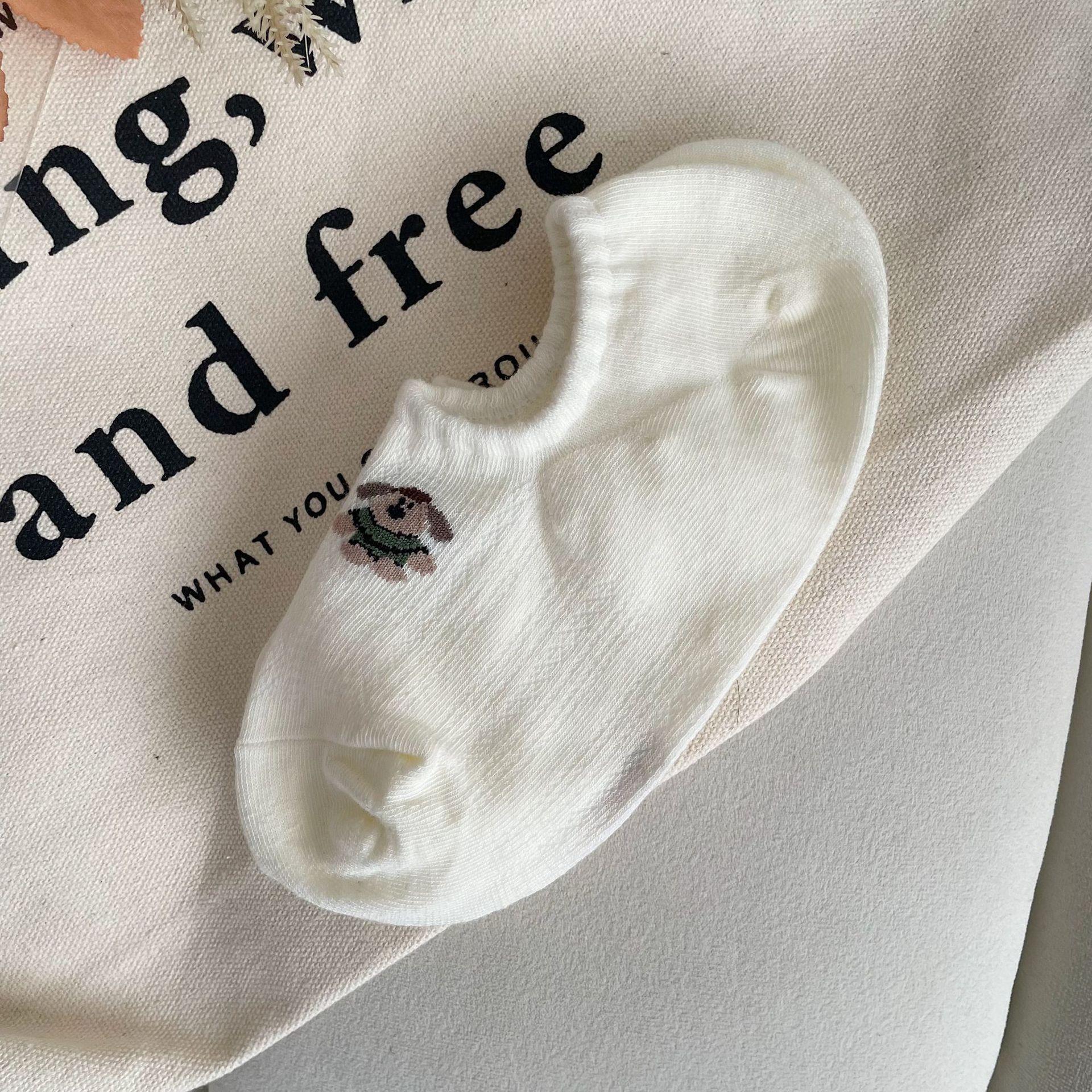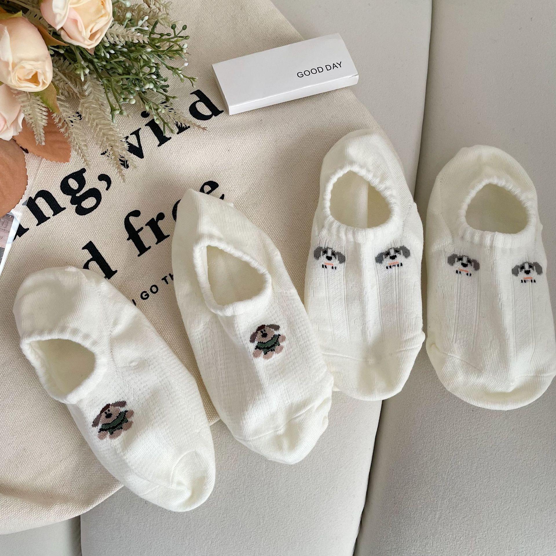 Calcetines de Verano para Mujer Calcetines de Barco de Corte Bajo Estilo Japonés Lindo Cachorro de Dibujos Animados Calcetines Invisibles Algodón Puro Calcetines Blancos Simples Combinan con Todo