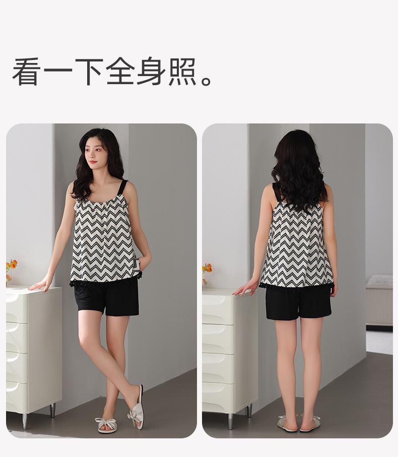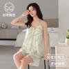 Pijama para Mujer Verano Delgada Modal Tirantes Shorts Moda Verano con Almohadilla en el Pecho Antiexposición Conjunto para Estar en Casa