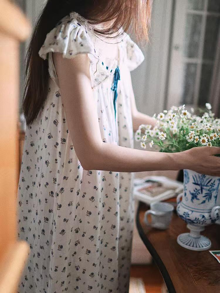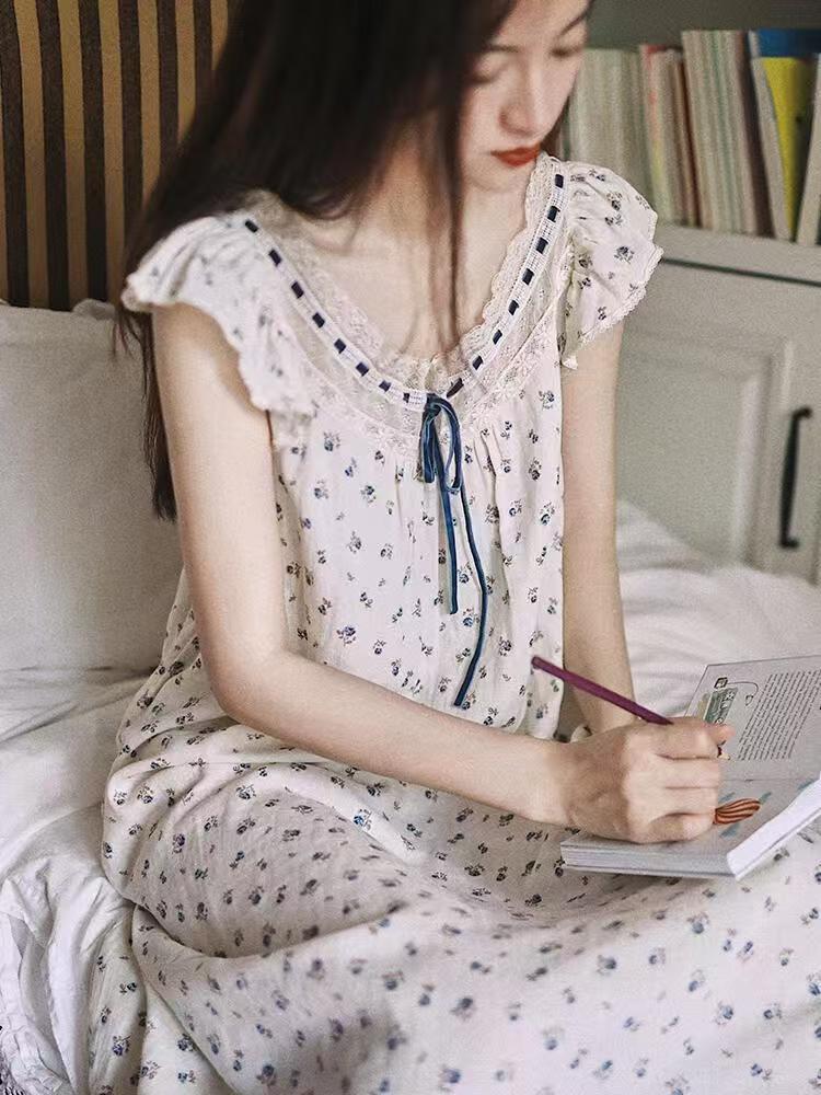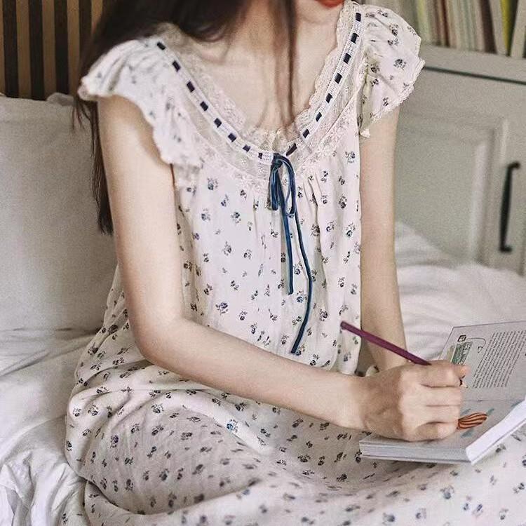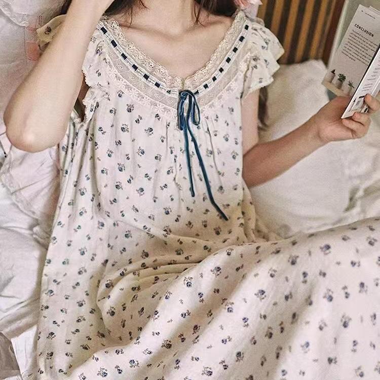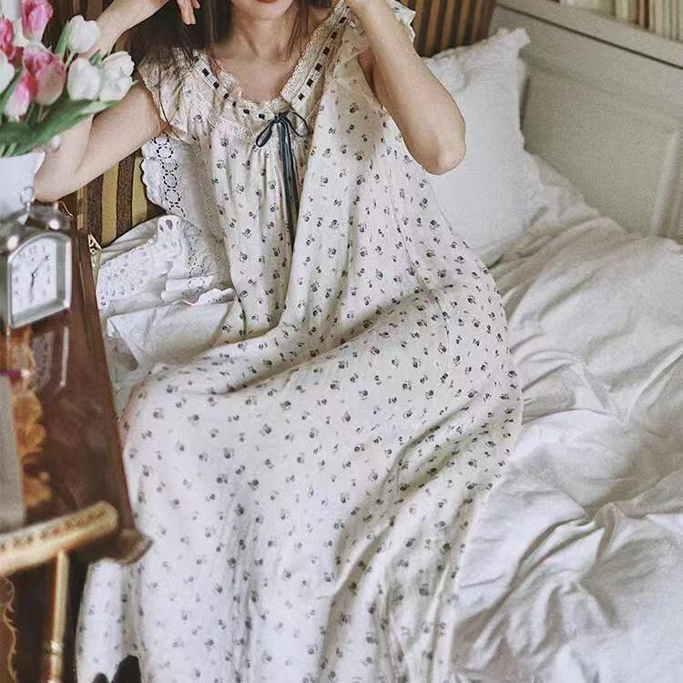 Nuevo camisón de verano para mujer, vestido de niña floral rosa retro, estilo princesa dulce y lindo, holgado y se puede usar afuera