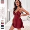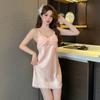 Camisón de satén con encaje para mujer, tentación, de seda pura, sin espalda, falda corta, holgado, para el hogar, 1652