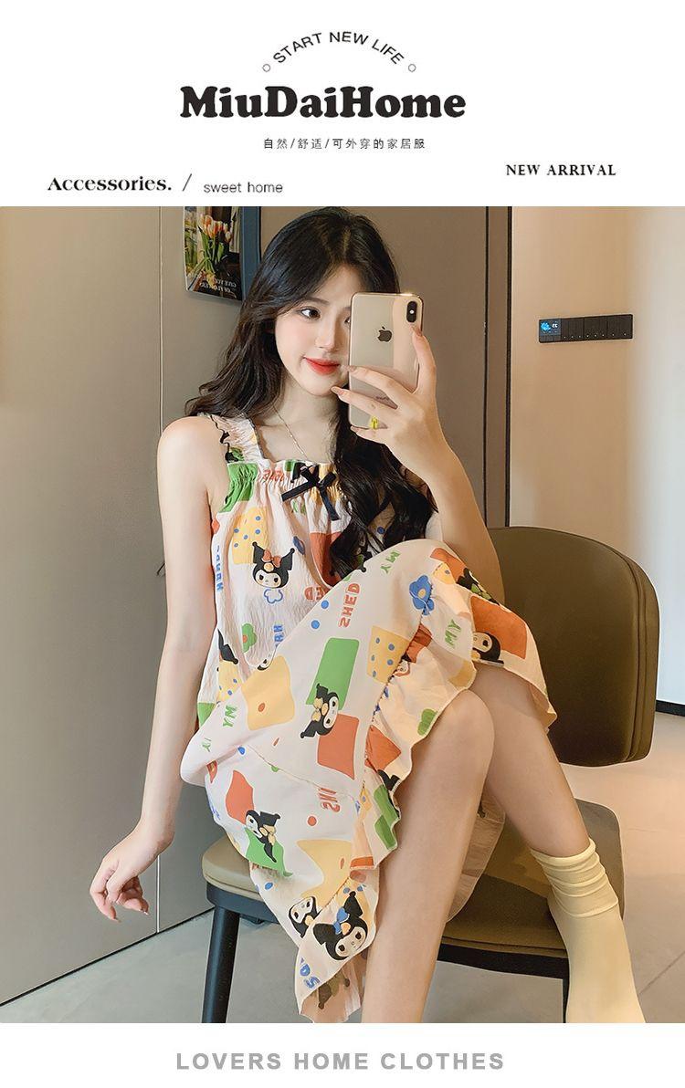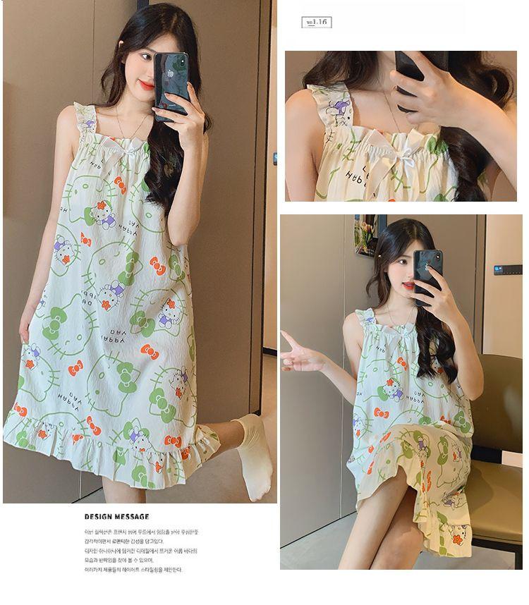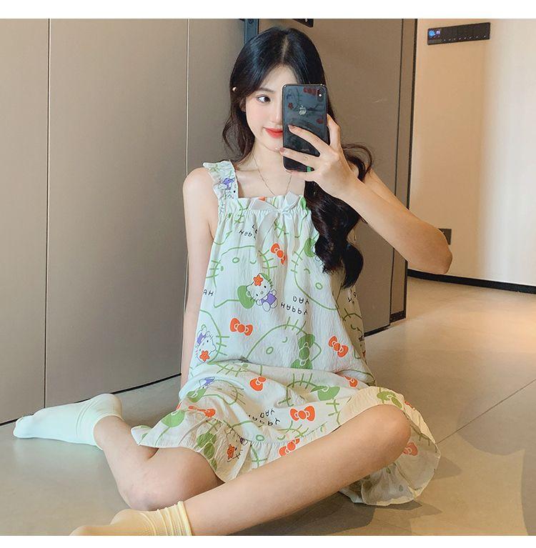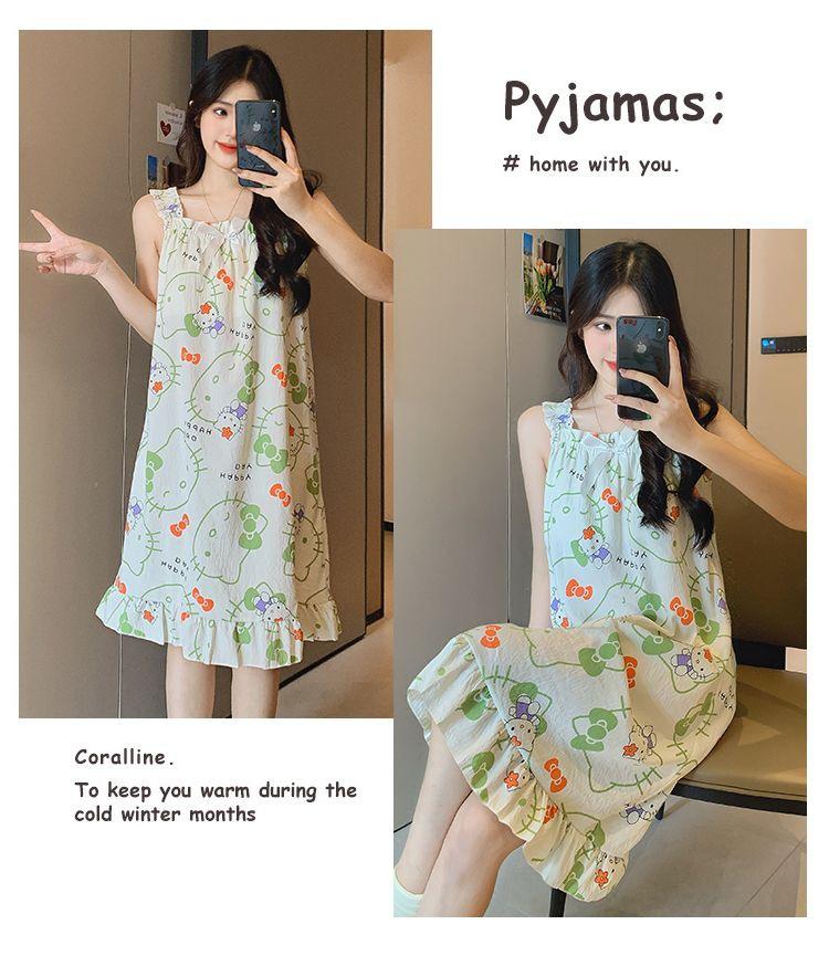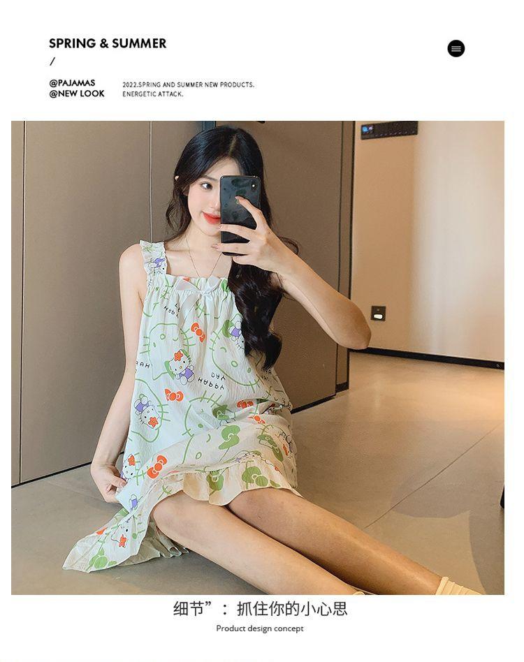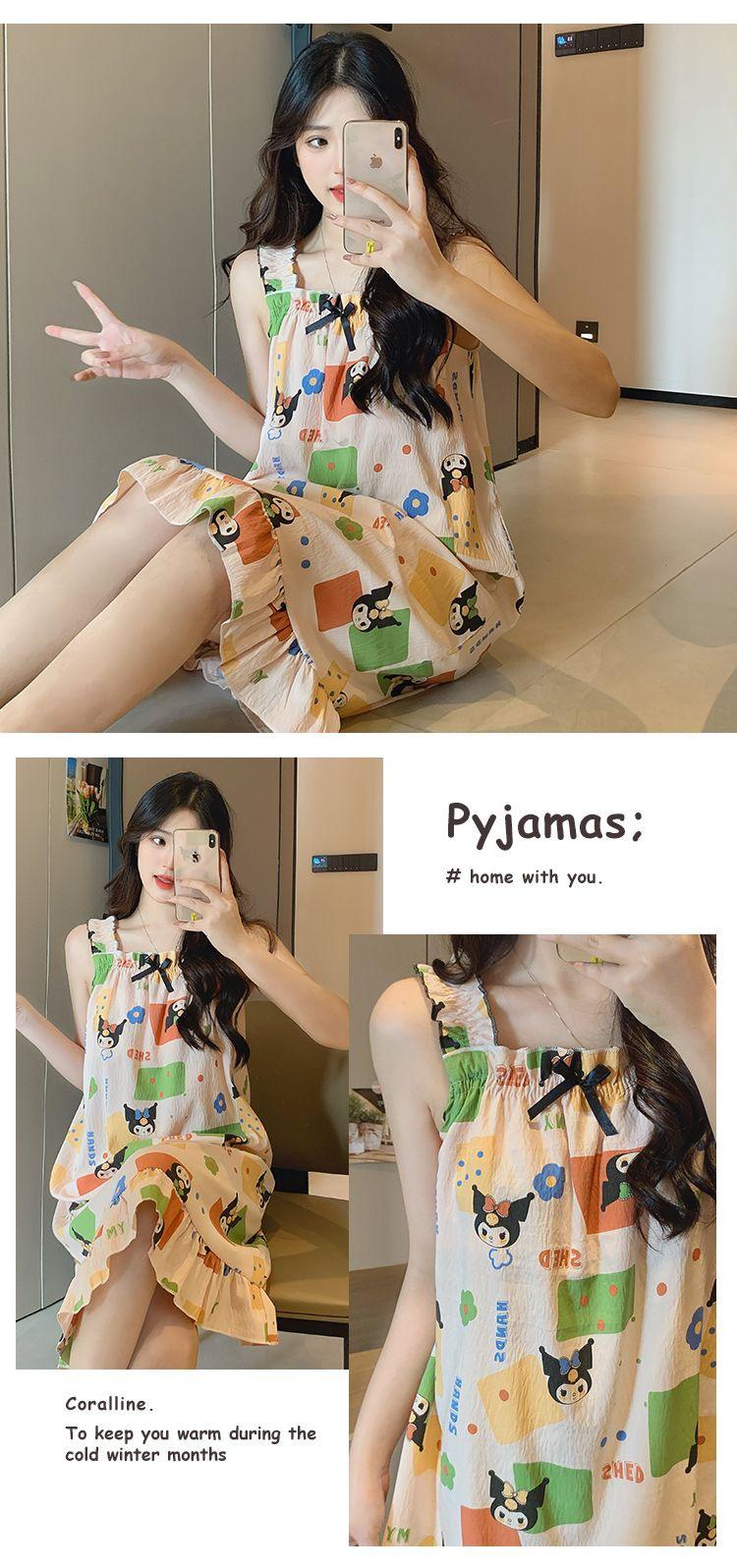 Pijamas de Algodón Nube para Mujer en Verano, Encaje Dulce y a la Moda Más Tirantes Gorditos con Almohadillas de Pecho Removibles, Una Pieza Envío Directo y Envío Gratis