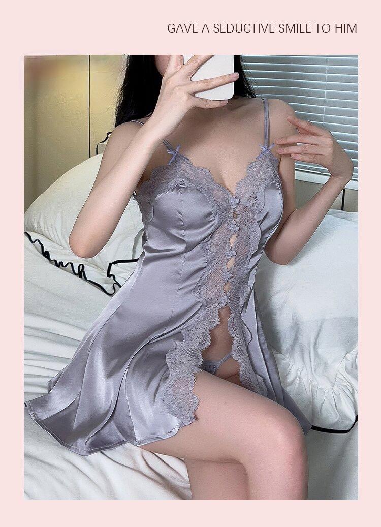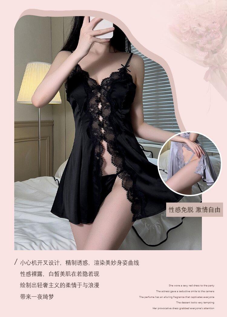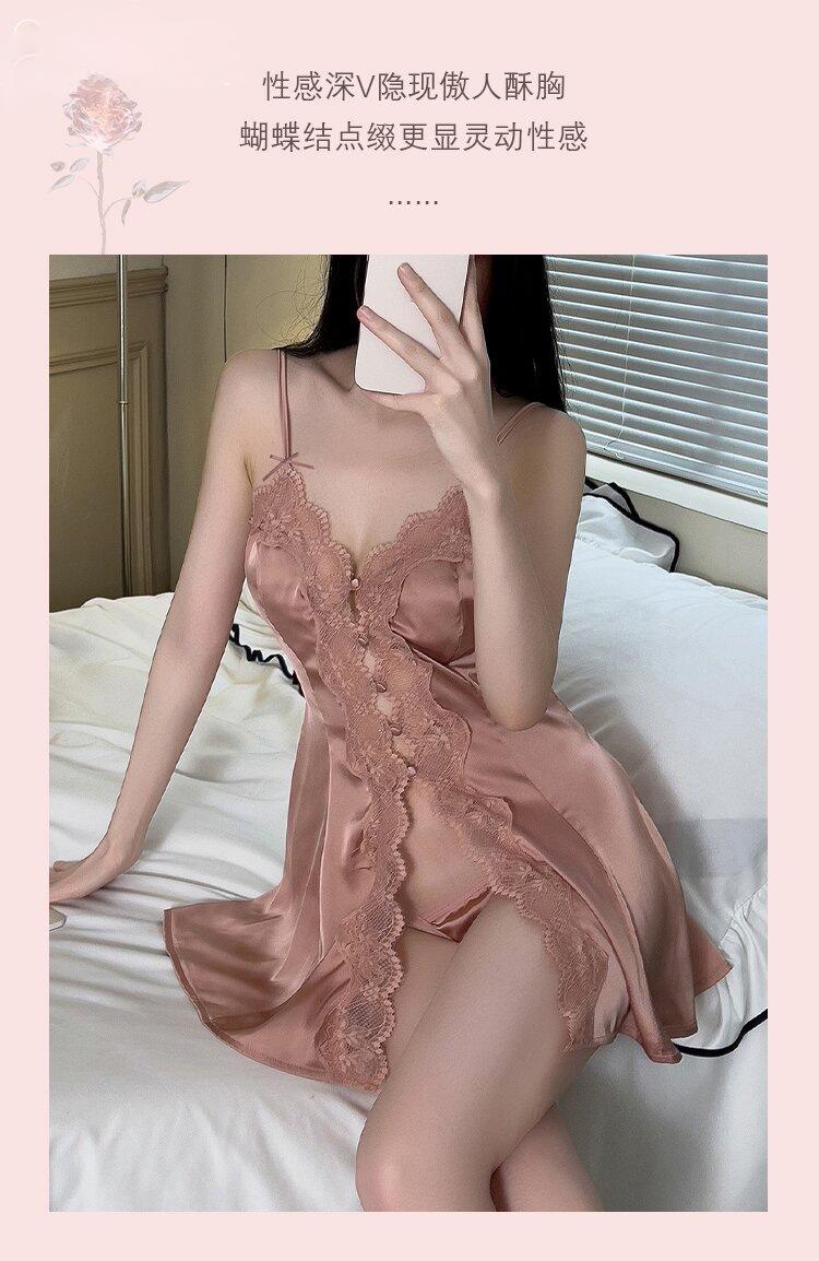 Camisón Romántico Francés Nuevo para Dormir con Tirantes Sexy Habitación Privada Deseo Puro Pijama Encaje V Escote Bajo Lazo 1042