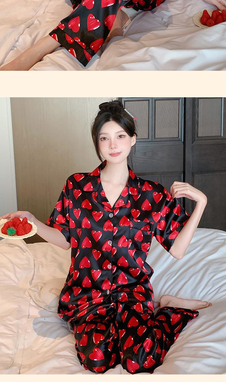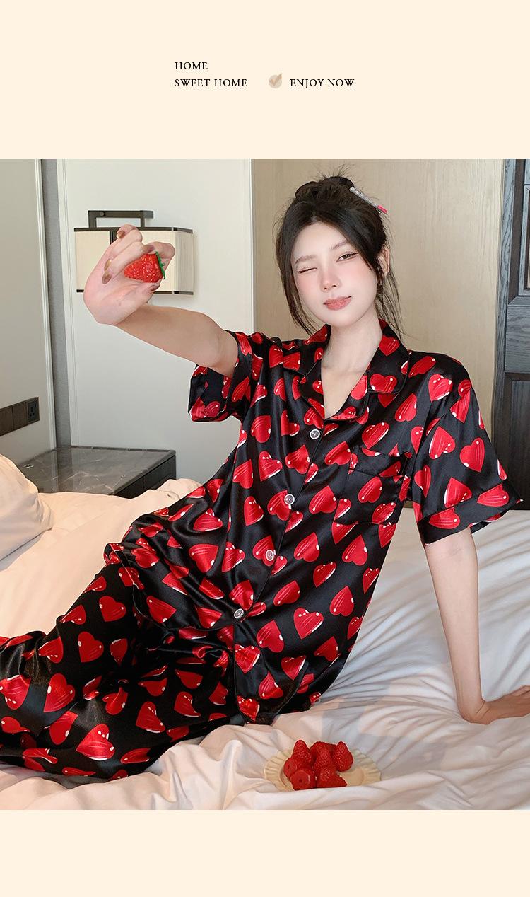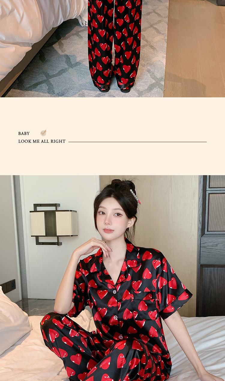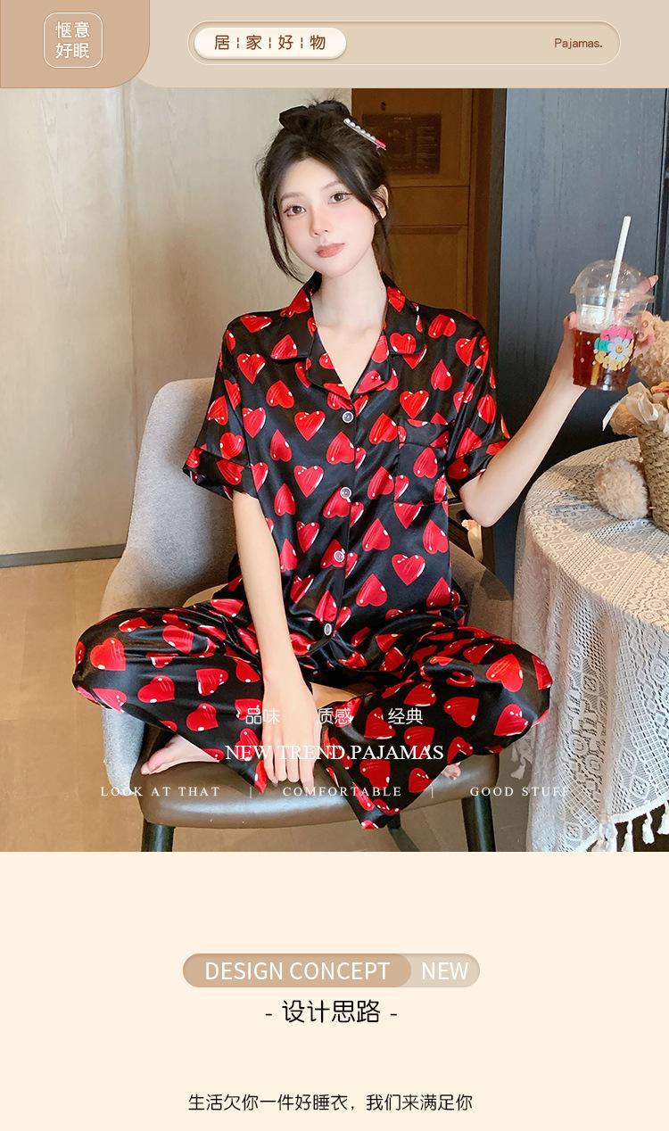 Pijama retro de lujo ligero con corazón de amor de seda de hielo, sensación de alta gama, para dama, ins casual, dulce ropa de casa, traje de manga corta al por mayor