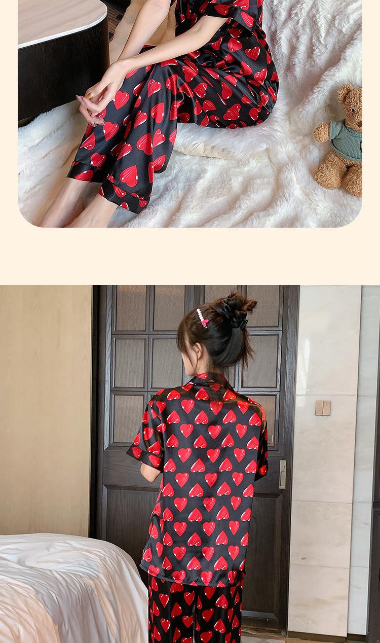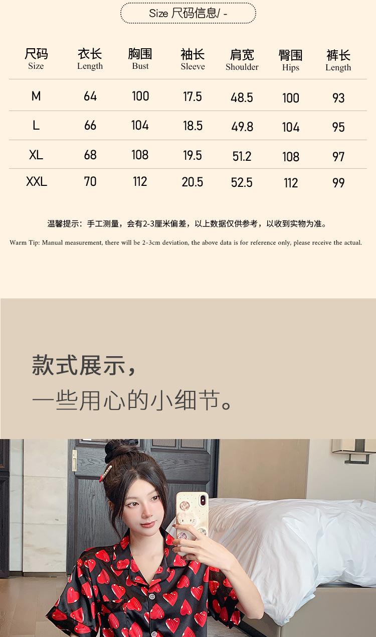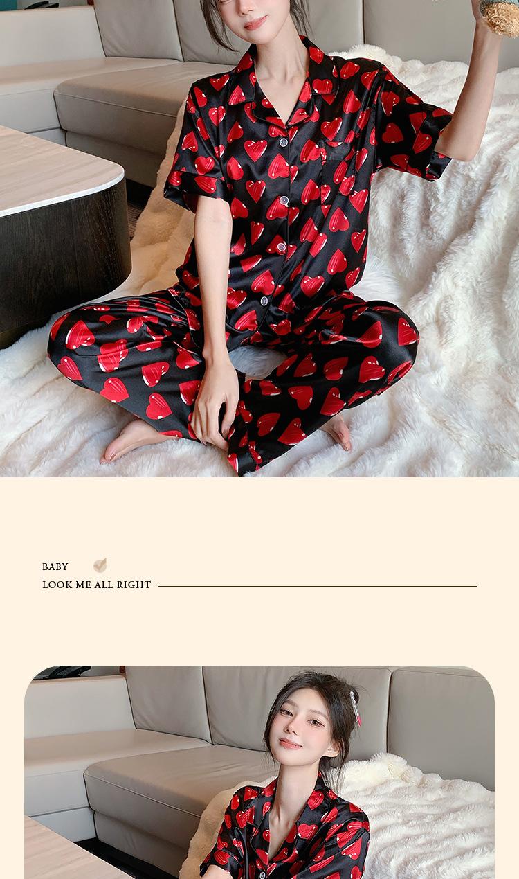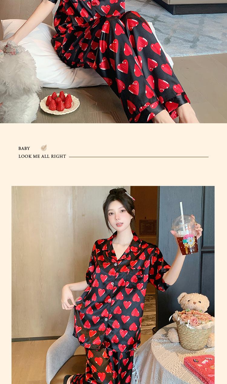 Pijama retro de lujo ligero con corazón de amor de seda de hielo, sensación de alta gama, para dama, ins casual, dulce ropa de casa, traje de manga corta al por mayor