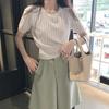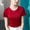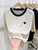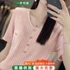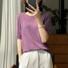 2023 Primavera y Verano Nuevo Camiseta de Manga Corta de Seda de Hielo para Mujer Delgada Hueca Suelta Cuello Redondo Color Sólido Top Tejido a Crochet