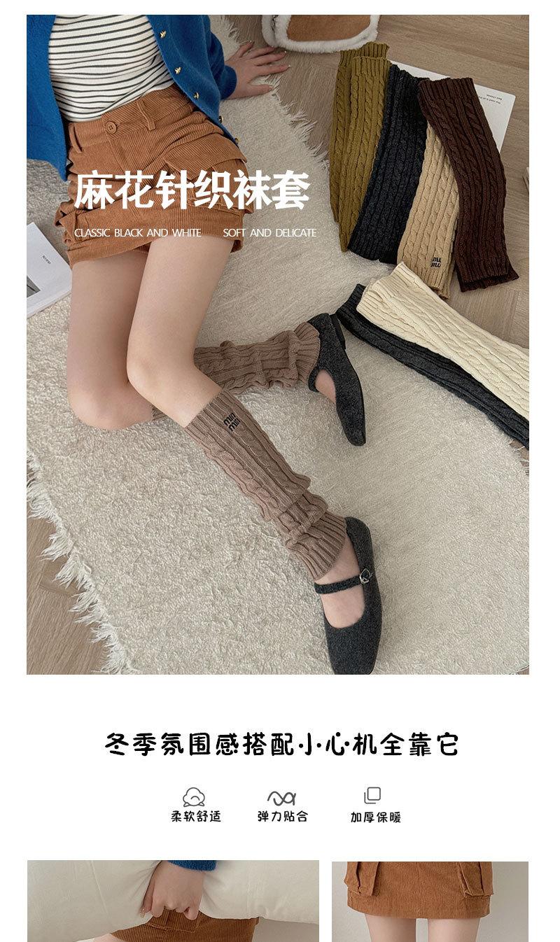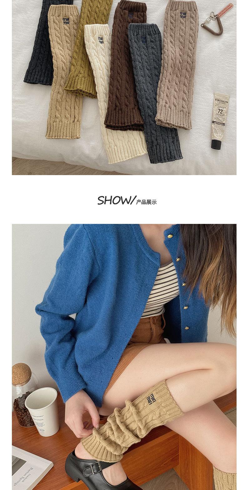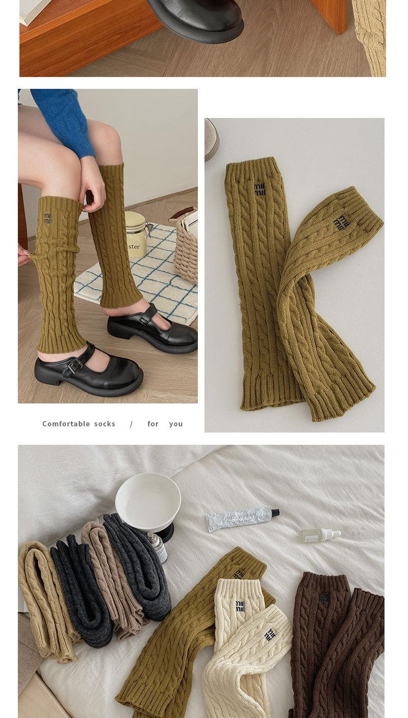 Otoño e Invierno Nuevos Calcetines de Punto de Color Puro para Mujer Bordados Versátiles Calcetines de Felpa Cubrepiernas Trenzados de Lana Calcetines de Pantorrilla Calcetines de Media Caña