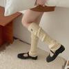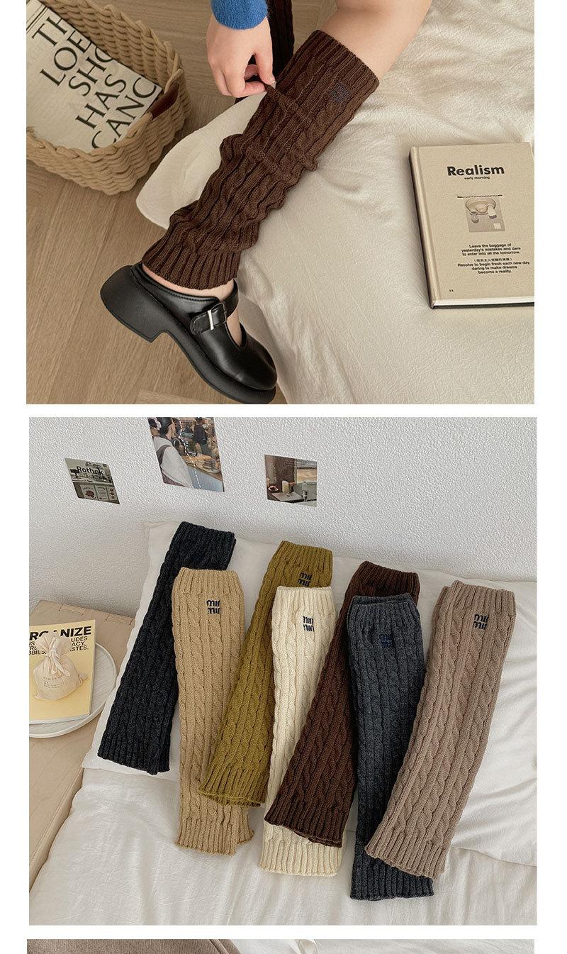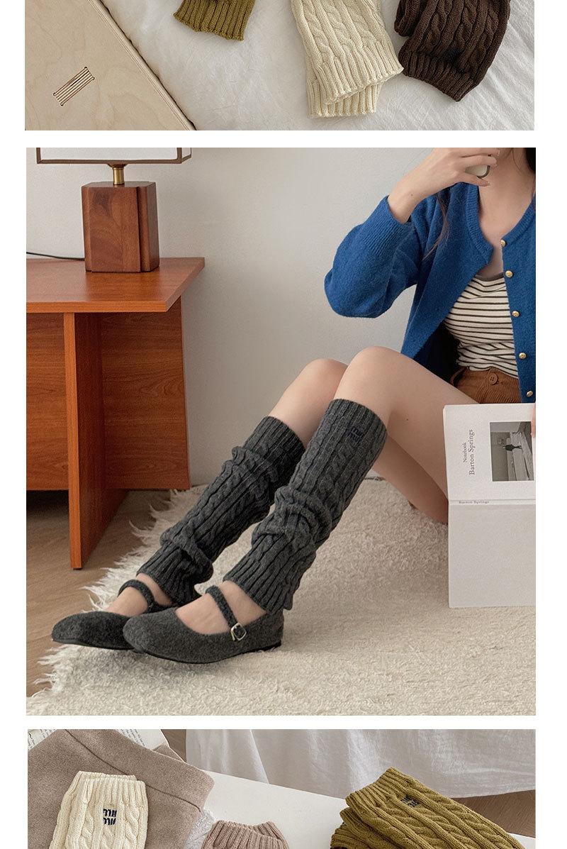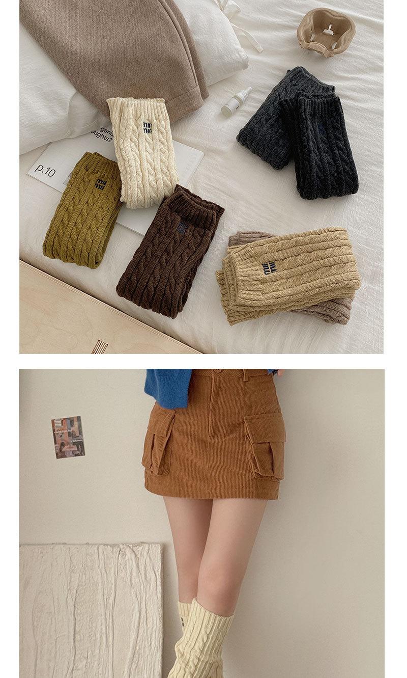 Otoño e Invierno Nuevos Calcetines de Punto de Color Puro para Mujer Bordados Versátiles Calcetines de Felpa Cubrepiernas Trenzados de Lana Calcetines de Pantorrilla Calcetines de Media Caña