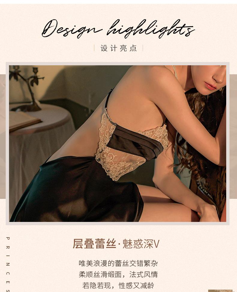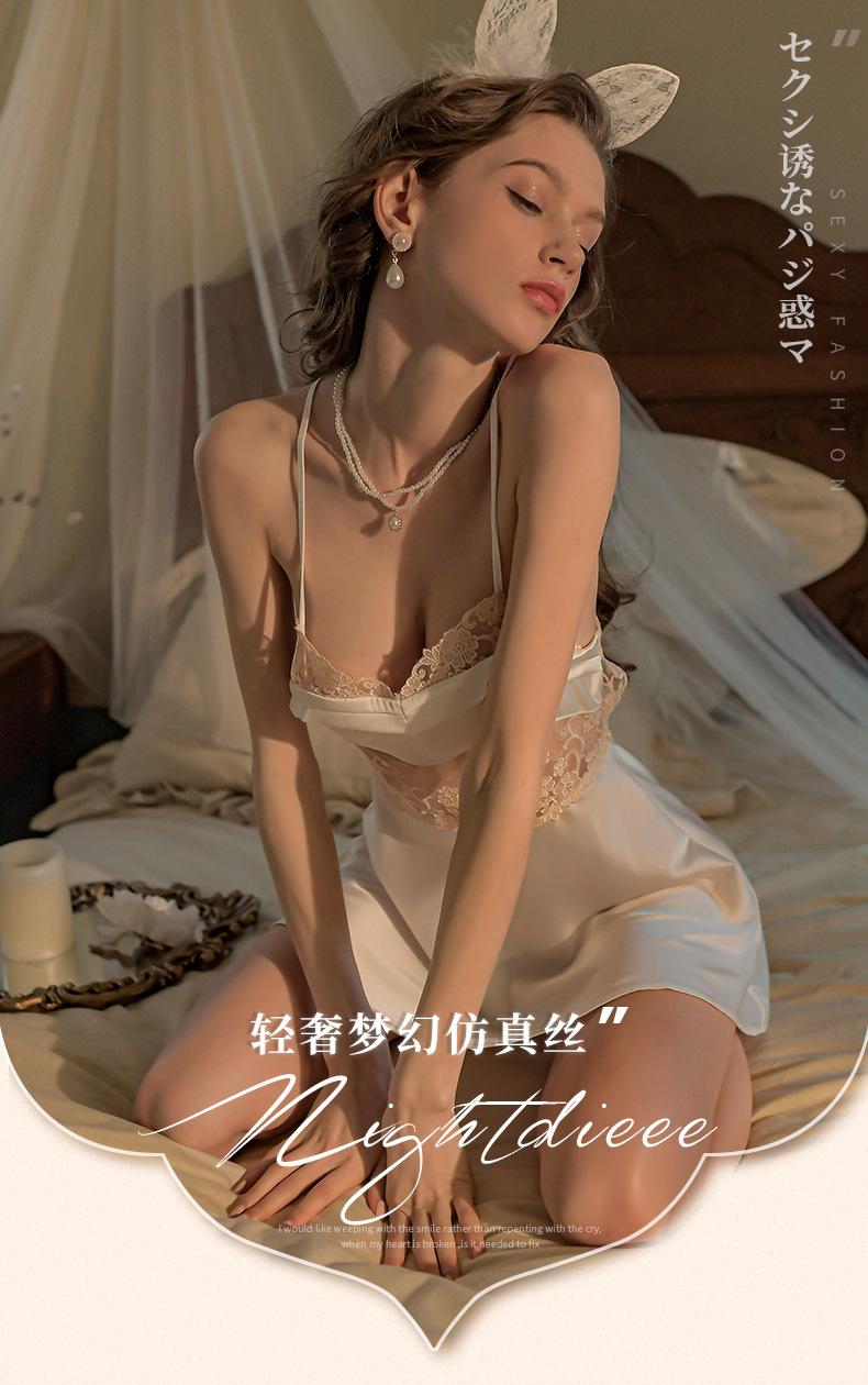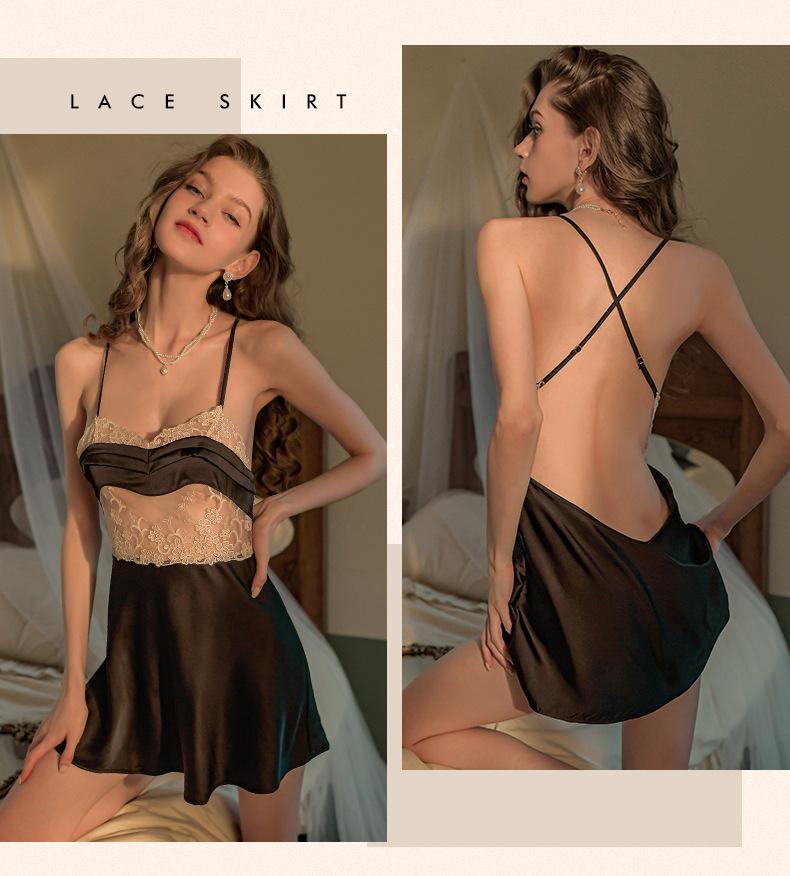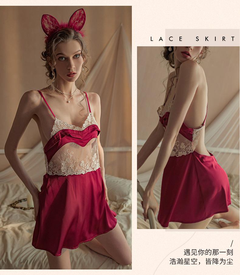 Falda Sexy de Encaje con Tirantes Talla Grande Pijama Tentación Espalda Descubierta Camisón para Casa Escote Profundo V Pecho Expuesto Falda Corta Cabello de Primera Generación 1583