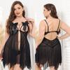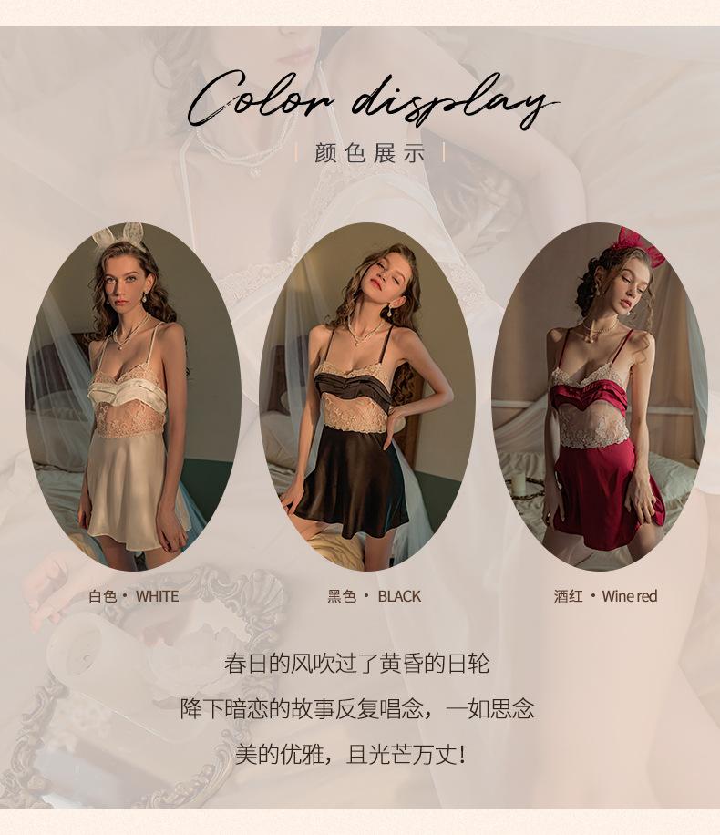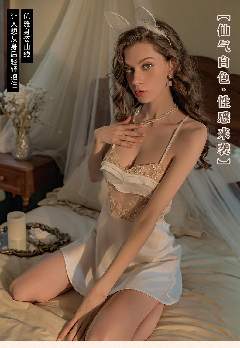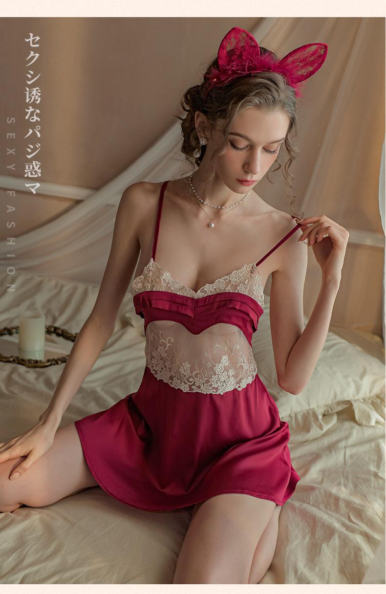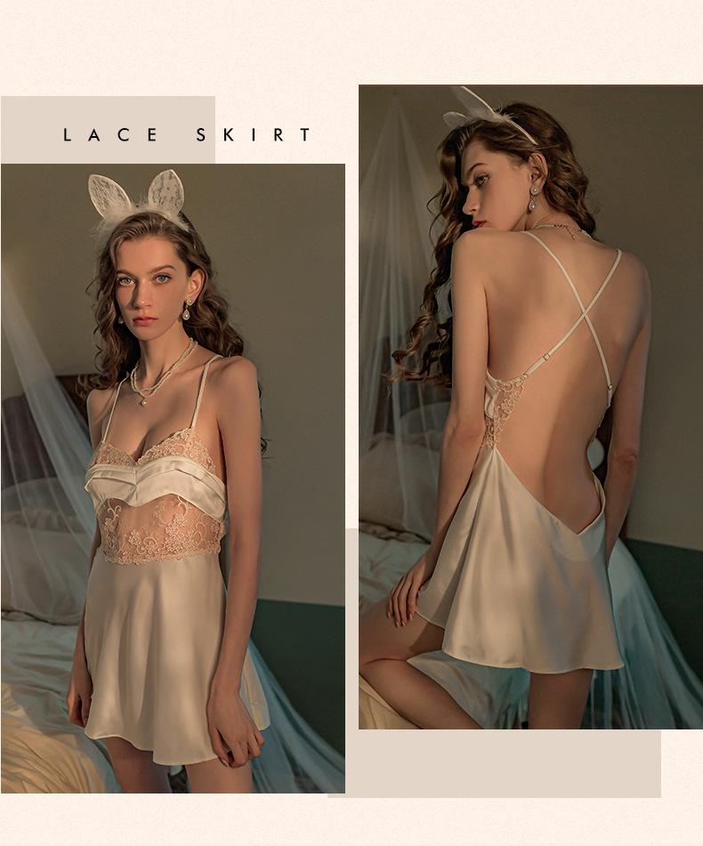 Falda Sexy de Encaje con Tirantes Talla Grande Pijama Tentación Espalda Descubierta Camisón para Casa Escote Profundo V Pecho Expuesto Falda Corta Cabello de Primera Generación 1583