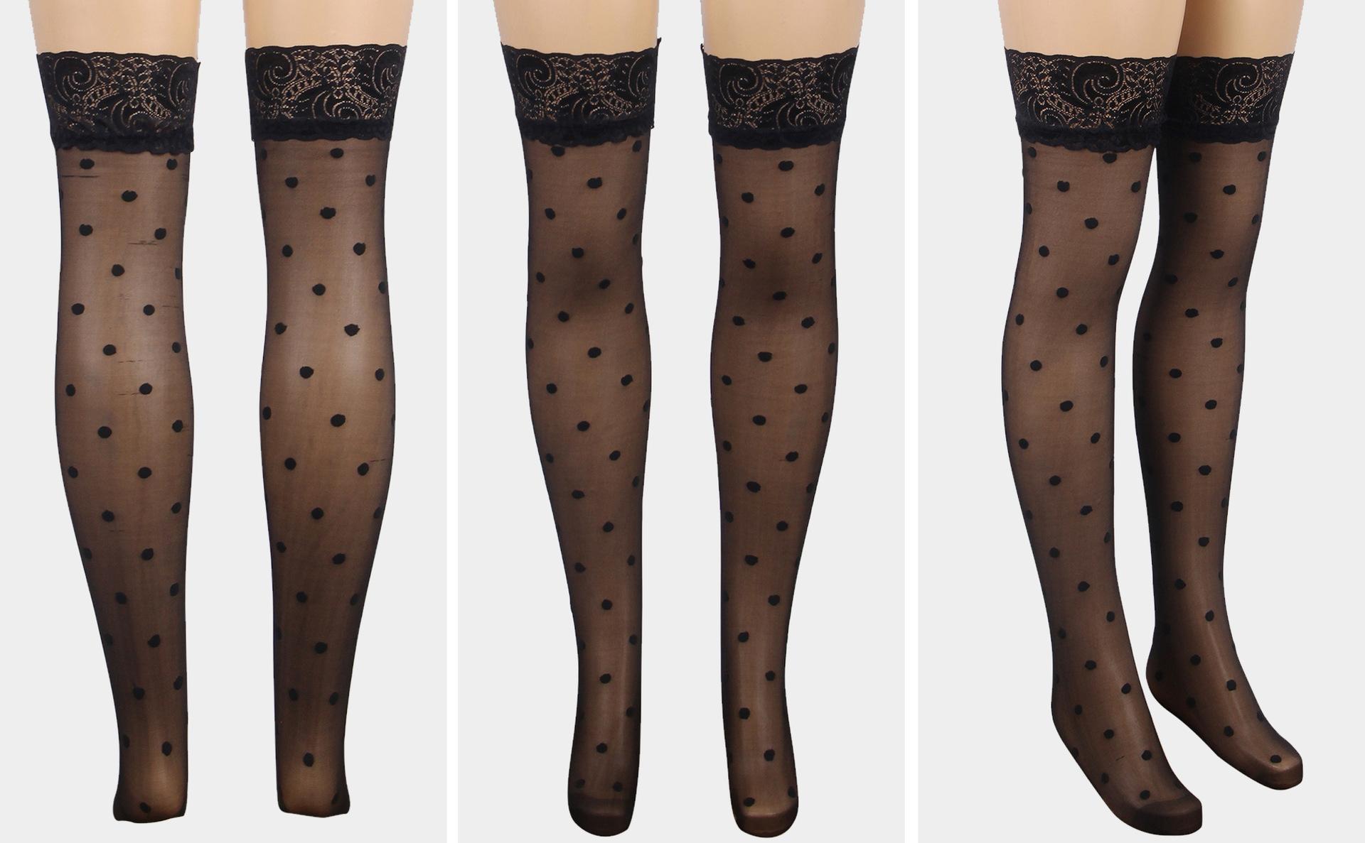 【El producto incluye】:Medias Altas Hasta el Muslo Sexy de Lunares para Mujer