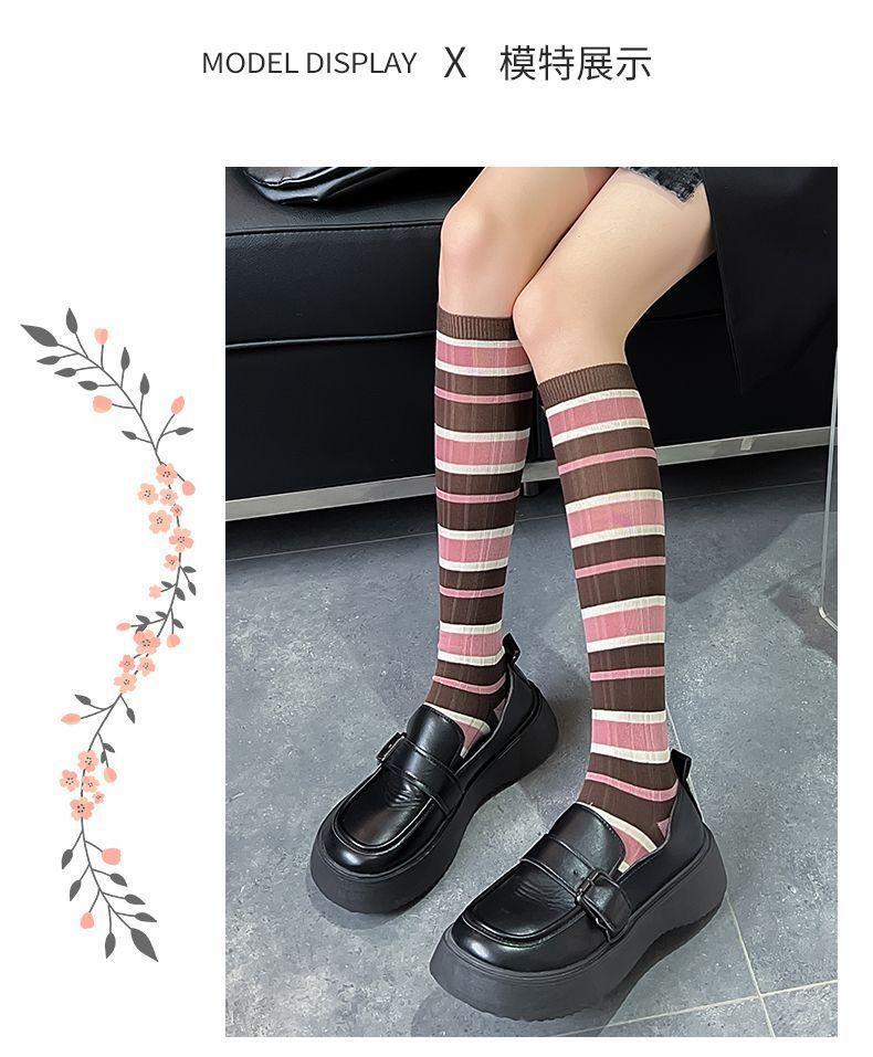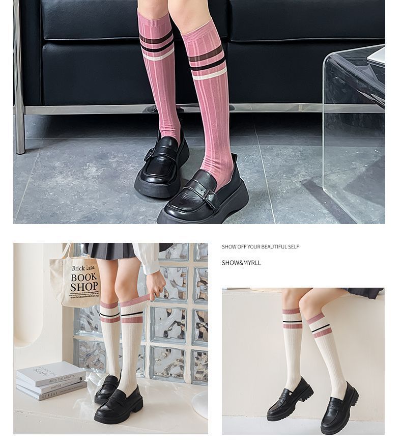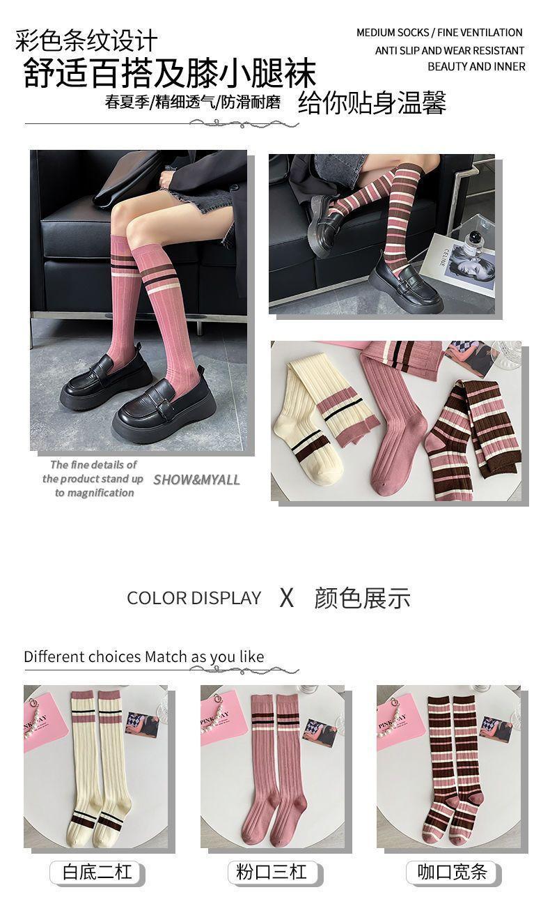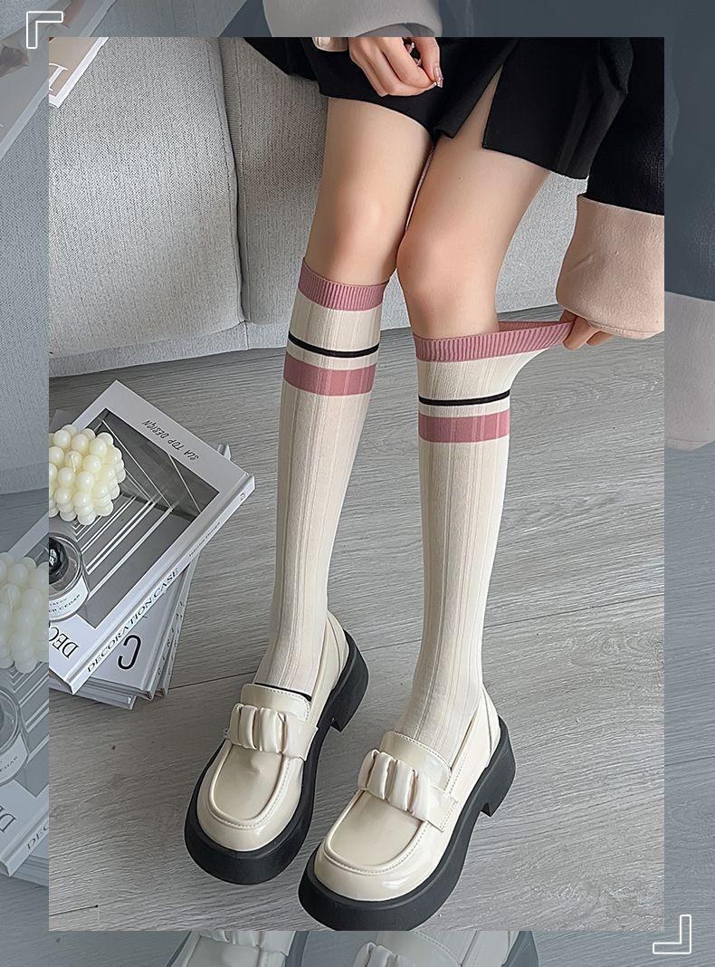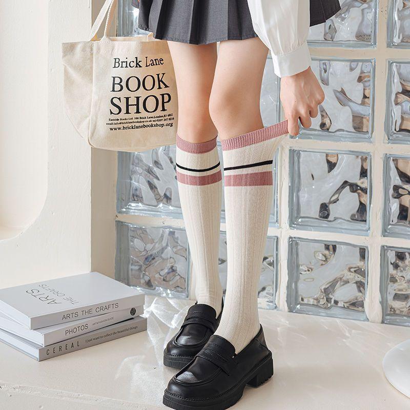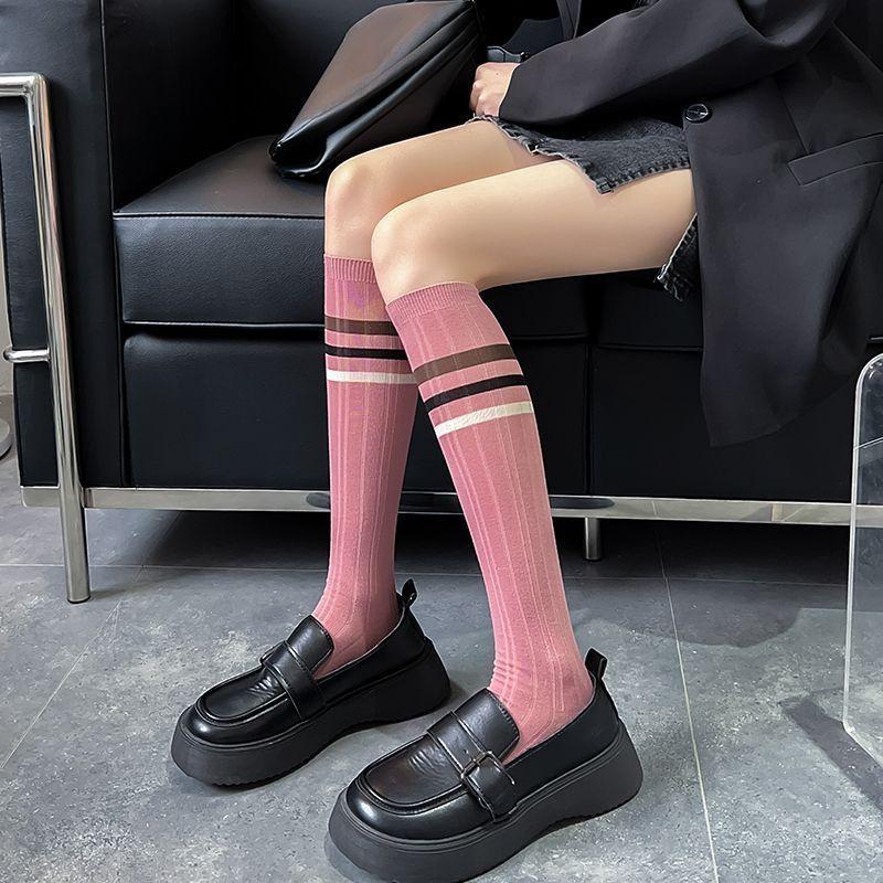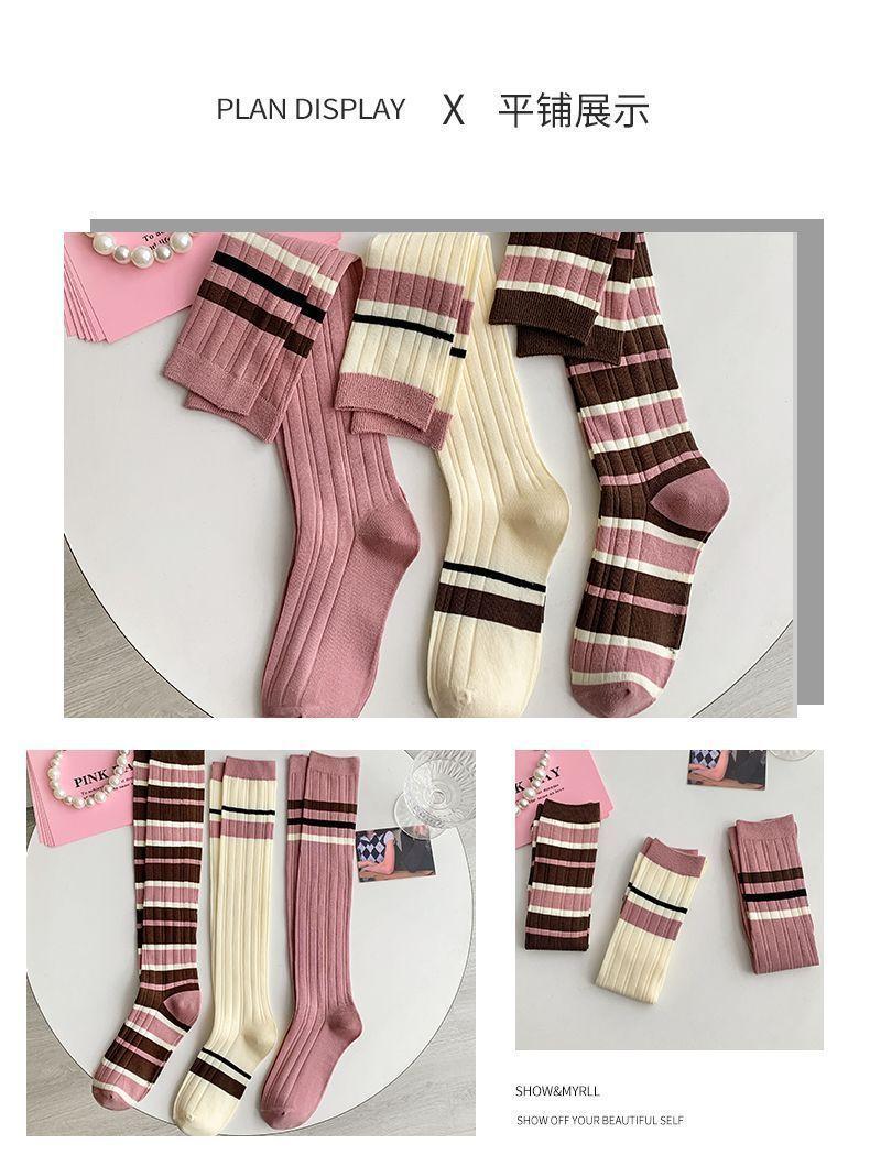 Calcetines de rayas rosas de celebridad de internet para mujer hasta la rodilla ins modernos de primavera y otoño estilo japonés estudiante jk dulces calcetines de pantorrilla