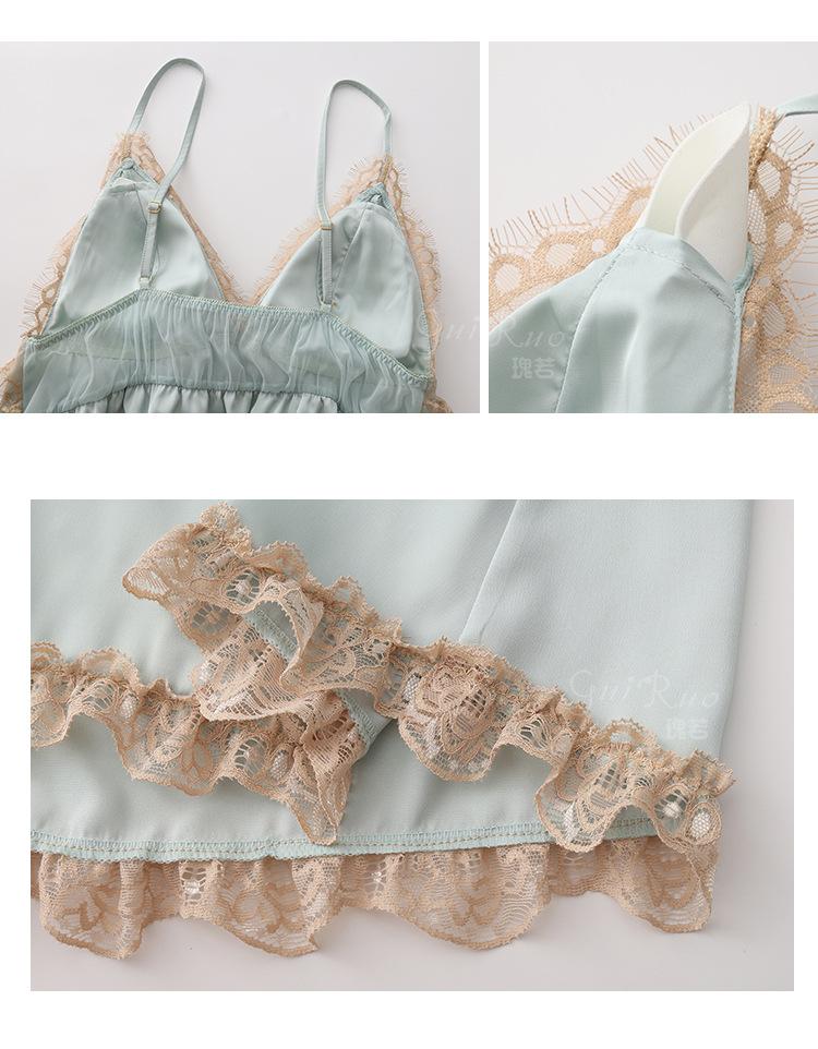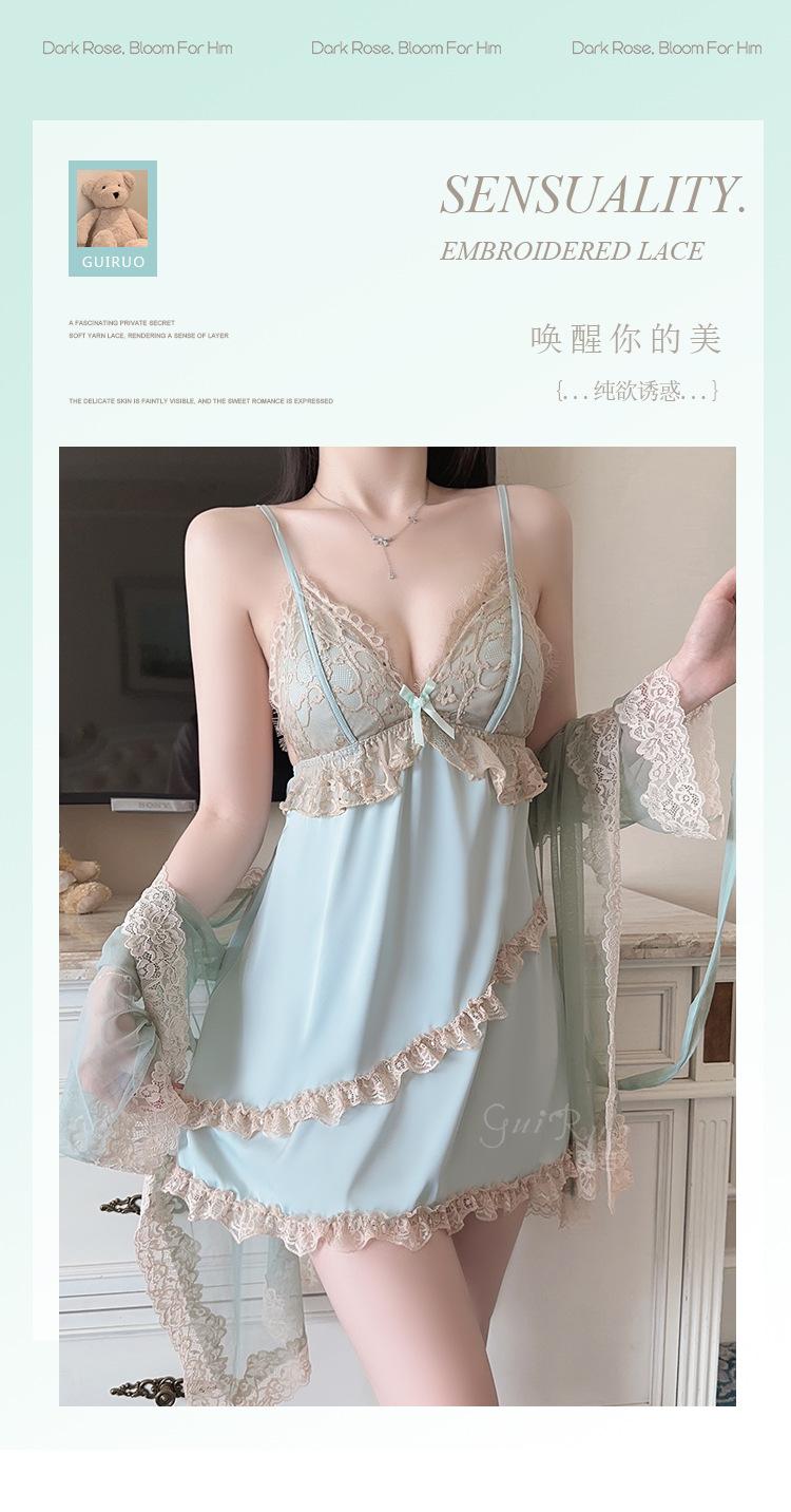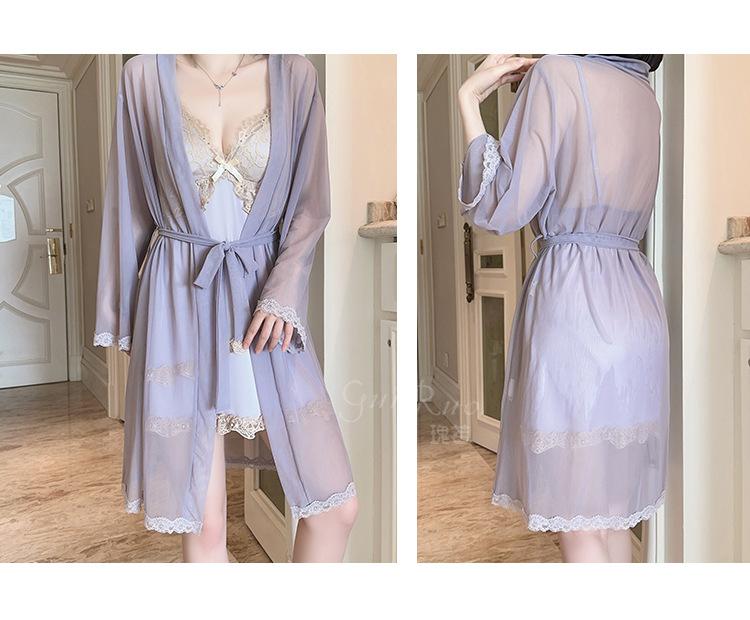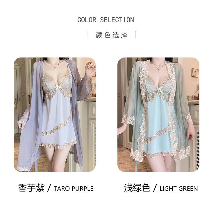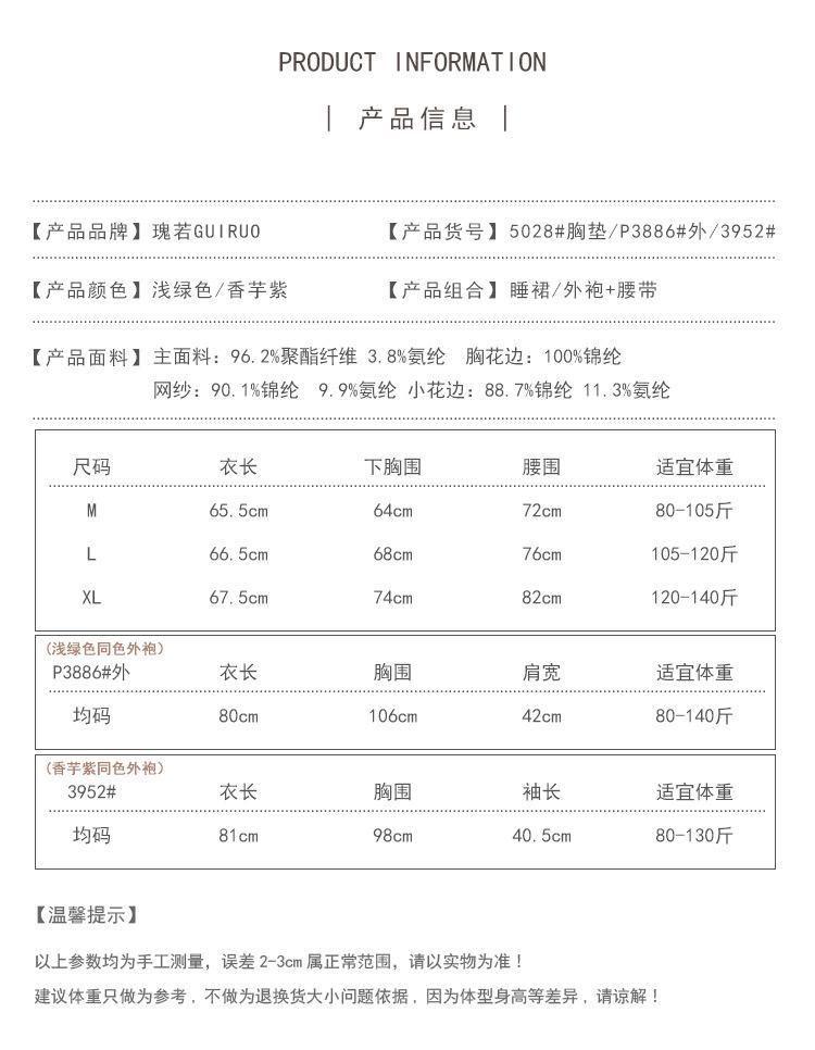 5028 taro purple (nightgown), 3952 taro purple (robe + belt), 5028 light green (nightgown), P3886 green (robe + belt)