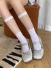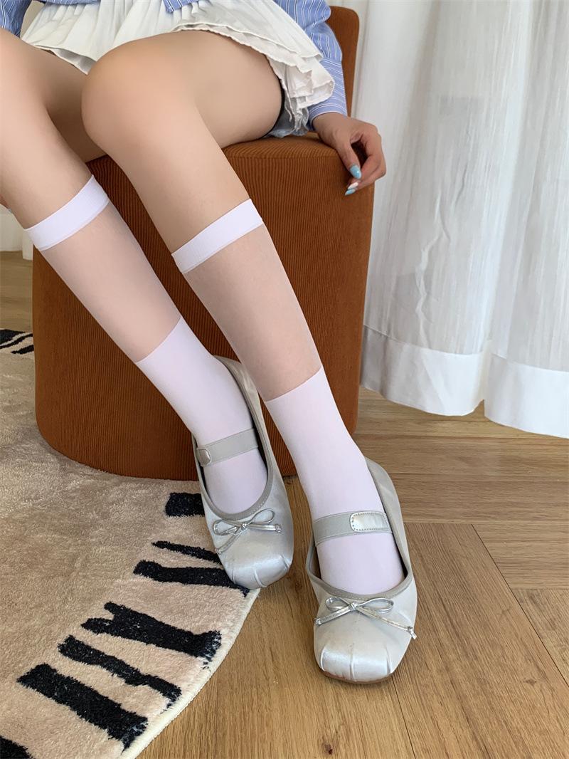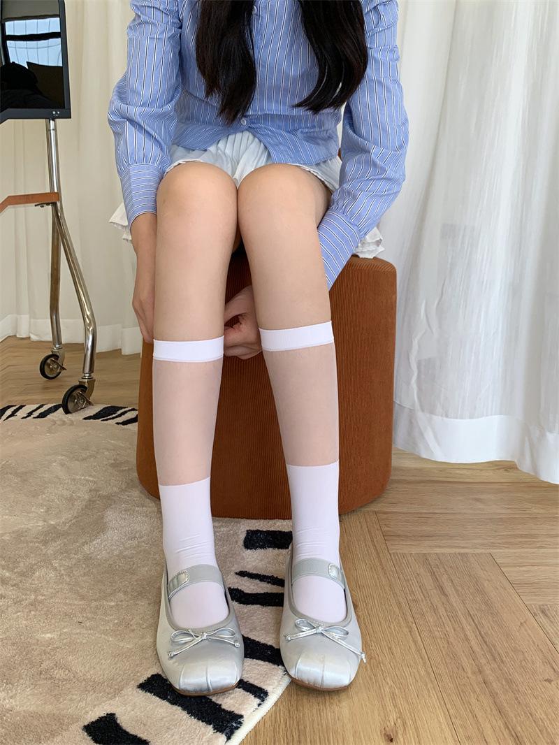 Calcetines de Malla Fina para Mujer, Medias Finas de Verano, Calcetines de Rizo de Color Puro, Calcetines Transpirables hasta la Pantorrilla, Blanco Estilo Preppy de Corte Medio