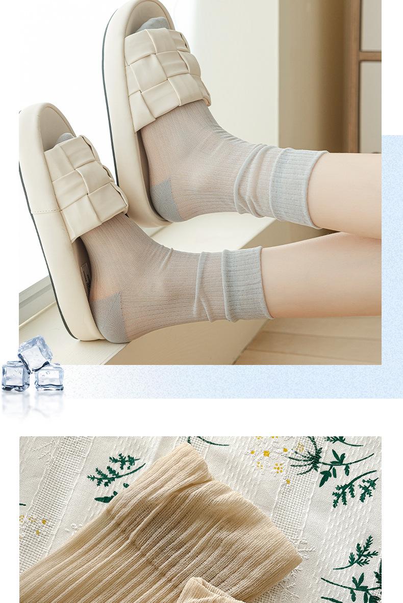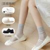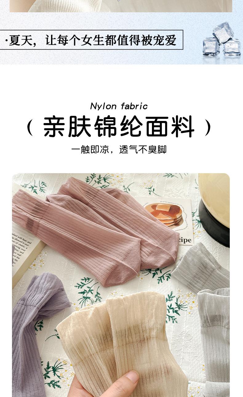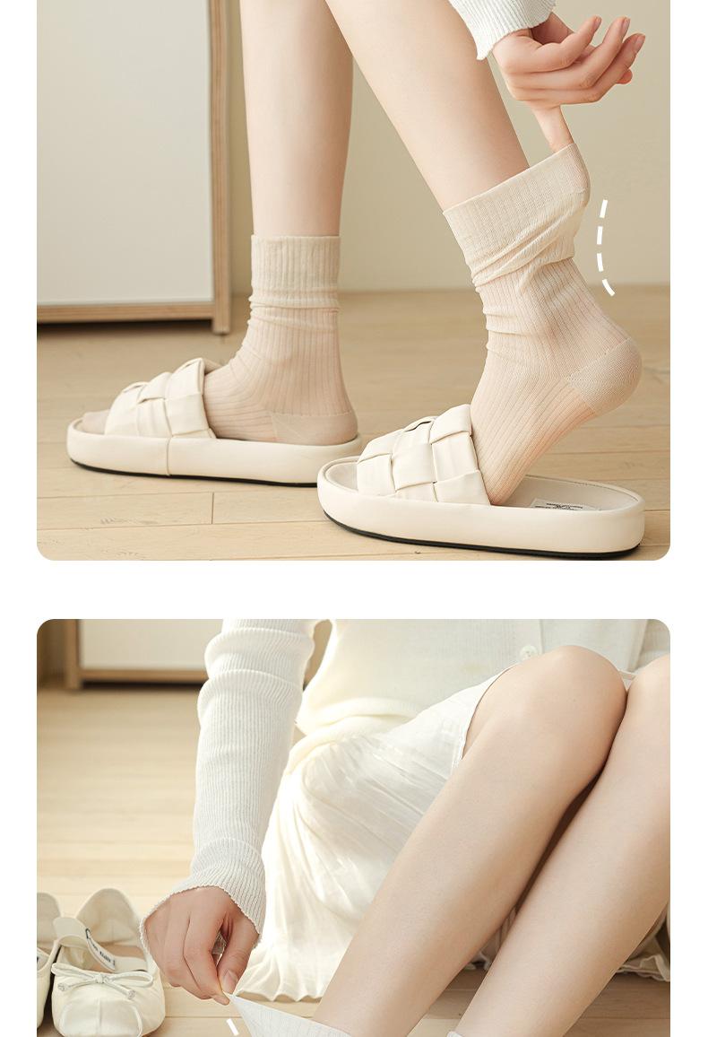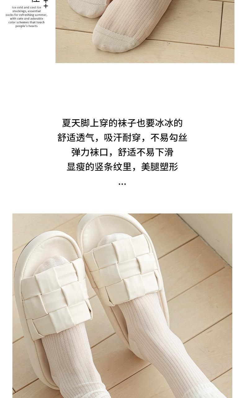 Calcetines de Verano Finos sin Costuras hasta Media Pantorrilla para Mujer, Estilo Coreano de Malla Rayada Transpirable Algodón Absorbente del Sudor Ultradelgados Calcetines Apilados al Por Mayor