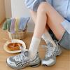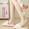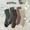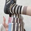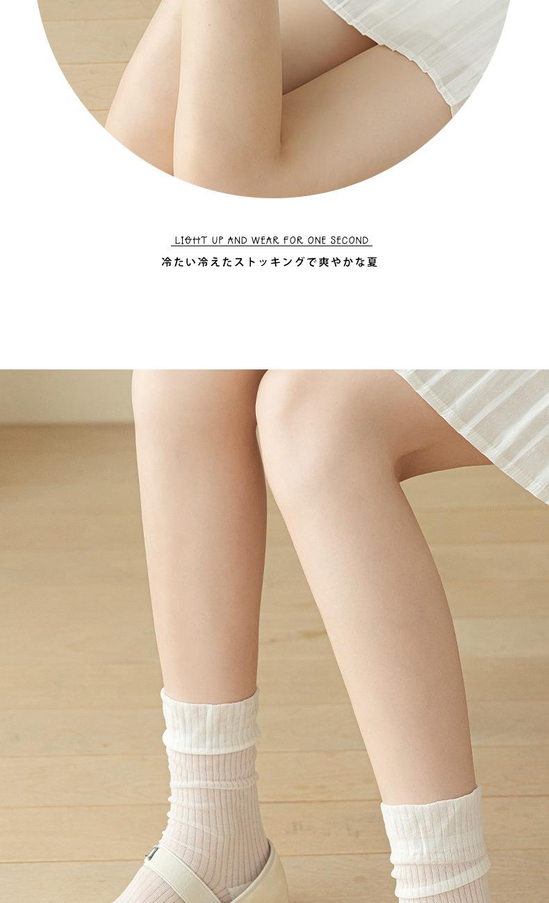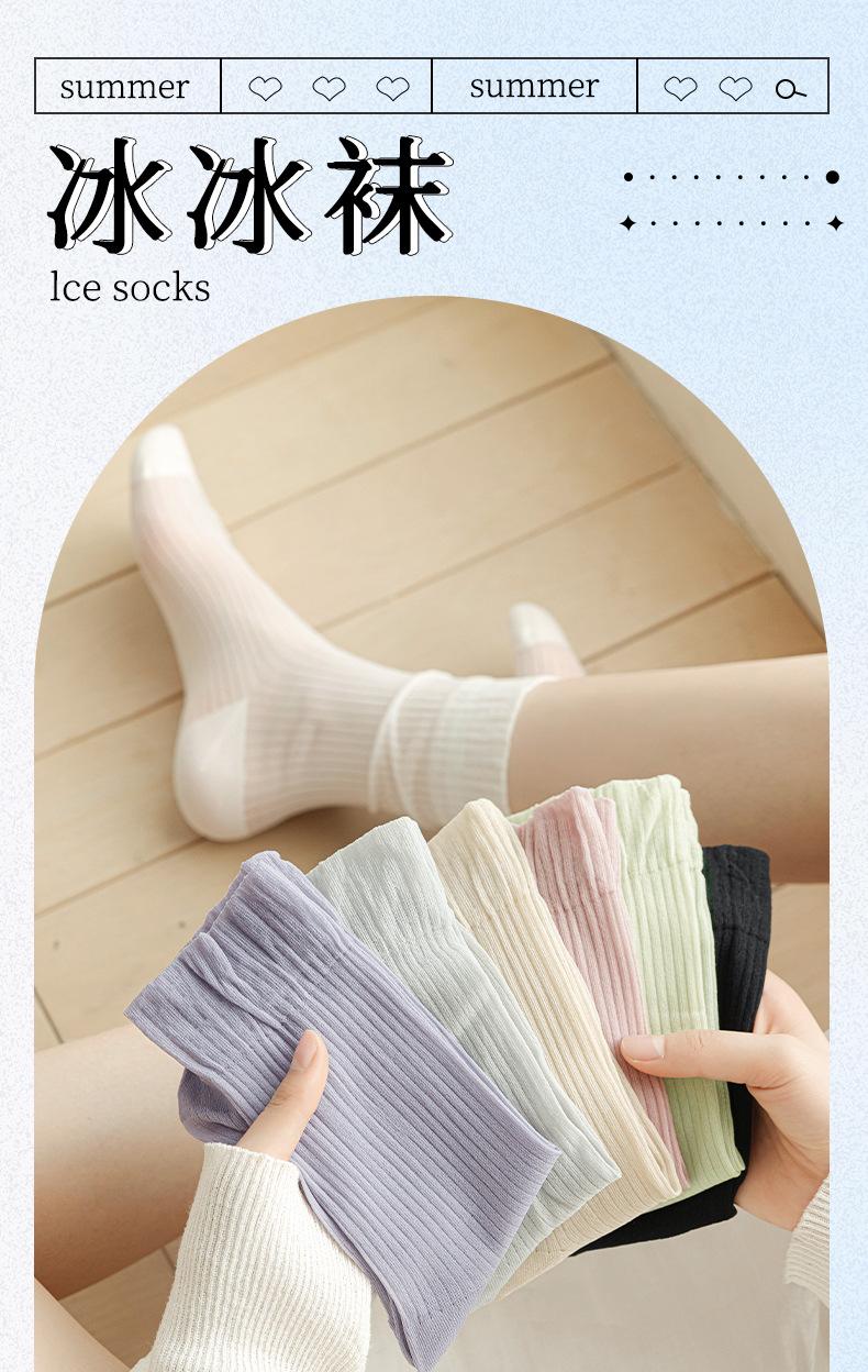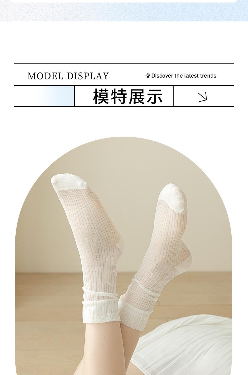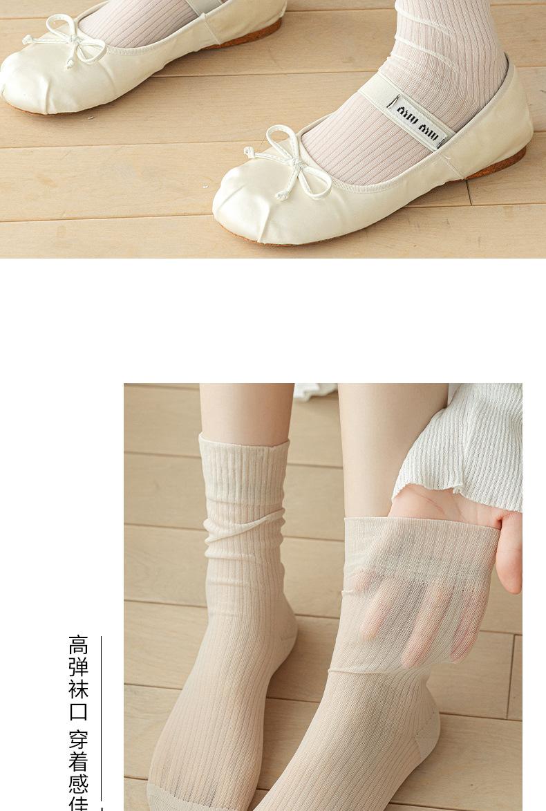 Calcetines de Verano Finos sin Costuras hasta Media Pantorrilla para Mujer, Estilo Coreano de Malla Rayada Transpirable Algodón Absorbente del Sudor Ultradelgados Calcetines Apilados al Por Mayor