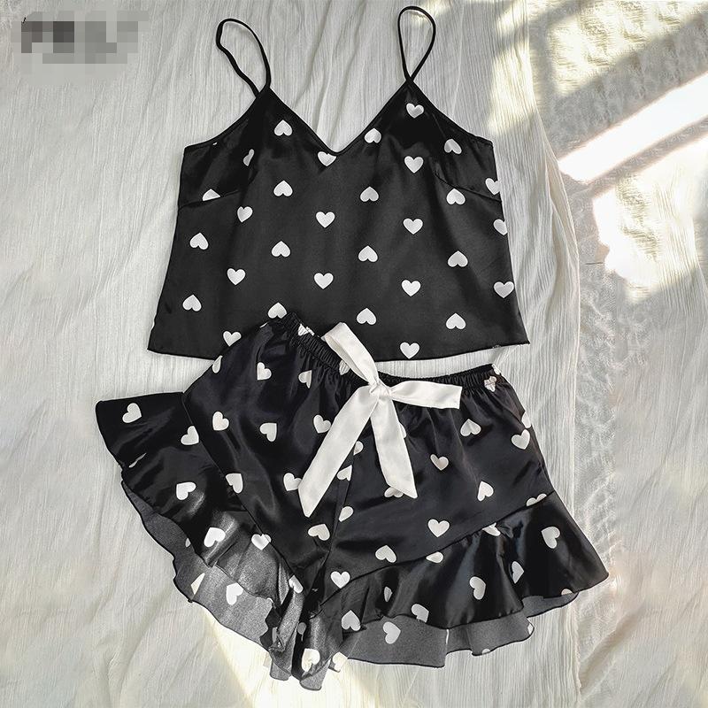 Nuevo Traje de Pijama Sexy de Moda Amor Verano Seda Tirantes Pijama Casual Cómodo Ropa para el Hogar Venta al por Mayor