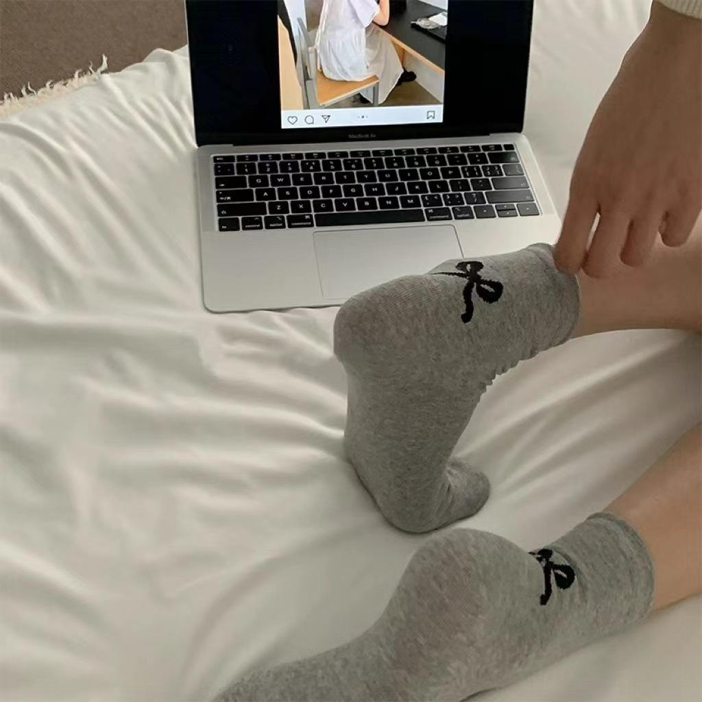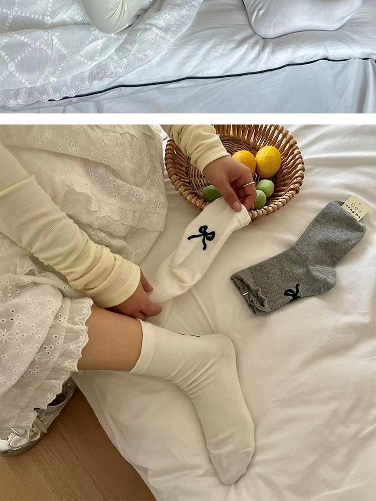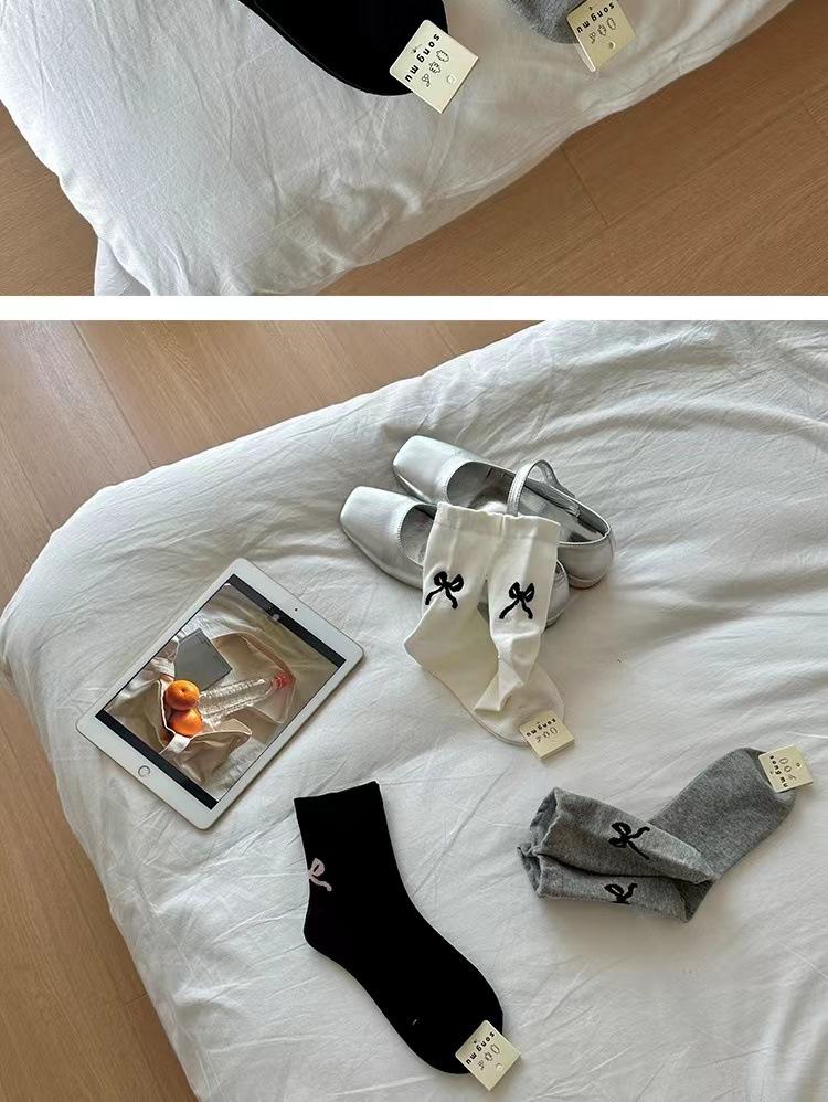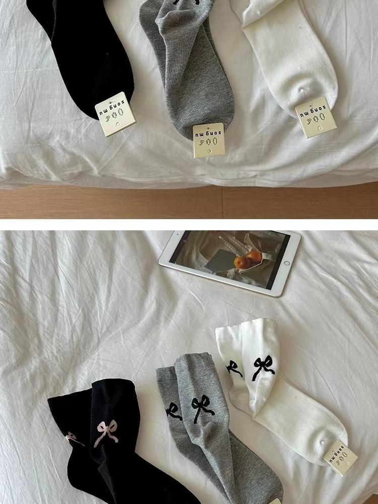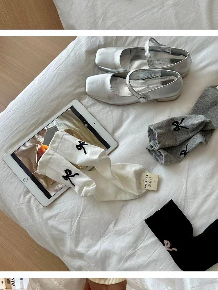 Calcetines Calcetines de Algodón para Mujer Lazo en el Talón Estilo Coreano Combinan con Todo Estilo Academia Primavera y Verano Delgados Calcetines de Algodón de Media Caña Apilados para Niña