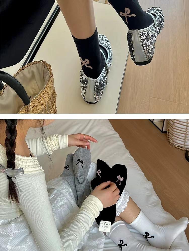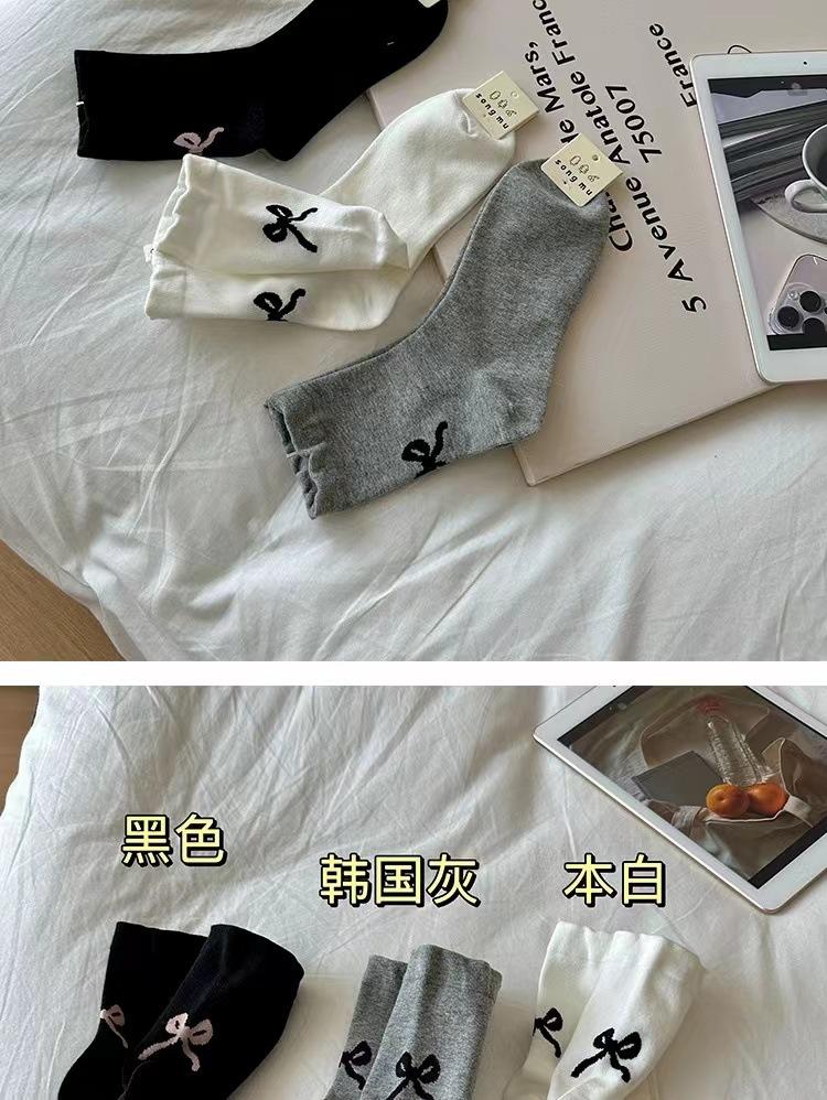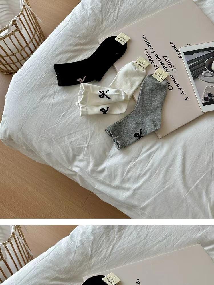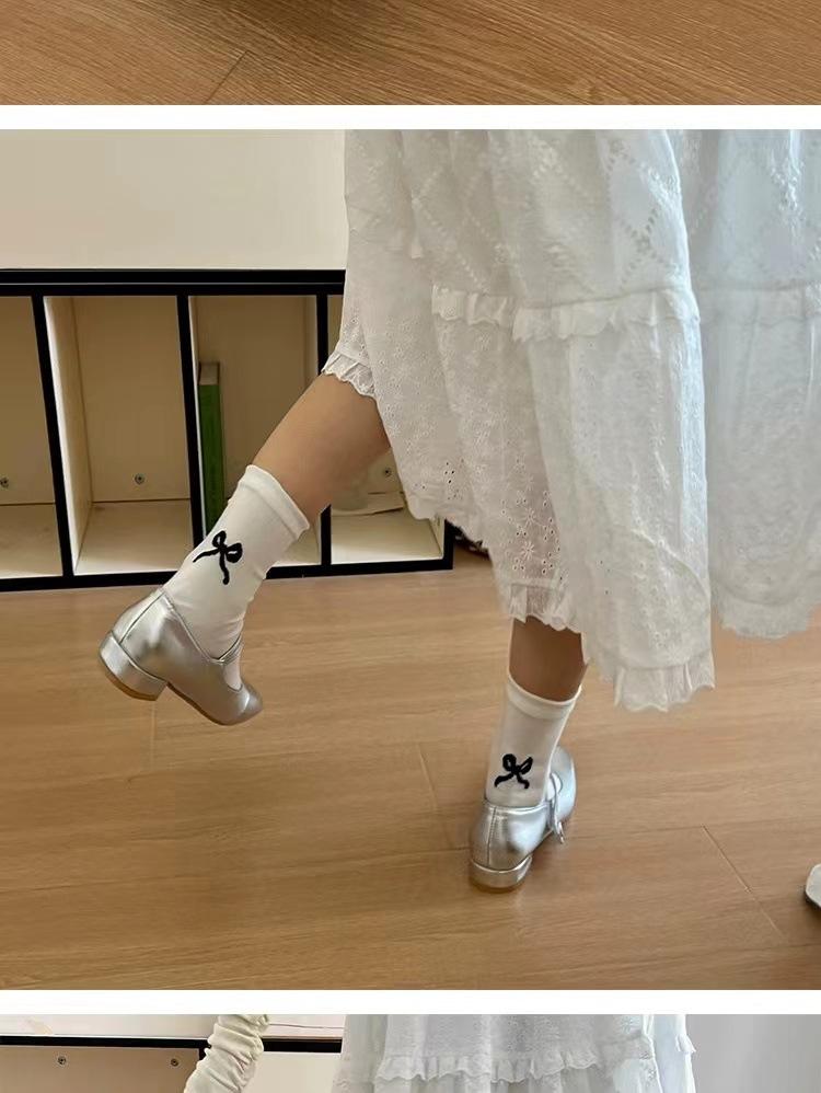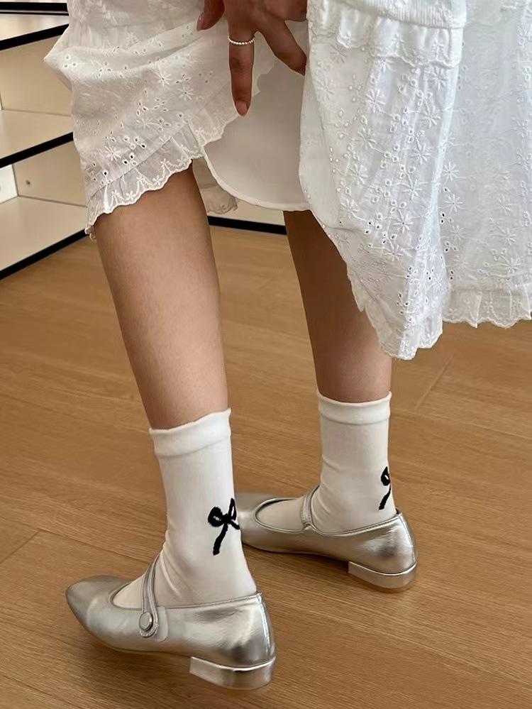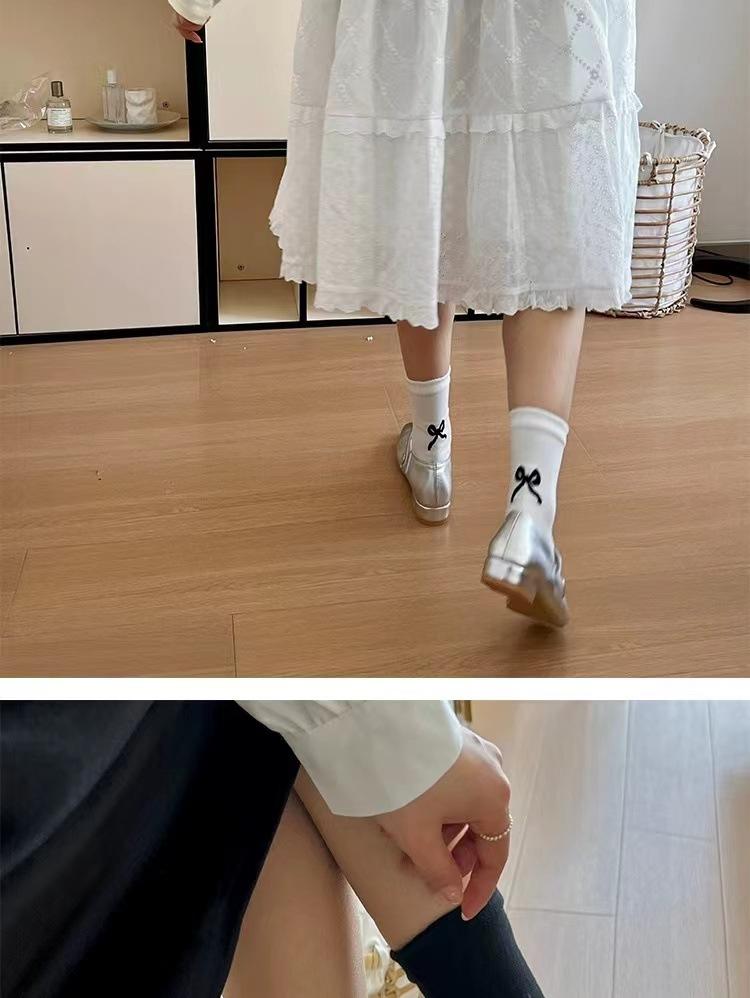 Calcetines Calcetines de Algodón para Mujer Lazo en el Talón Estilo Coreano Combinan con Todo Estilo Academia Primavera y Verano Delgados Calcetines de Algodón de Media Caña Apilados para Niña