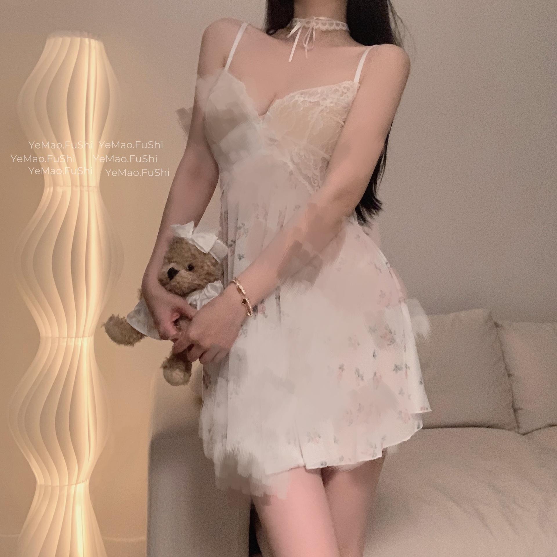 Lencería Sexy, Deseo Puro Sexy, Liguero de Encaje Estampado de Malla, Camisón Transparente, Apasionado Conjunto de Pijama para el Hogar Libre