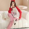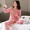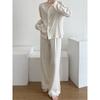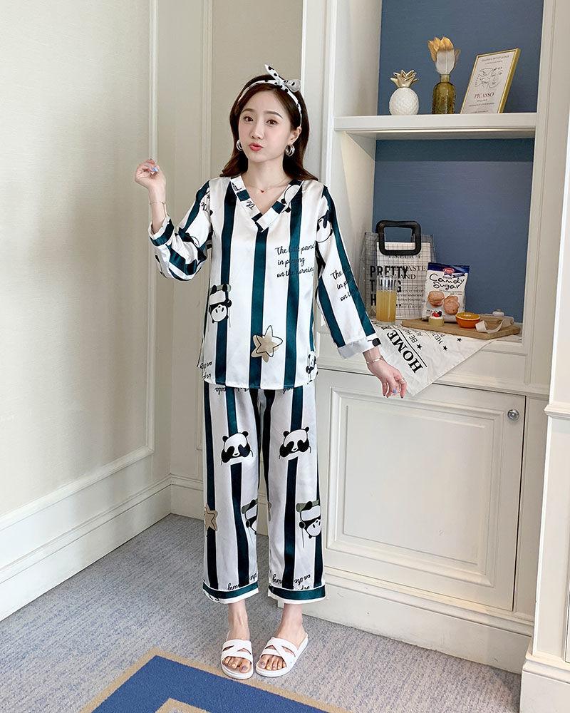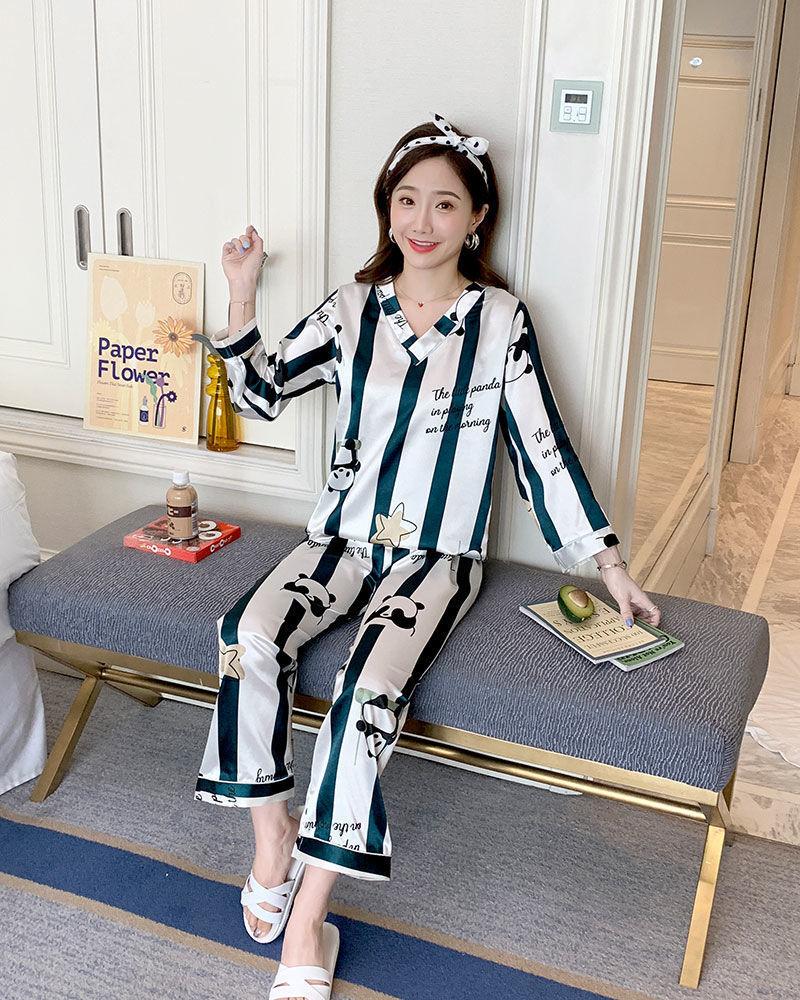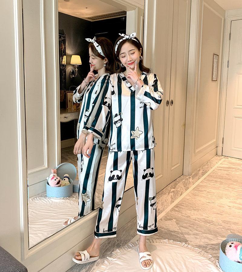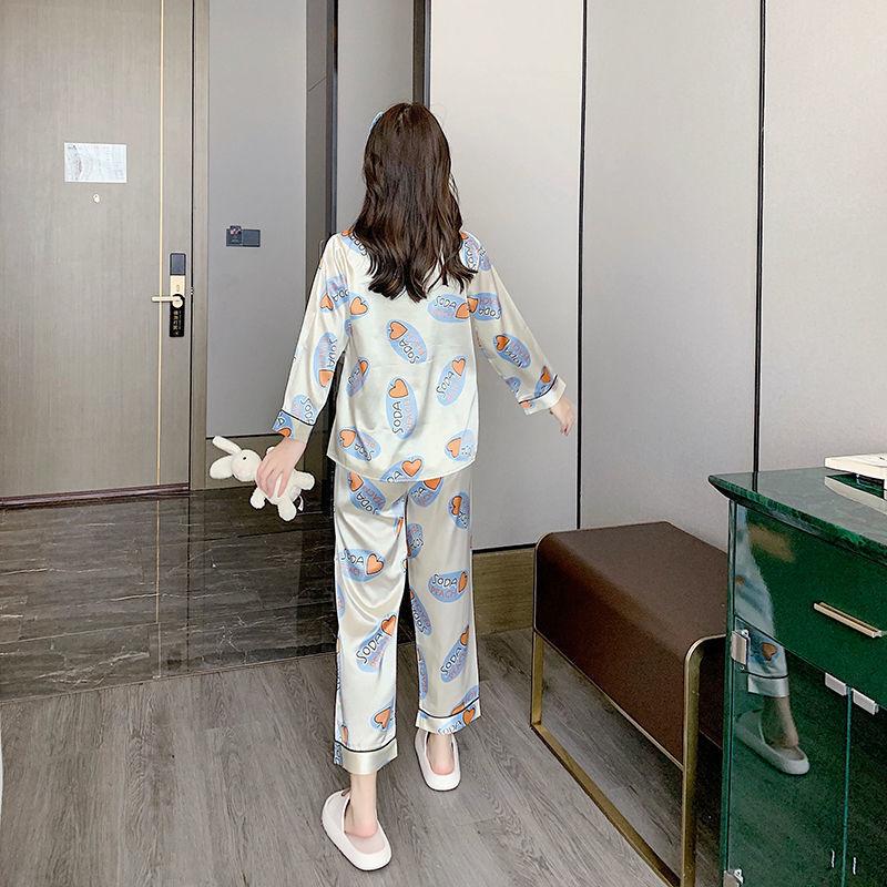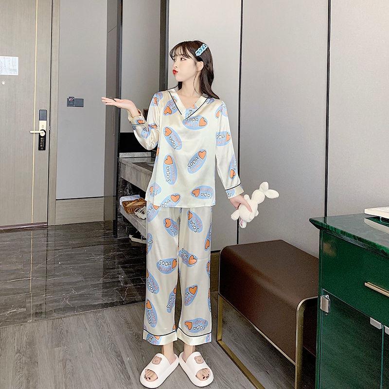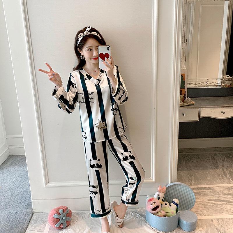 Pijama de Seda de Hielo para Mujer en Primavera y Otoño Pantalones Finos de Manga Larga Dulce Talla Extra Se Puede Usar Afuera Ropa para el Hogar de Estudiante Set de Dos Piezas