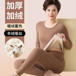 Conjunto de Ropa Interior Otoño de Cachemira de Terciopelo para Mamá para Mujer Capa Base Abuela Ropa Interior Térmica Cálida Suéter de Lana de Algodón Invierno
