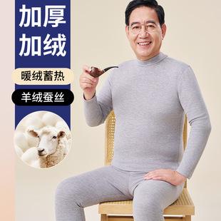 Personas de mediana edad y ancianas Terciopelo alemán Calentamiento Lana Seda Ropa interior térmica para mujer Conjunto madre más terciopelo más grueso Ropa de otoño para hombre Pantalones de otoño