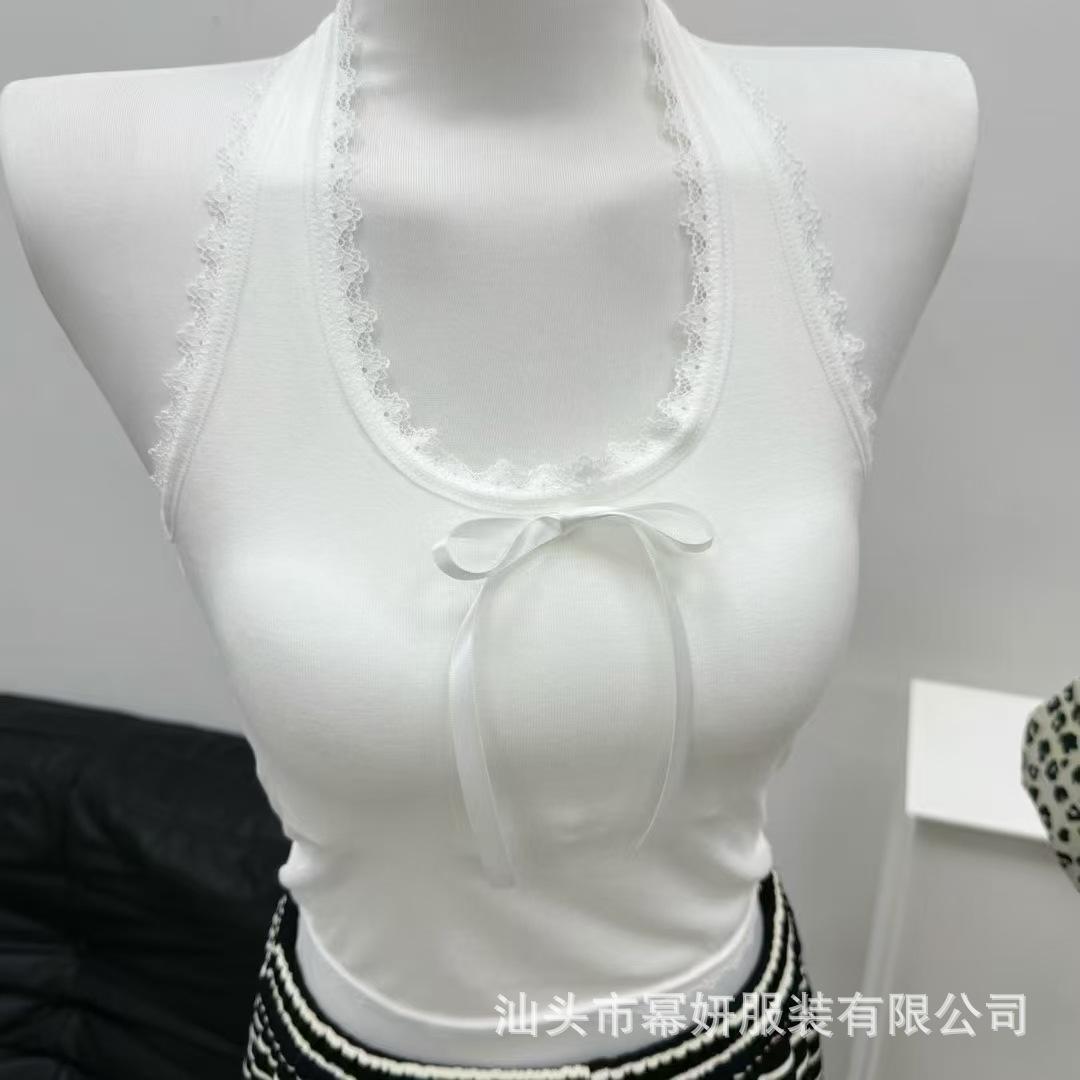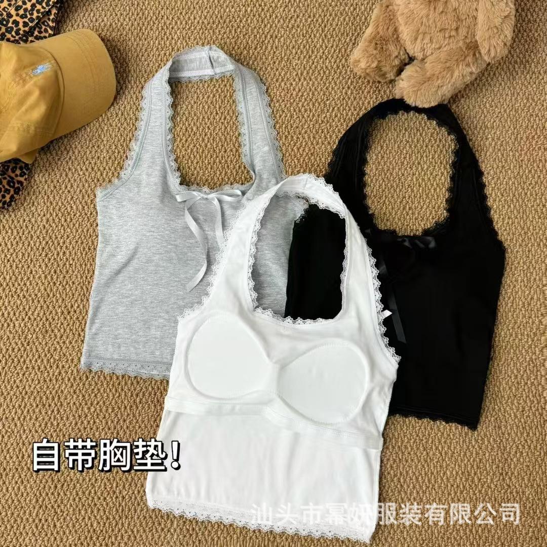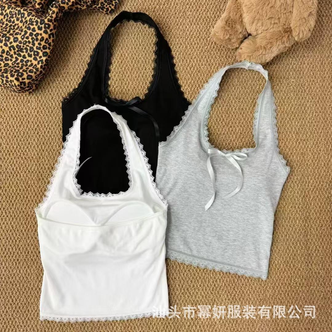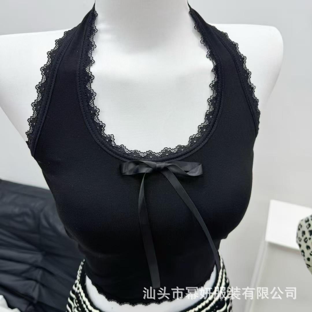 1130 Ropa Interior Sexy Camisola Slim Halterneck Sexy Encaje Lazo Top Sin Mangas con Almohadillas para el Busto