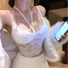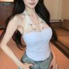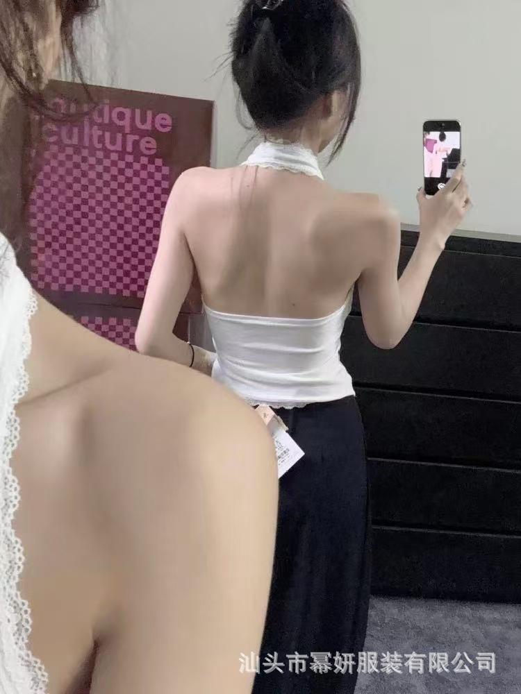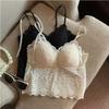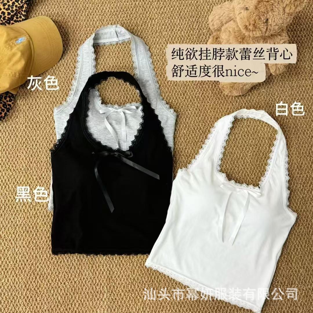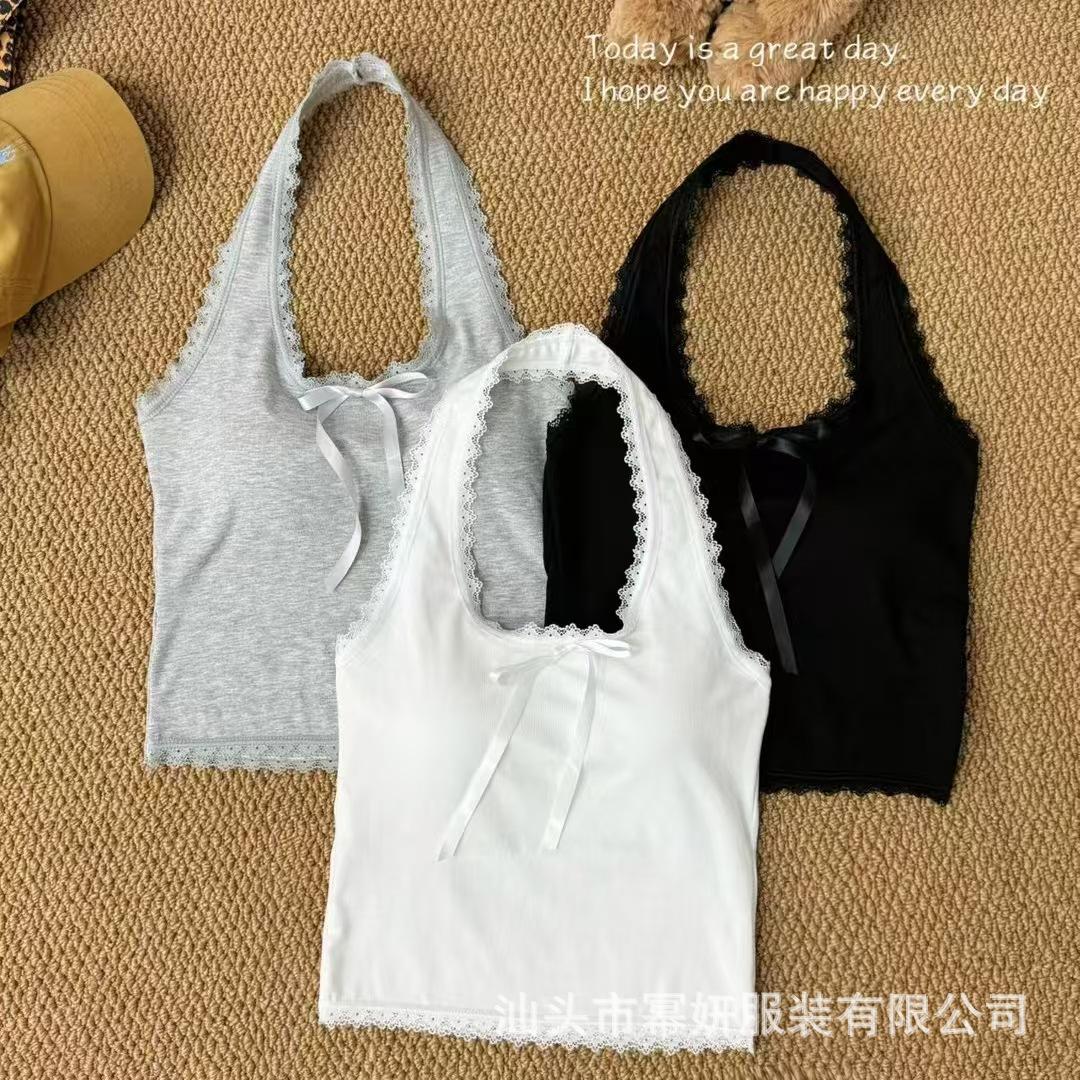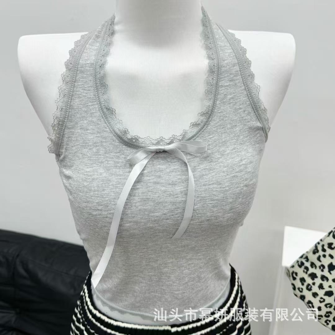 1130 Ropa Interior Sexy Camisola Slim Halterneck Sexy Encaje Lazo Top Sin Mangas con Almohadillas para el Busto