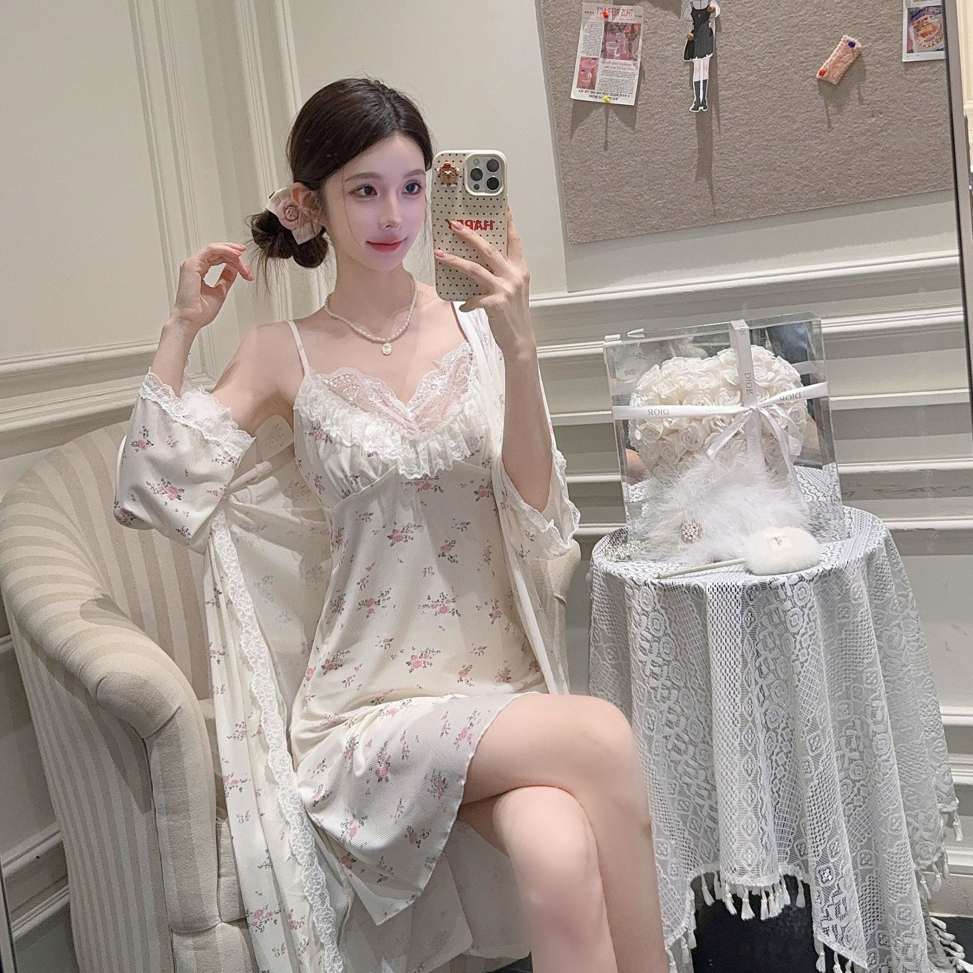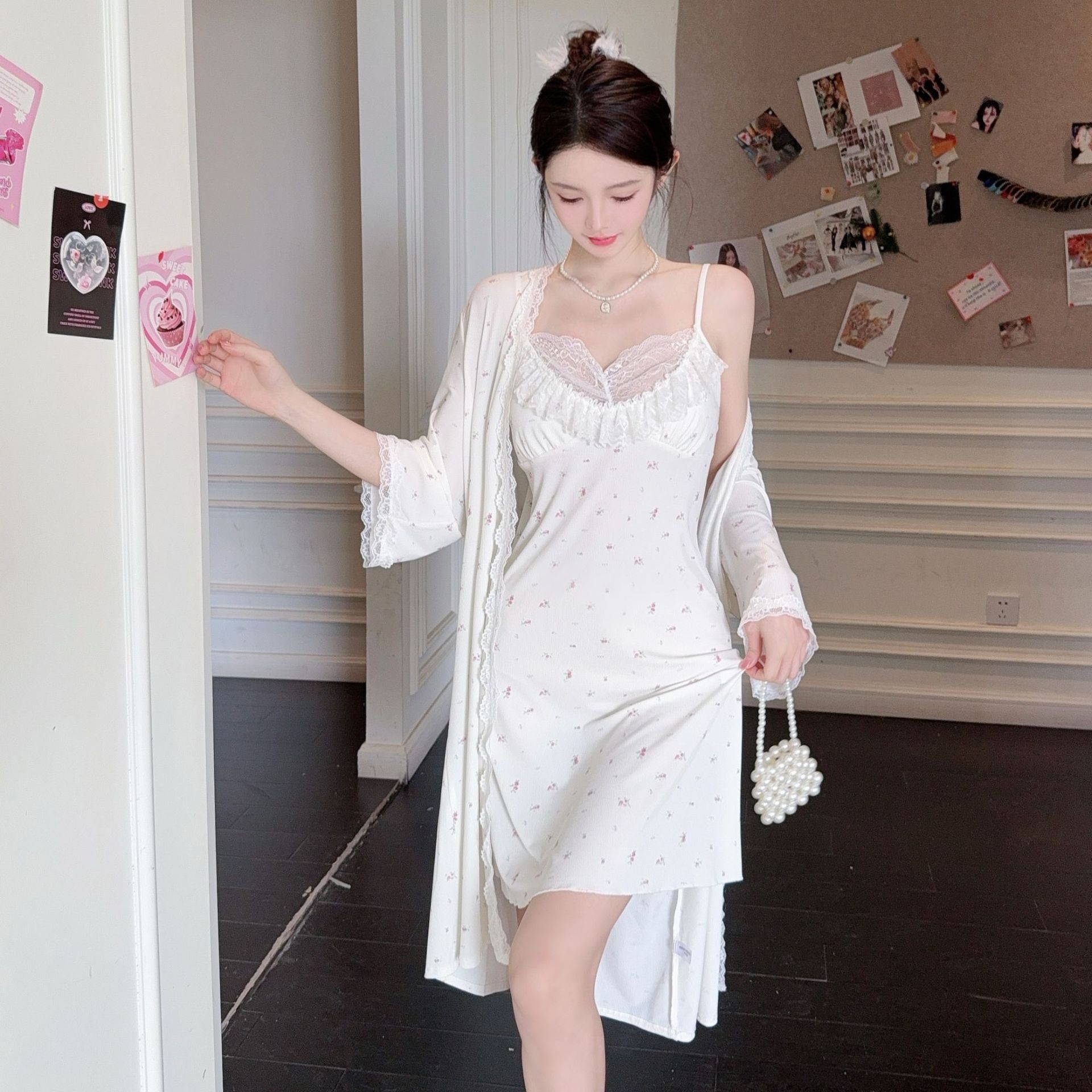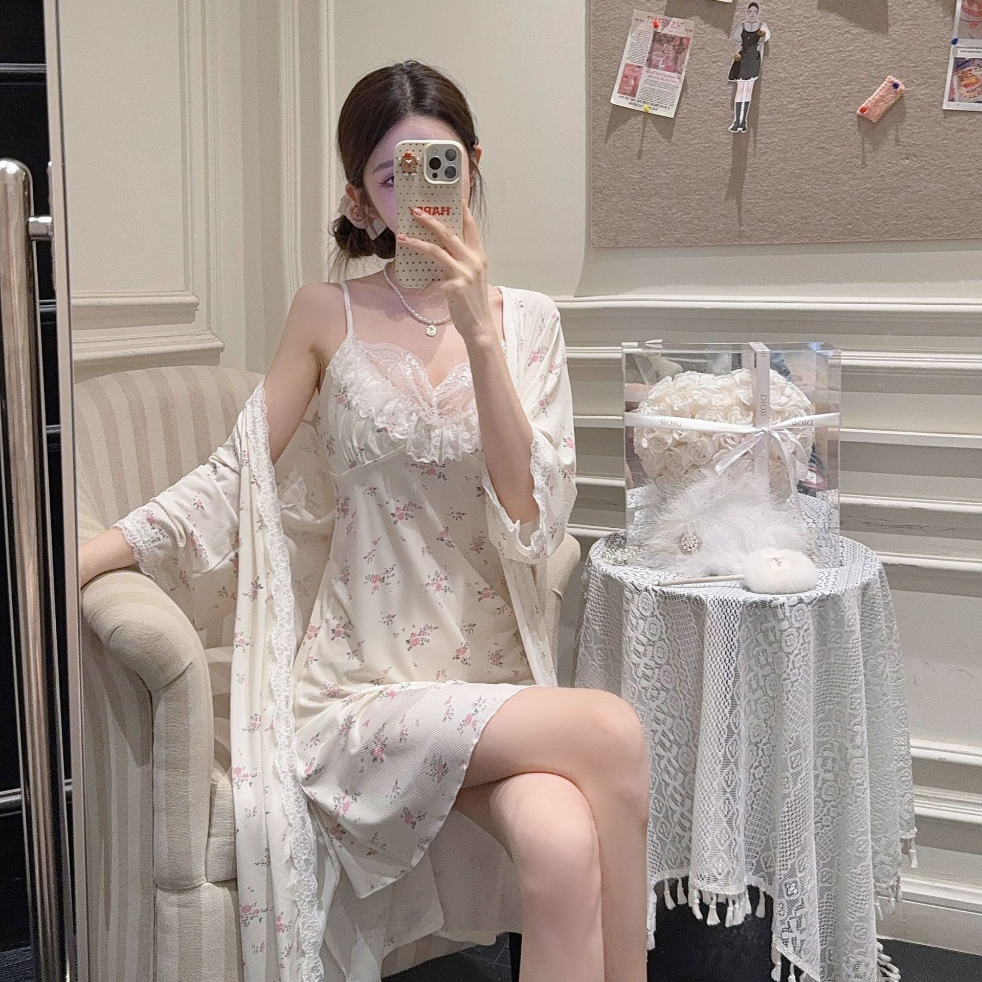 2025 Camisón de Nuevo Estilo para Mujer Verano Sexy Camisón Seda de Hielo Camisón de Alta Gama con Almohadilla para el Pecho Estilo Deseo Puro Ropa para el Hogar