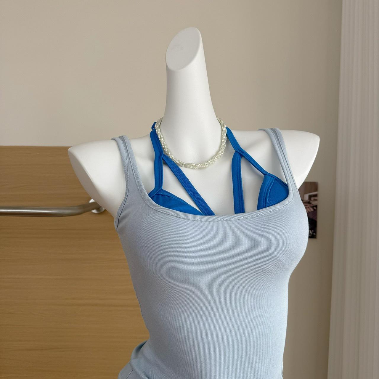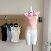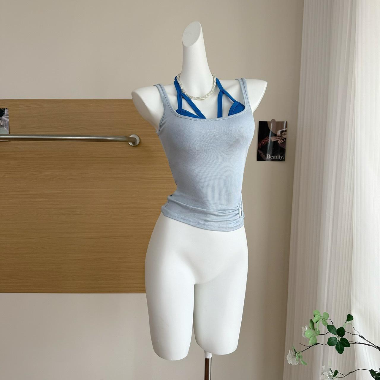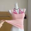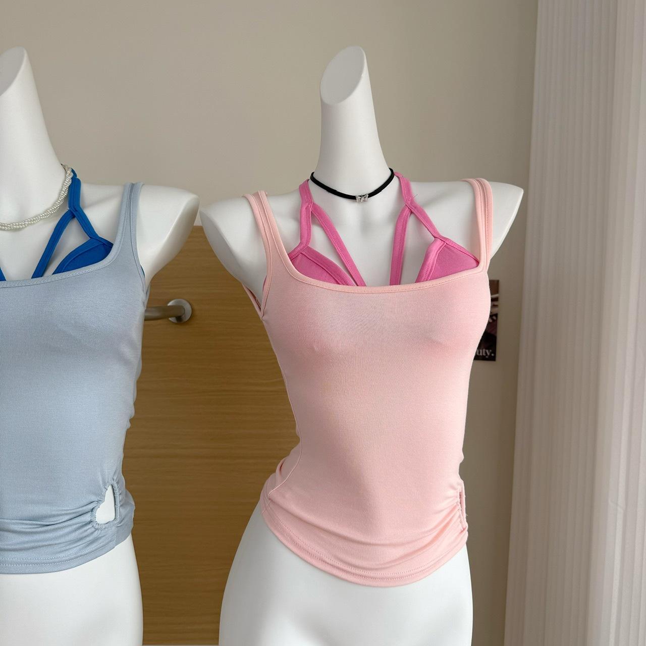 Camisola Corta Rosa de Chica Caliente Diseño de Verano Hueco Delgado para Exterior de Mujer con Top de Sujetador en Capas
