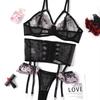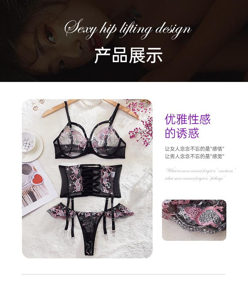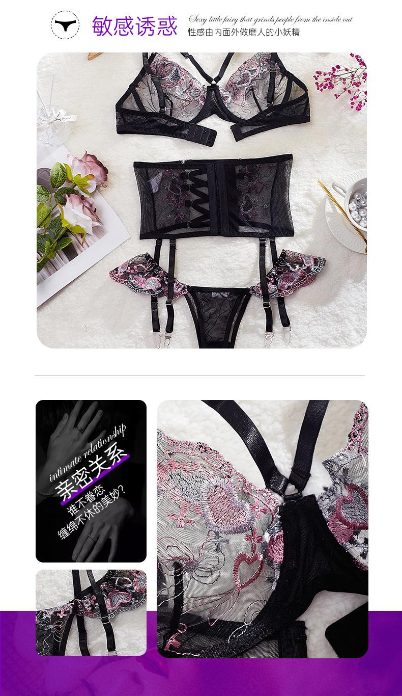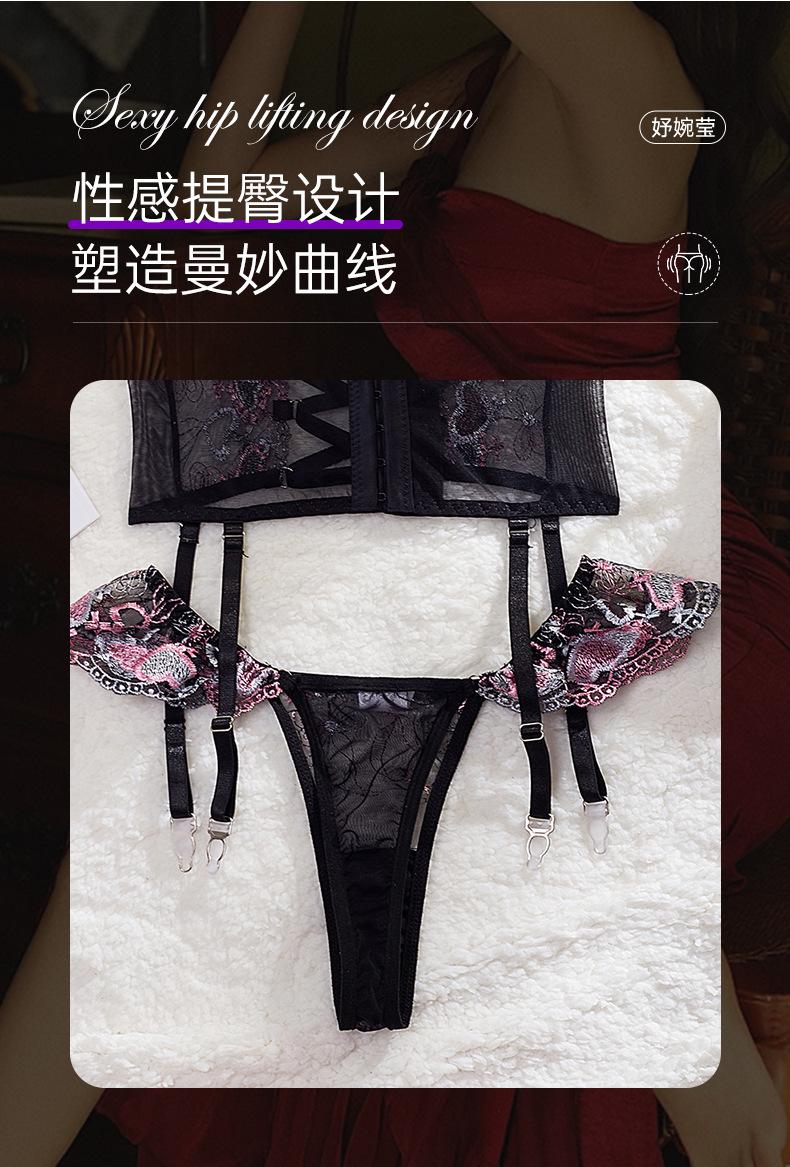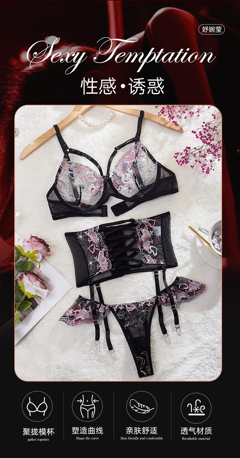 2024 Nuevo amor europeo y americano bordado sello de cintura tiras cruzadas traje de lencería sexy