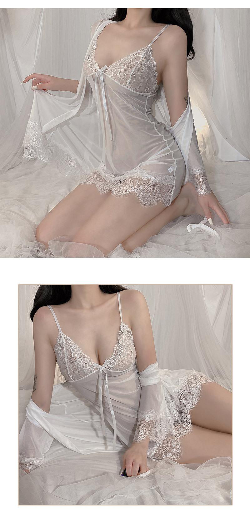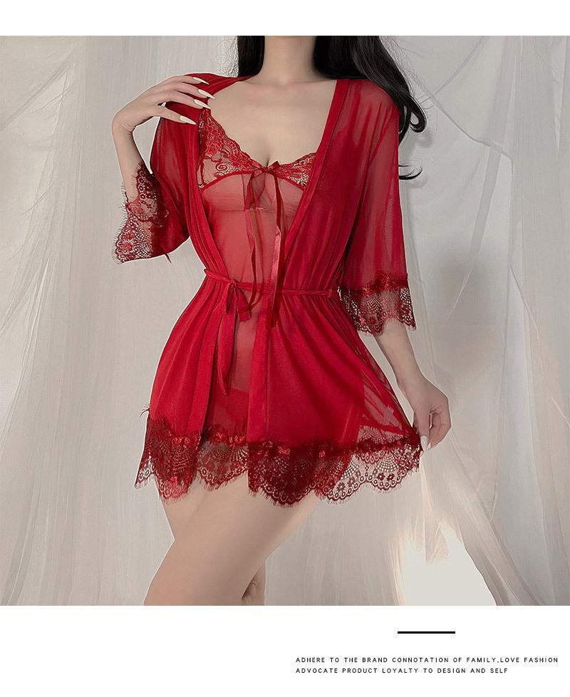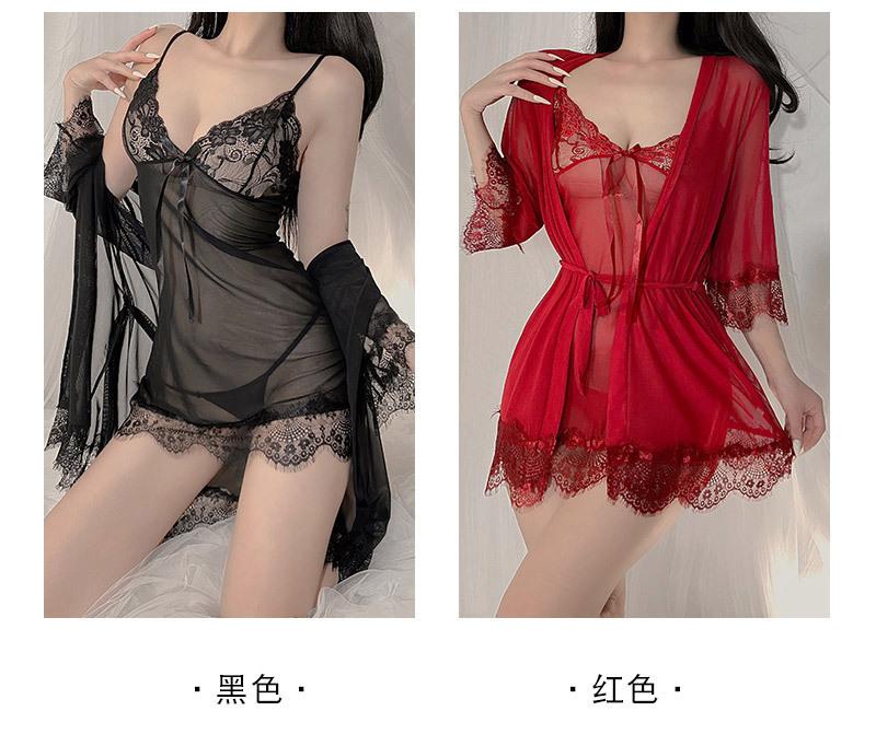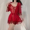 Amor Ropa Interior Sexy Sin Sueño Tentación de Encaje Sexy Camisón con Liguero de Lazo para Mujer Bata Exterior con Cordones Conjunto de Ropa para el Hogar