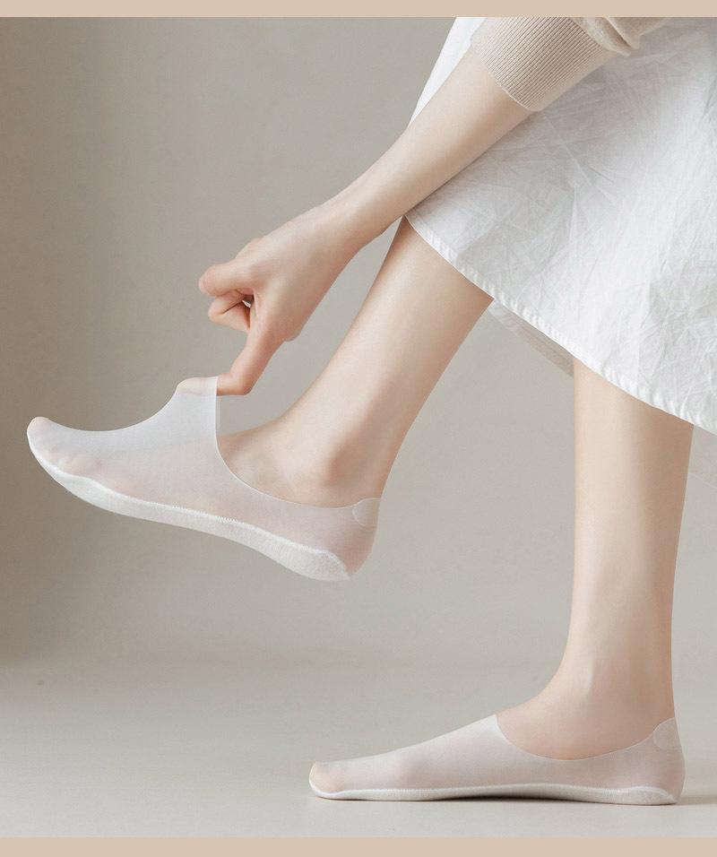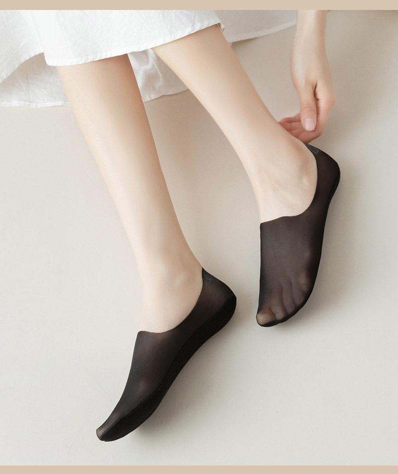 Calcetines de Barco para Mujer Verano Ultrafinos Boca Baja Invisibles Calcetines Negro Algodón Puro Parte Inferior Antideslizantes Talón que se Sale Calcetines Inferiores Calcetines de Verano