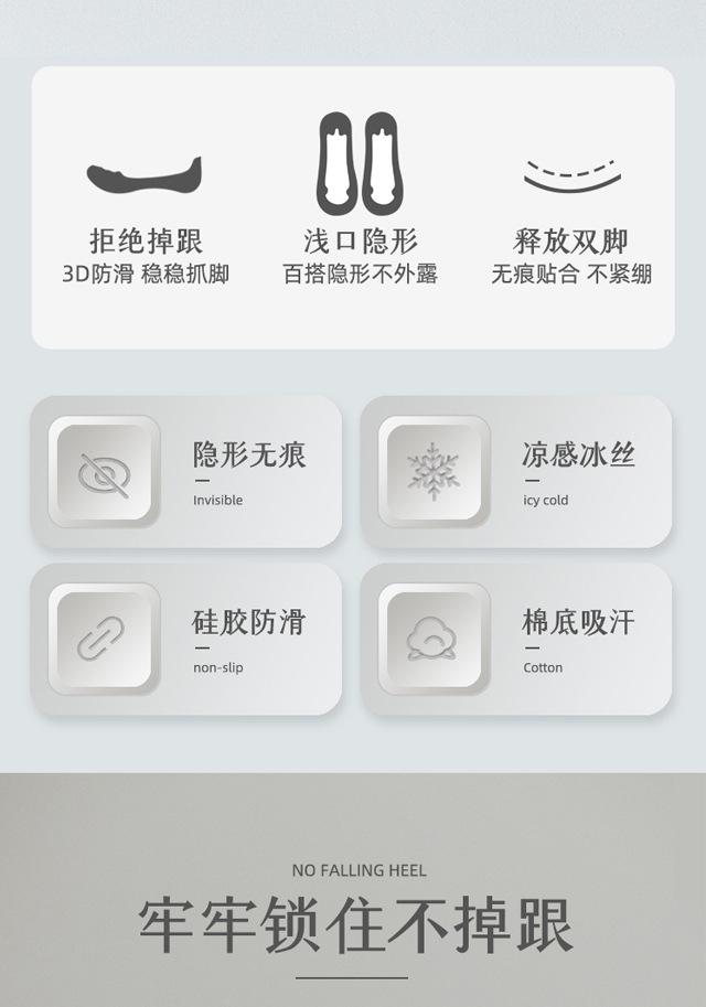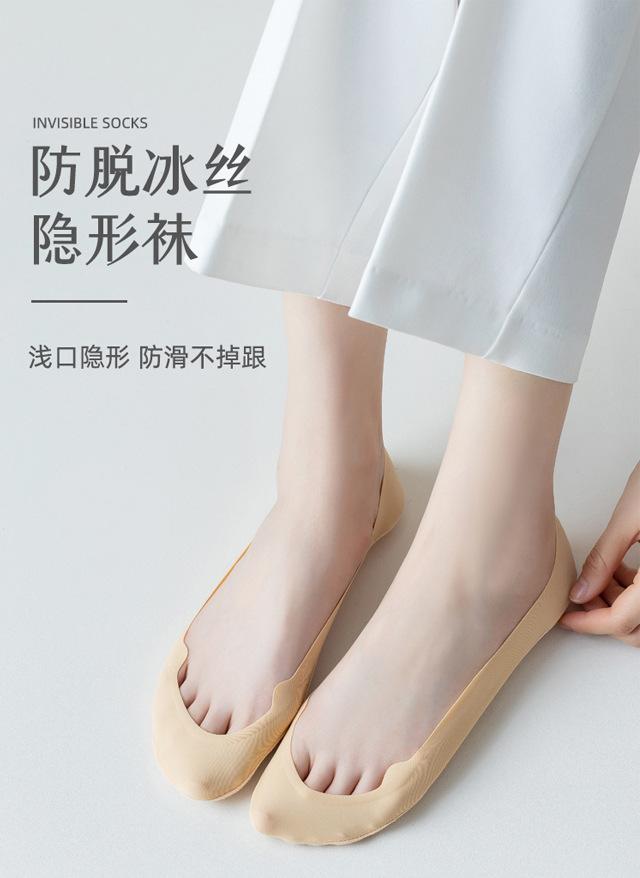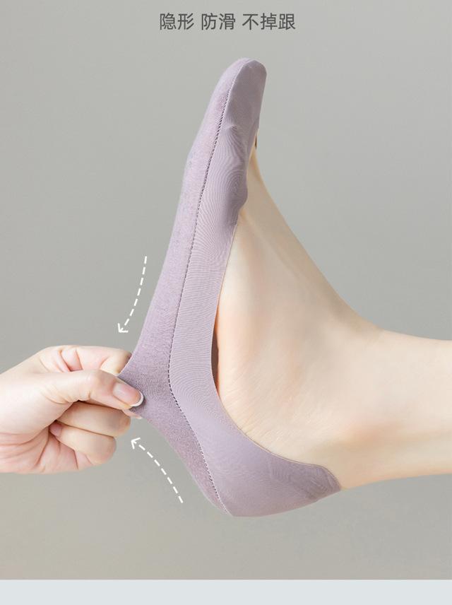 Calcetines Barco de Seda de Hielo para Mujer Verano Invisibles Antideslizantes Calcetines para Tacón Alto Calcetines Finos de Fondo de Algodón Puro Transpirables Bajos