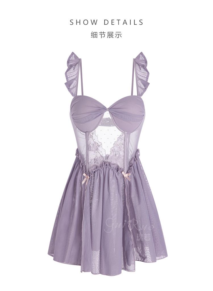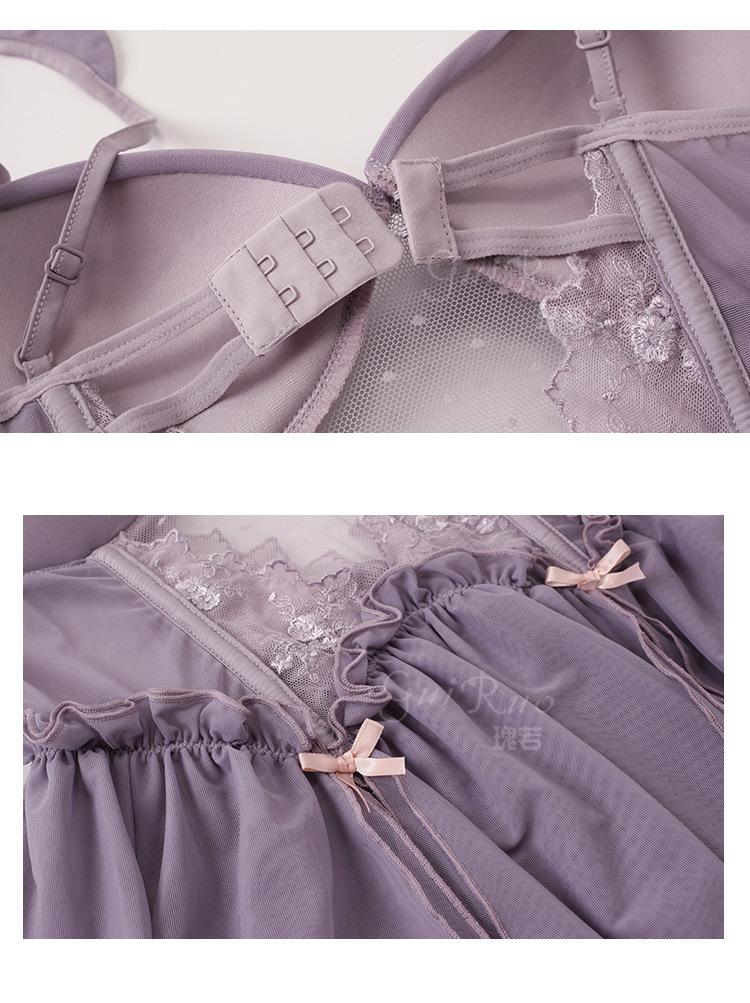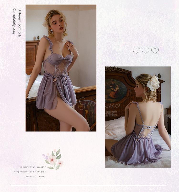 Guiruo talla grande Ropa interior sexy Malla hueca caliente Profundo V Push-up Con almohadilla para el pecho Plus Camisón Bata Traje de mujer P3455