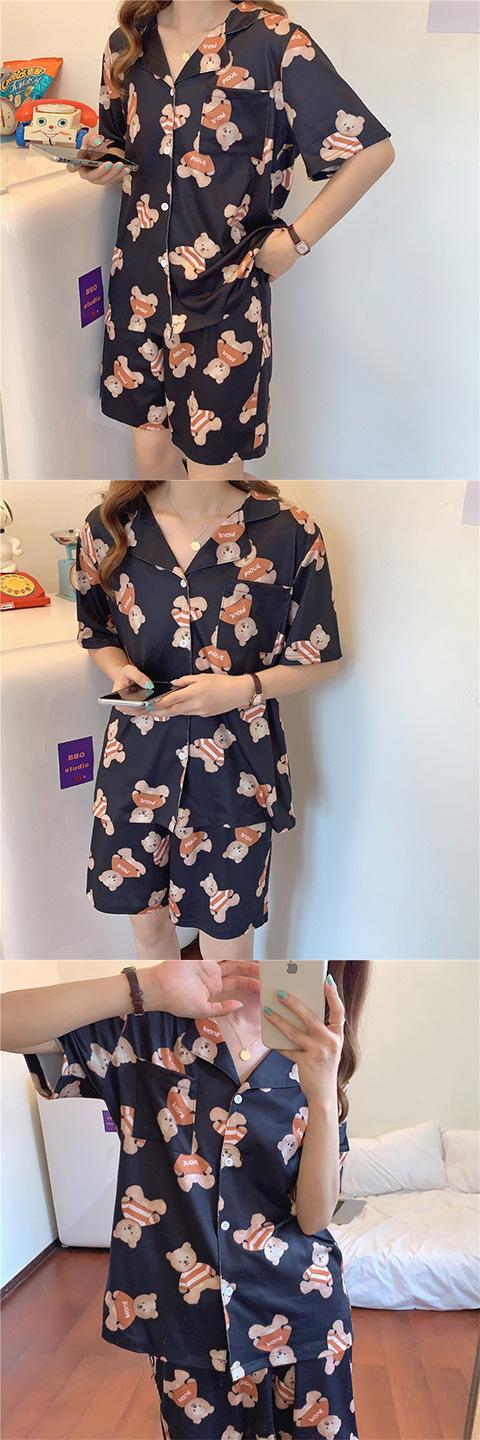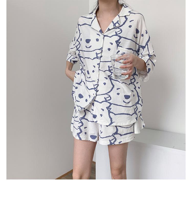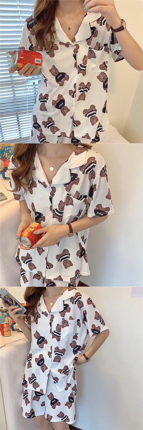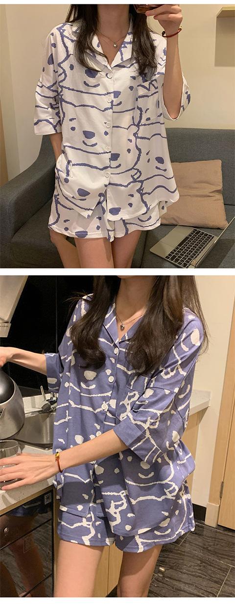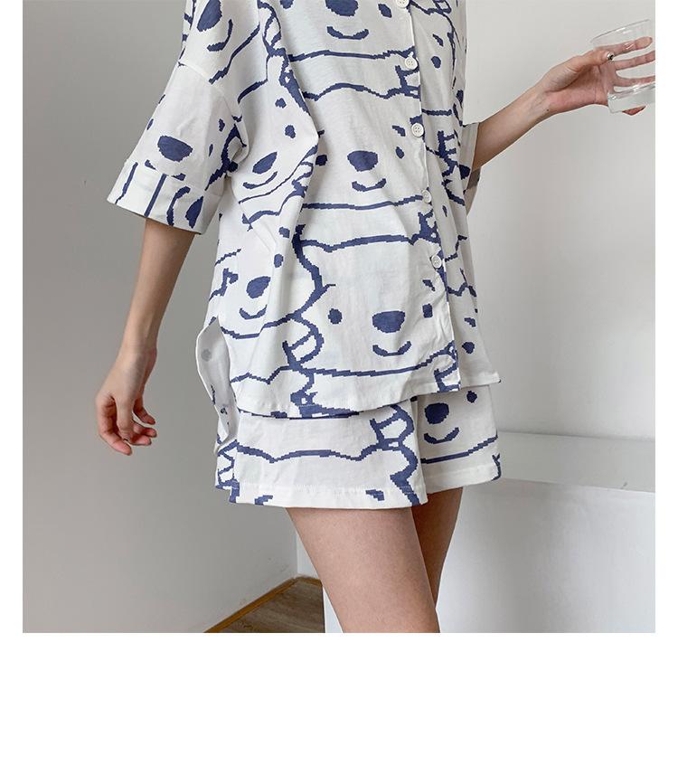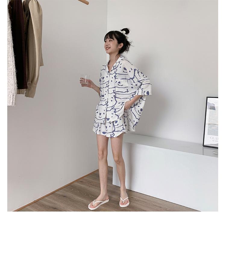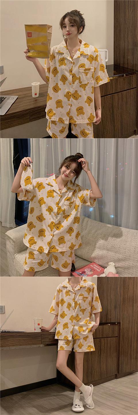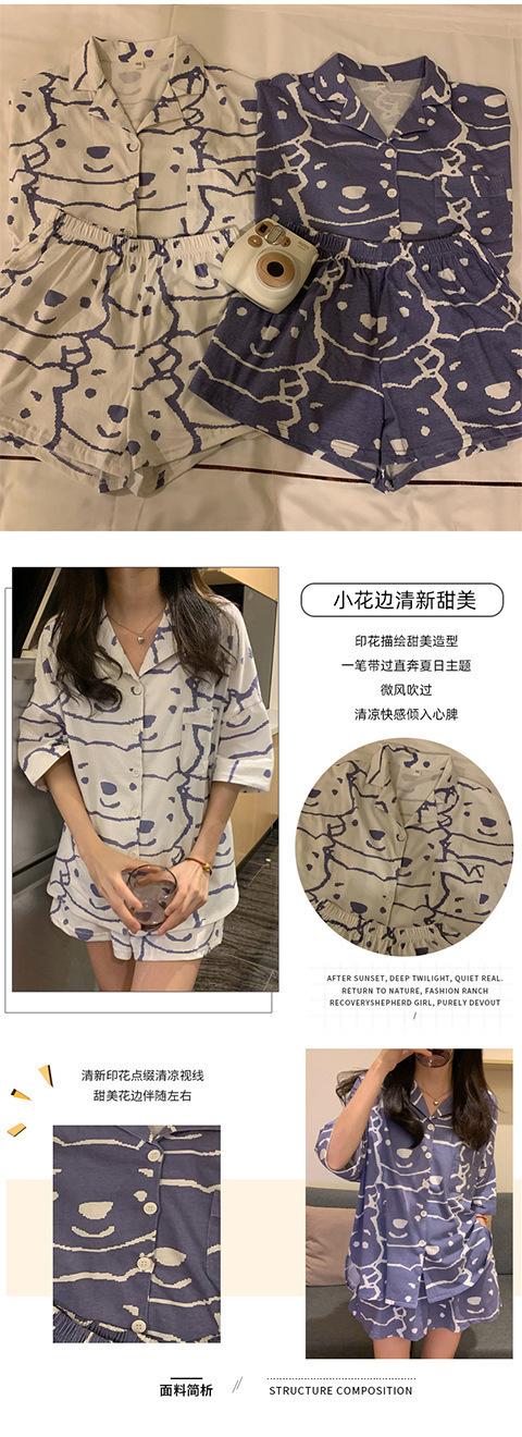 Pijama Cárdigan de Estilo Coreano Nuevo Traje de Verano para Mujer Ins Dulce y Lindo Dibujo Animado Estudiante Ropa para el Hogar Conjunto de Dos Piezas a la Moda
