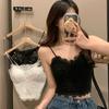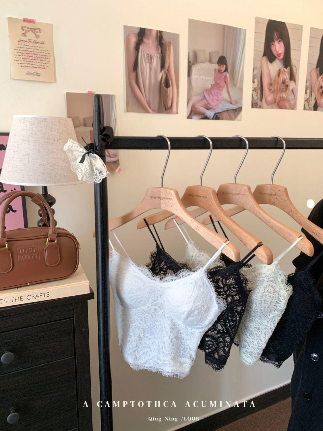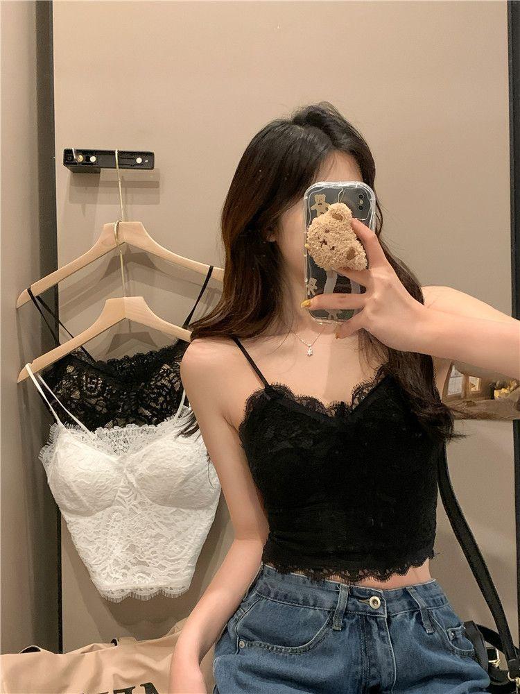 Camisola de Encaje de Pestañas Blanco Estilo Pure Wish para Mujer Chica Caliente con Almohadilla en el Pecho Espalda Hermosa Ajustado Adelgazante Top Interior para Verano