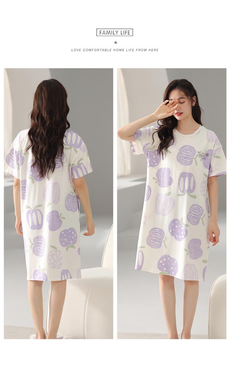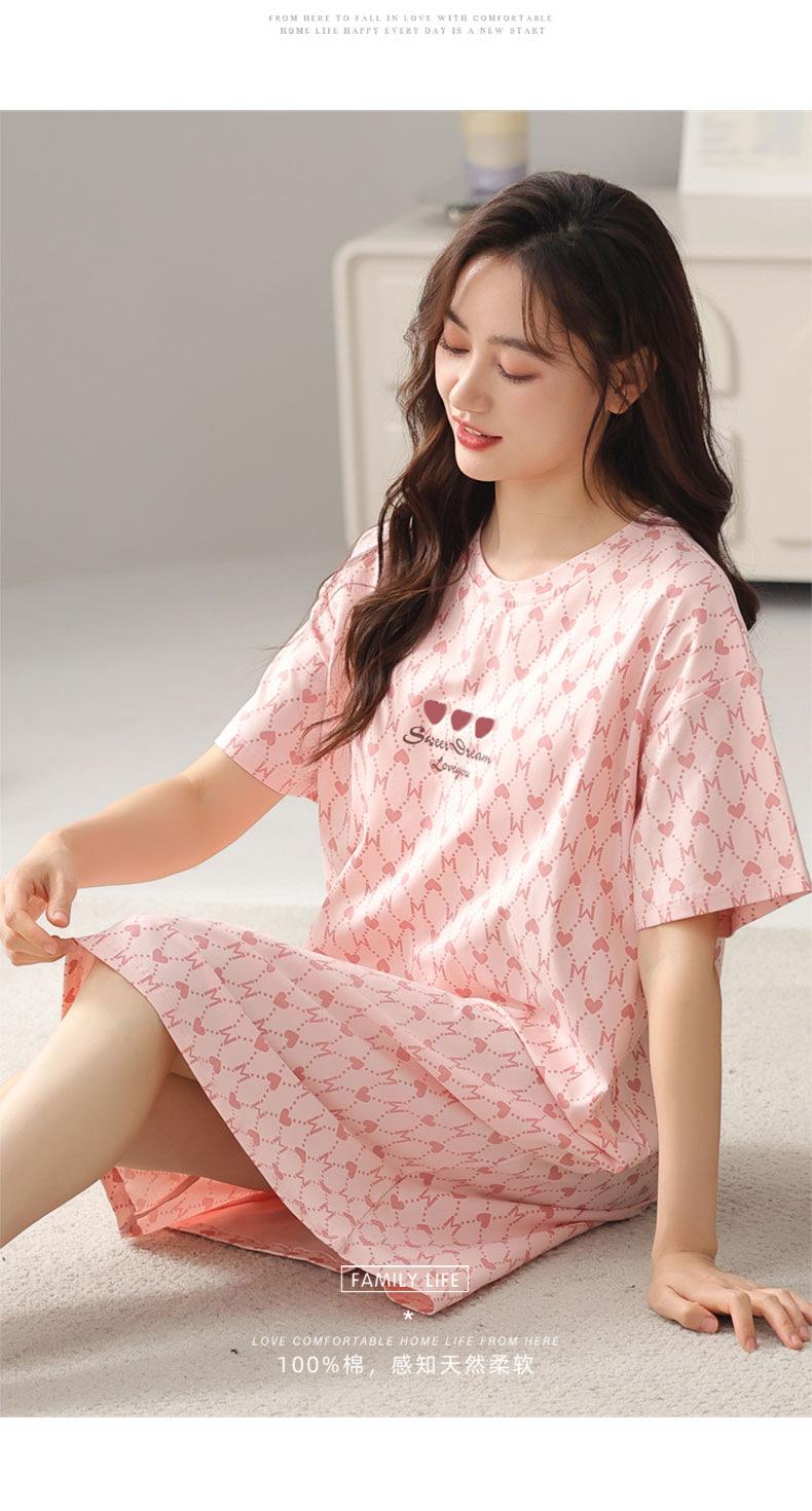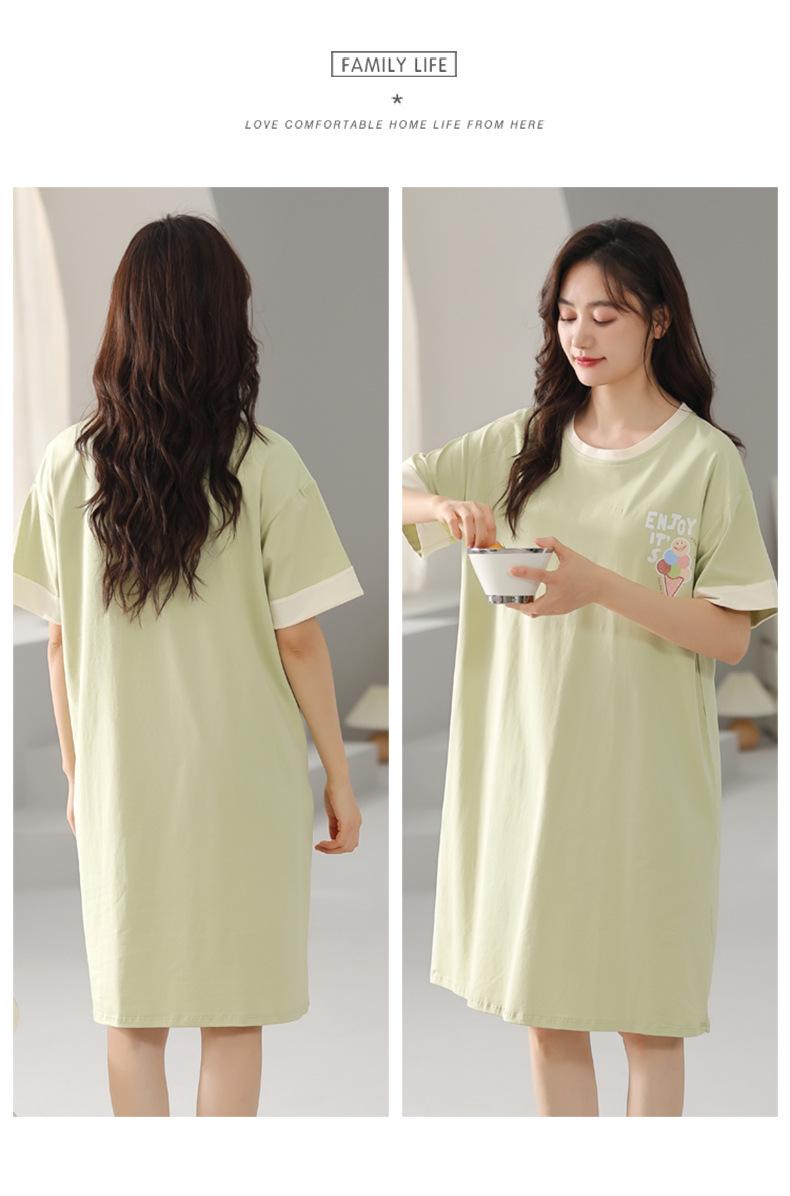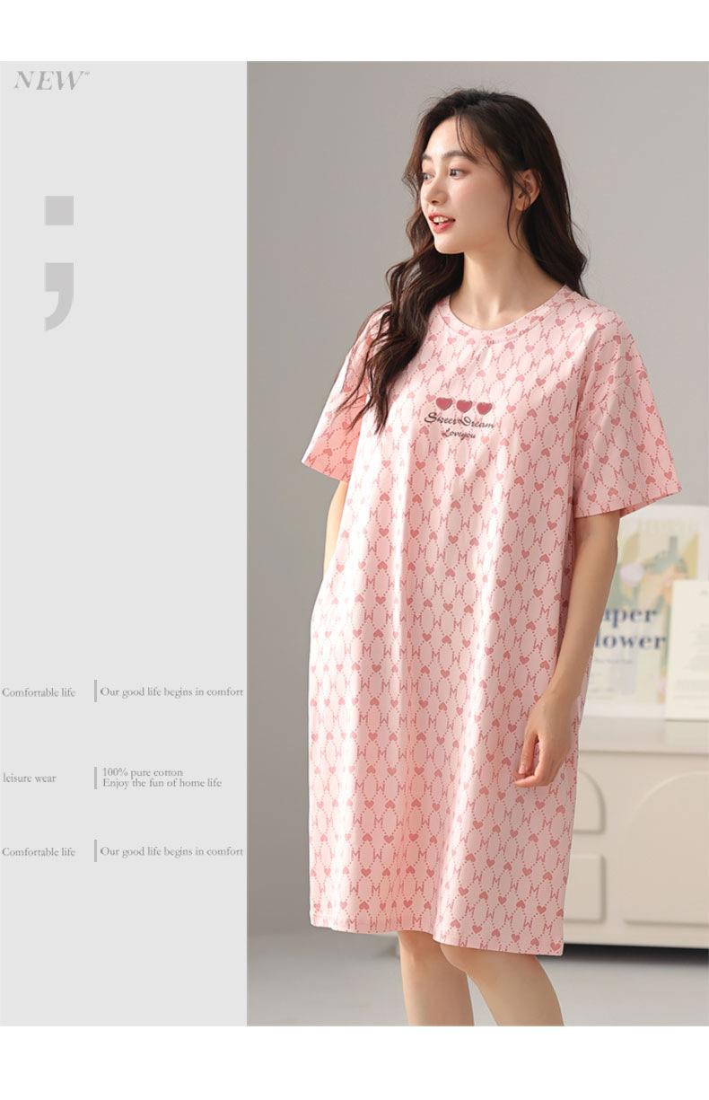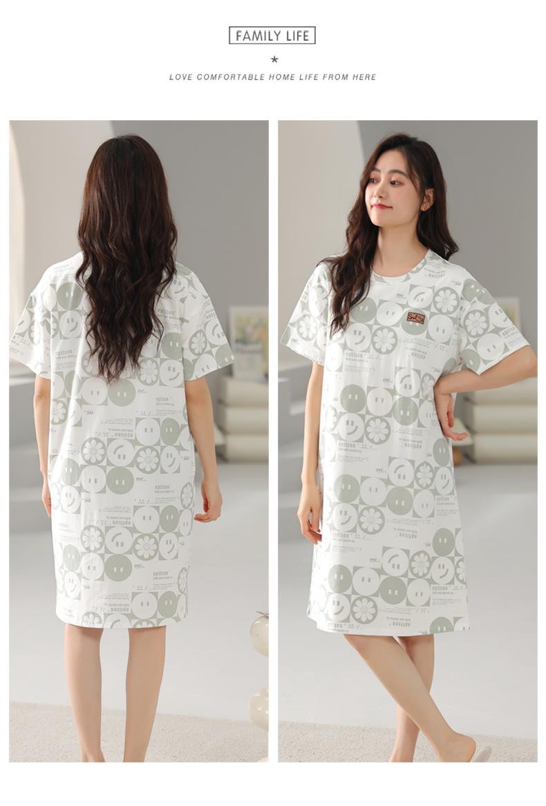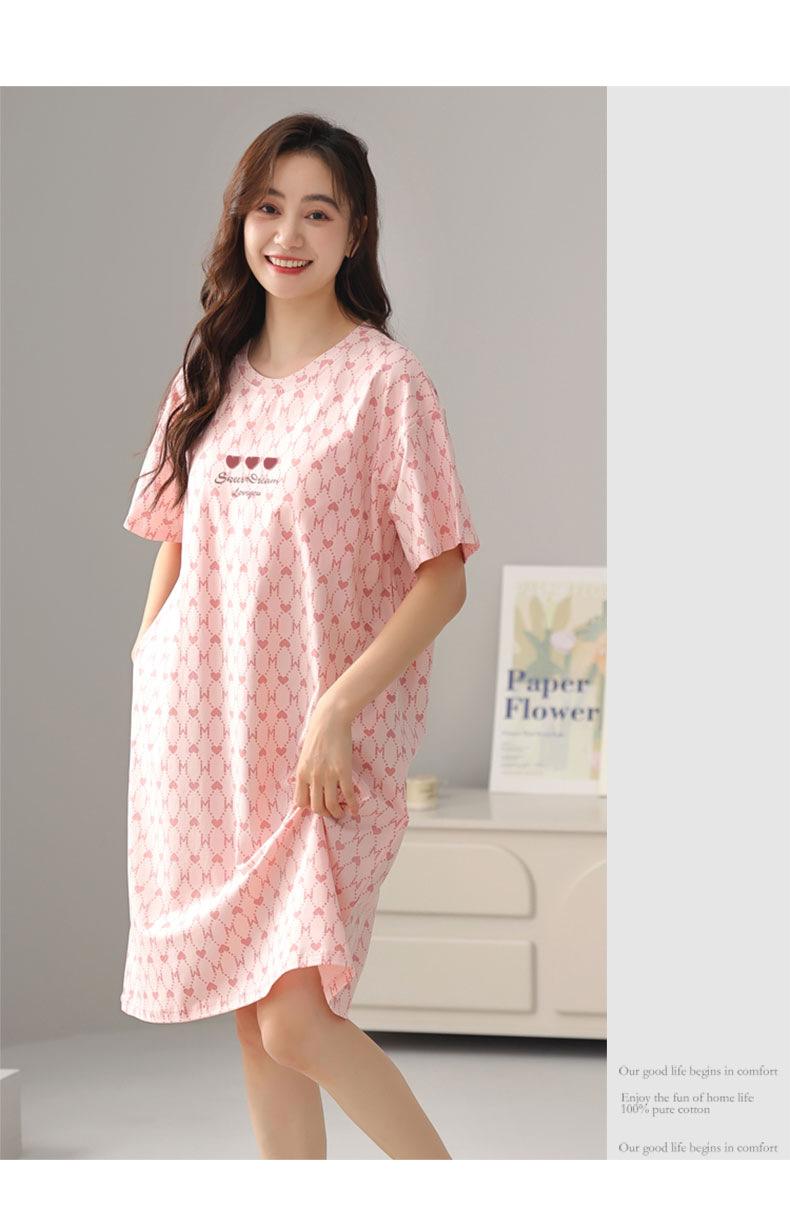 Nuevo Estilo Almohadilla para el Busto Camisón de Verano Algodón Puro Holgado Cuello Redondo Manga Corta Dulce Fino Pijama Se Puede Usar Fuera Ropa de Casa Vestido