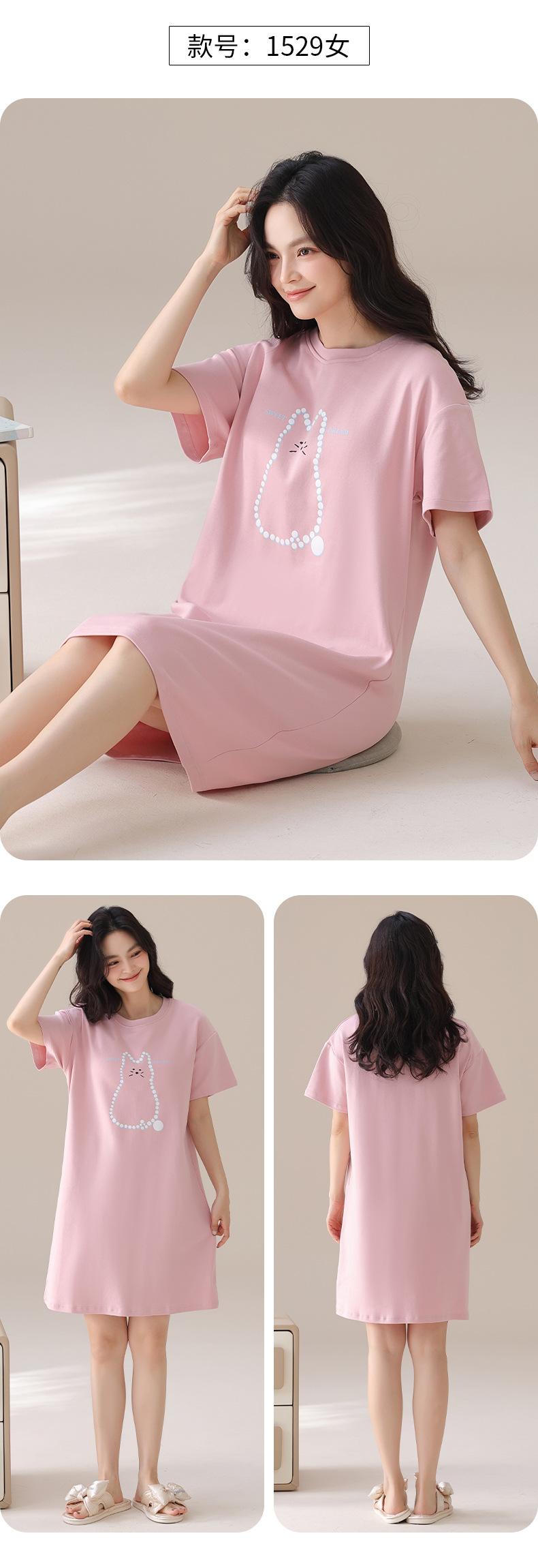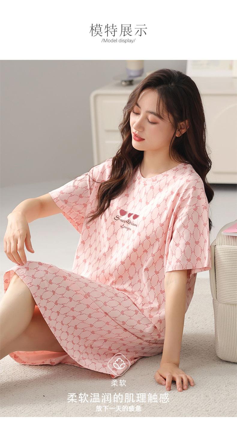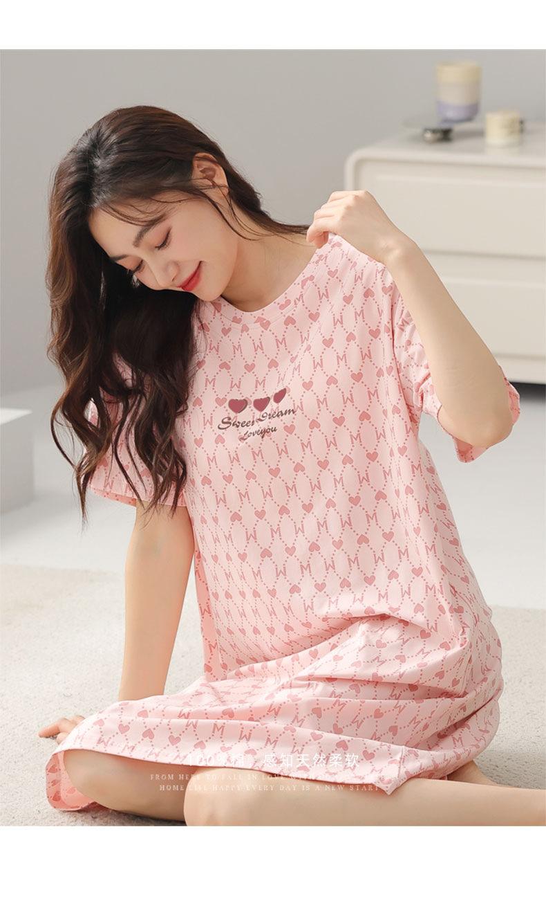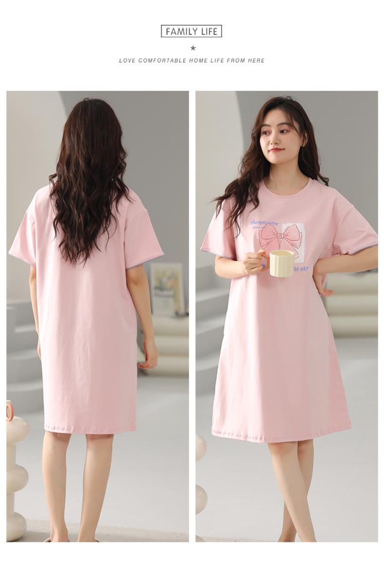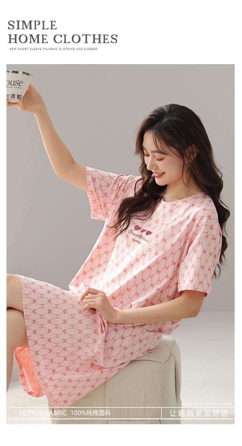 Nuevo Estilo Almohadilla para el Busto Camisón de Verano Algodón Puro Holgado Cuello Redondo Manga Corta Dulce Fino Pijama Se Puede Usar Fuera Ropa de Casa Vestido