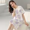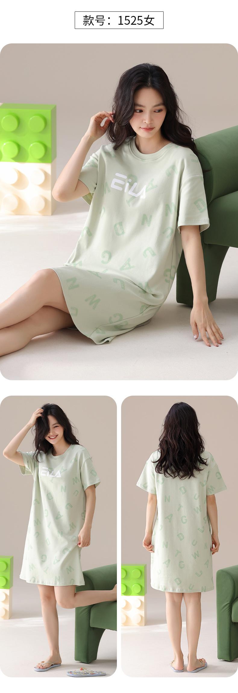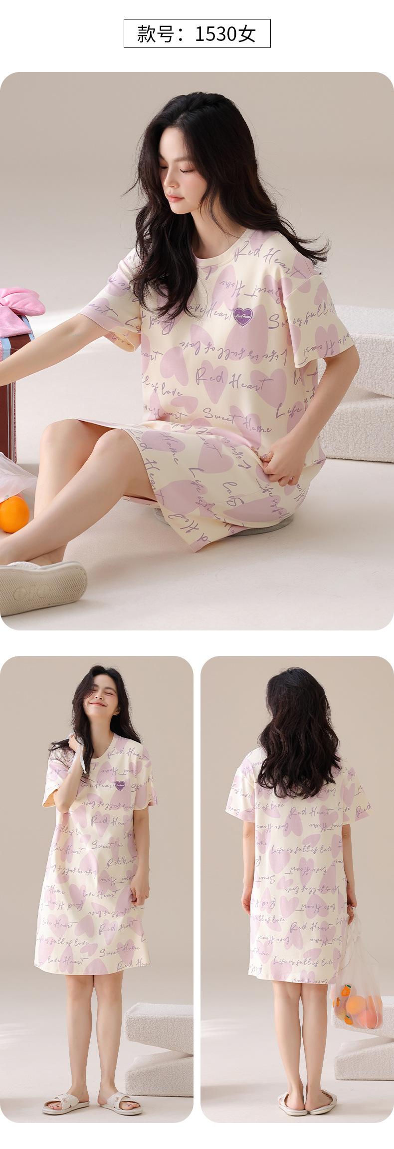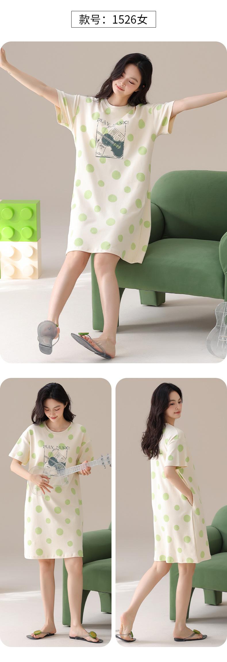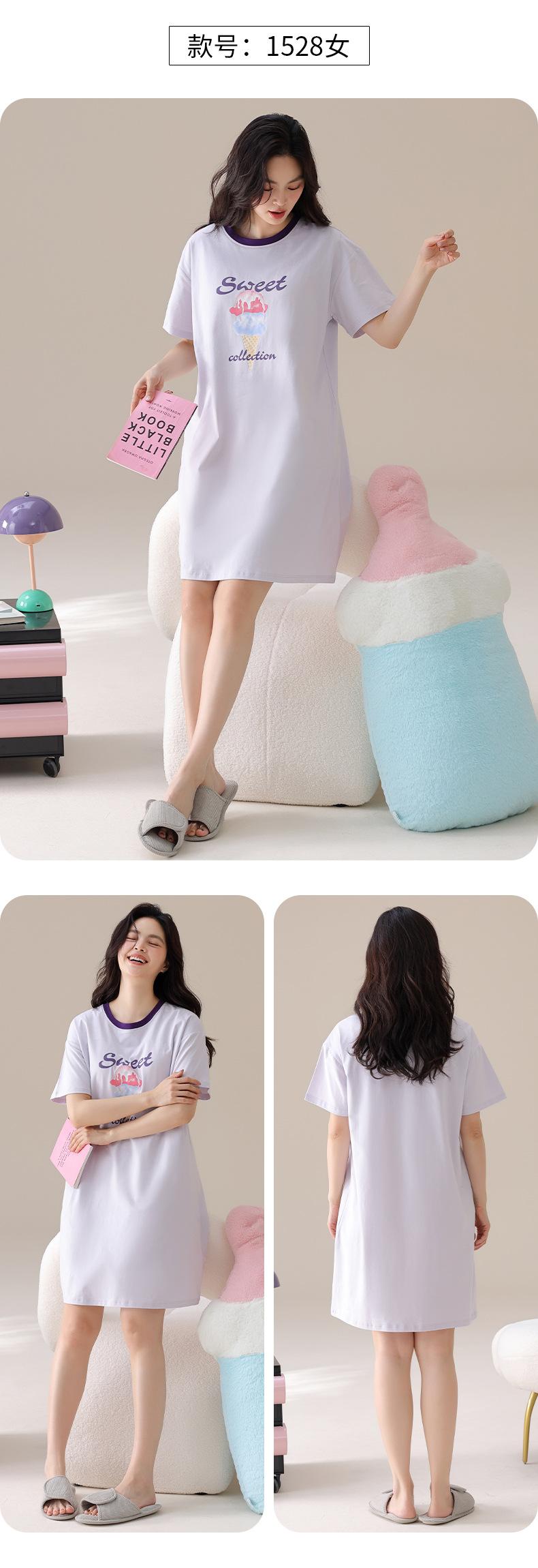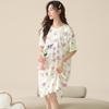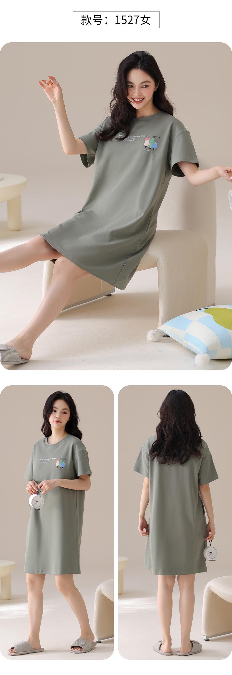 Nuevo Estilo Almohadilla para el Busto Camisón de Verano Algodón Puro Holgado Cuello Redondo Manga Corta Dulce Fino Pijama Se Puede Usar Fuera Ropa de Casa Vestido