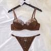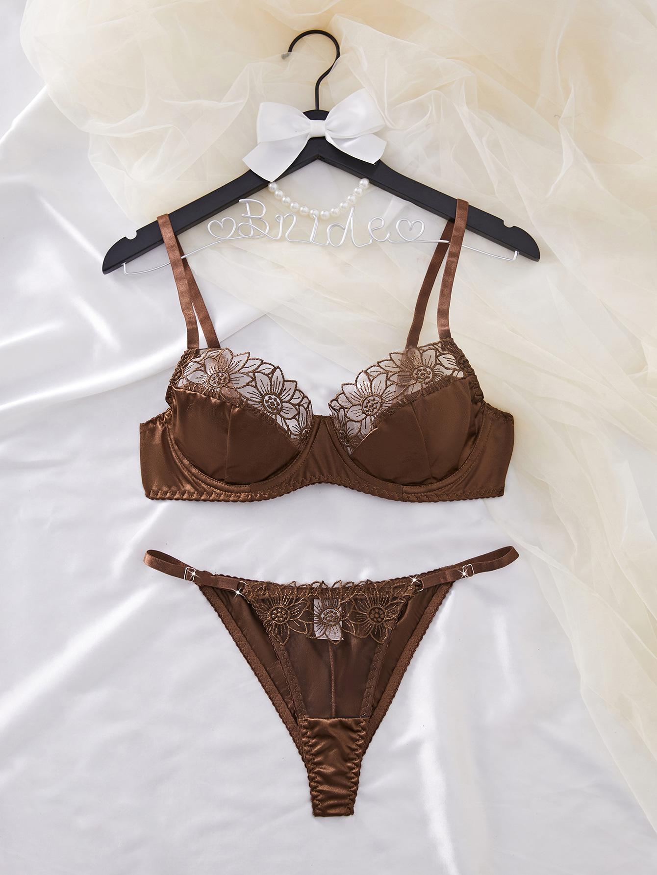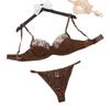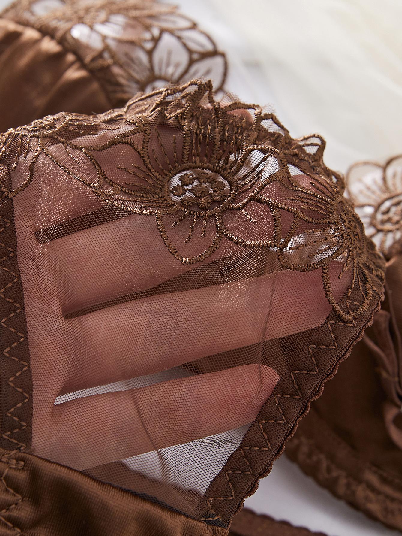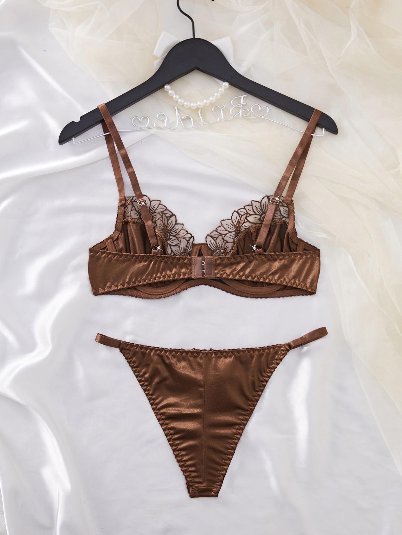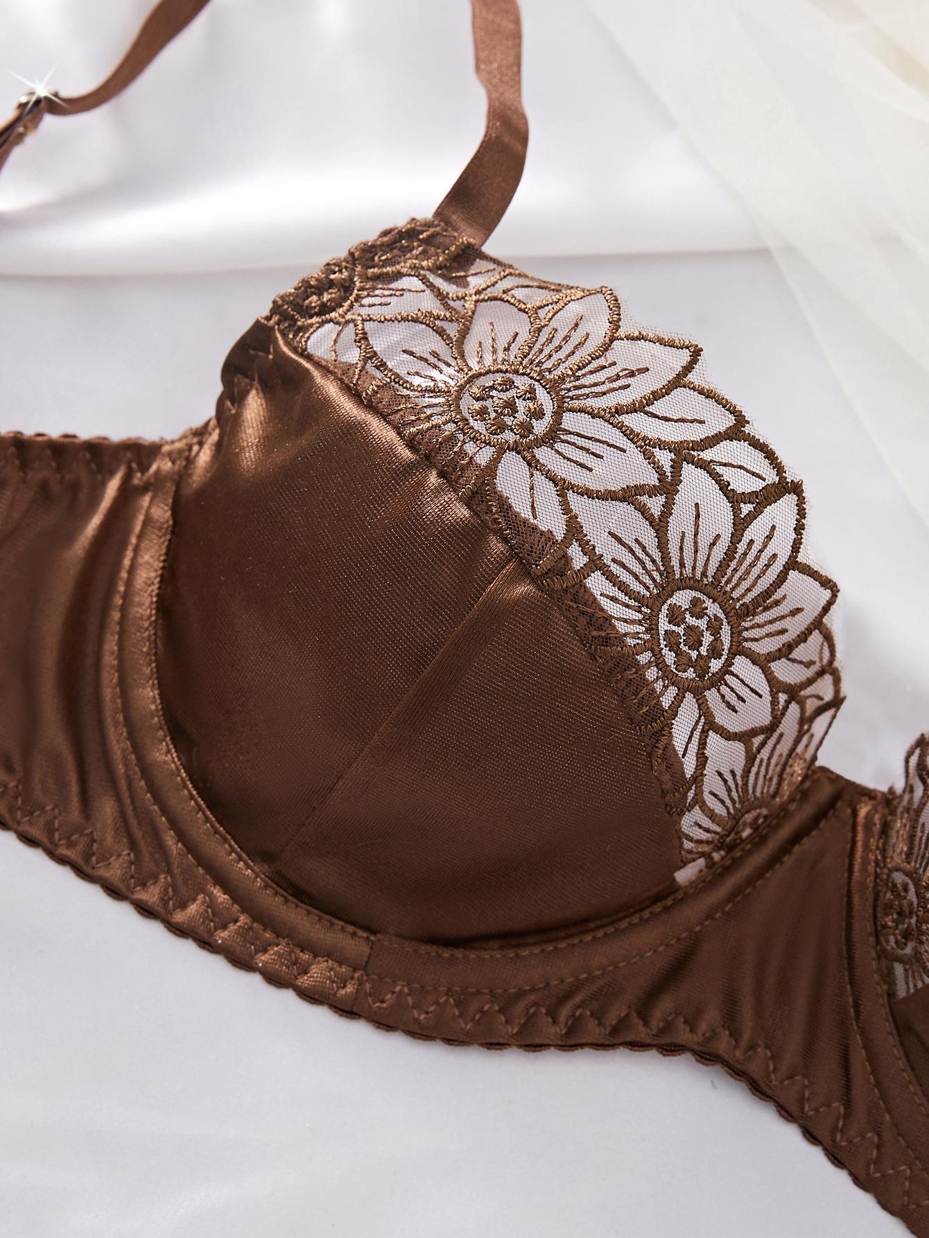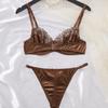 Ropa Interior Sexy Europea y Americana Transfronteriza Retro Francesa Satén Flor Bordada Aro de Acero Push-Up Muestra Pechos Grandes Set Sexy Pequeño