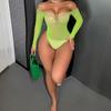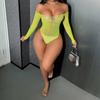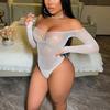 Lencería Sexy de Manga Larga con Malla de Pedrería, Borgoña Calado Transfronterizo Europeo y Americano Body Bikini Tzk292
