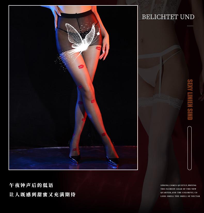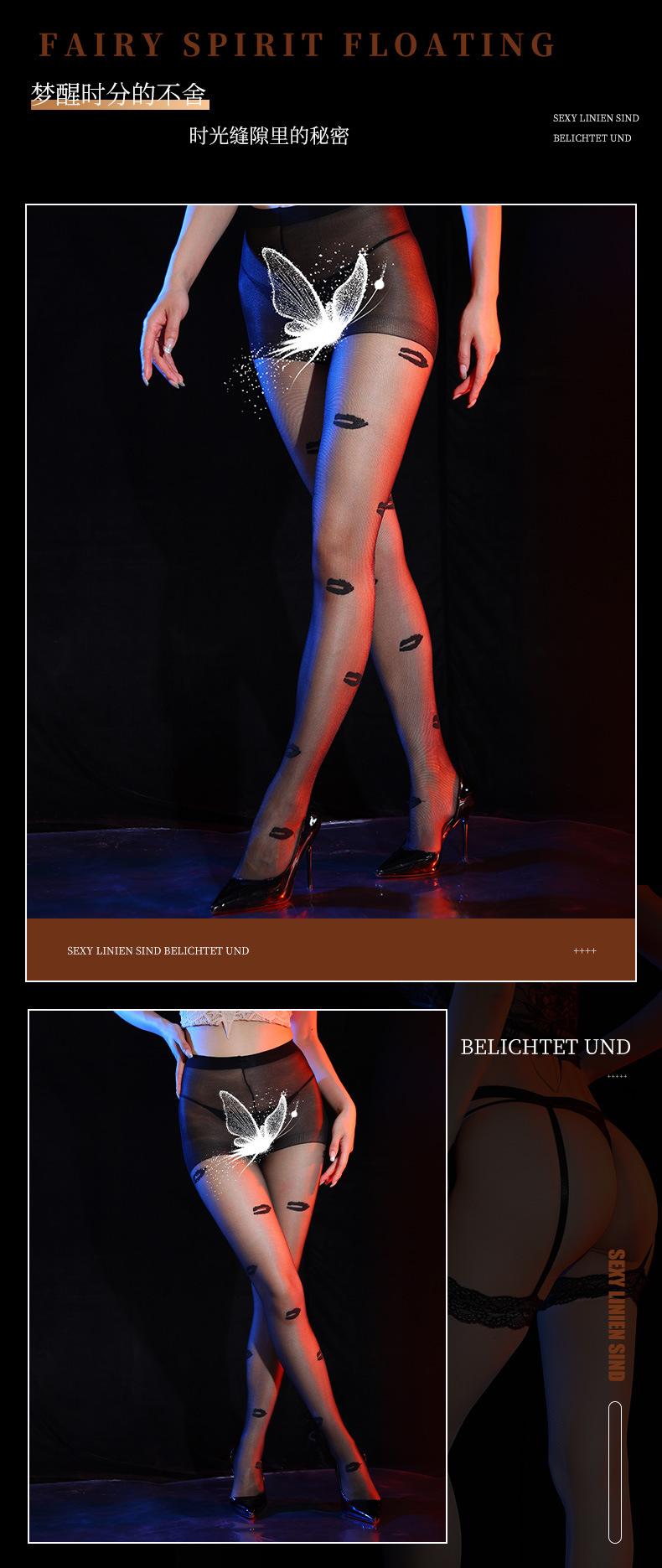 Calcetines Negros de Seda Ultrafinos de Verano con Estampado de Labios Rojos para Mujer, Medias Reductoras Negras Transparentes Sexy de Cintura Alta