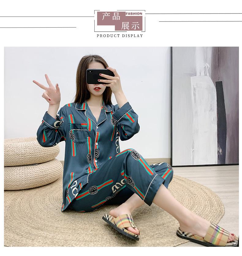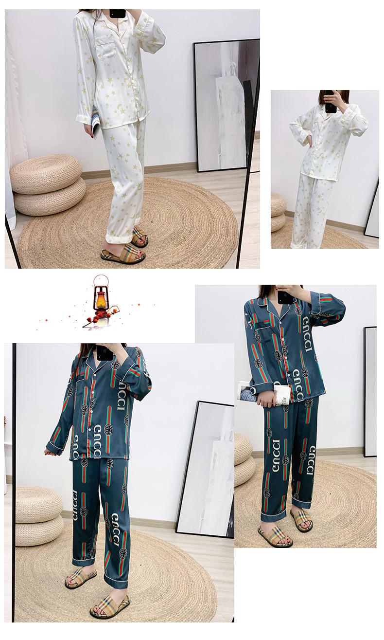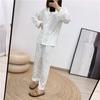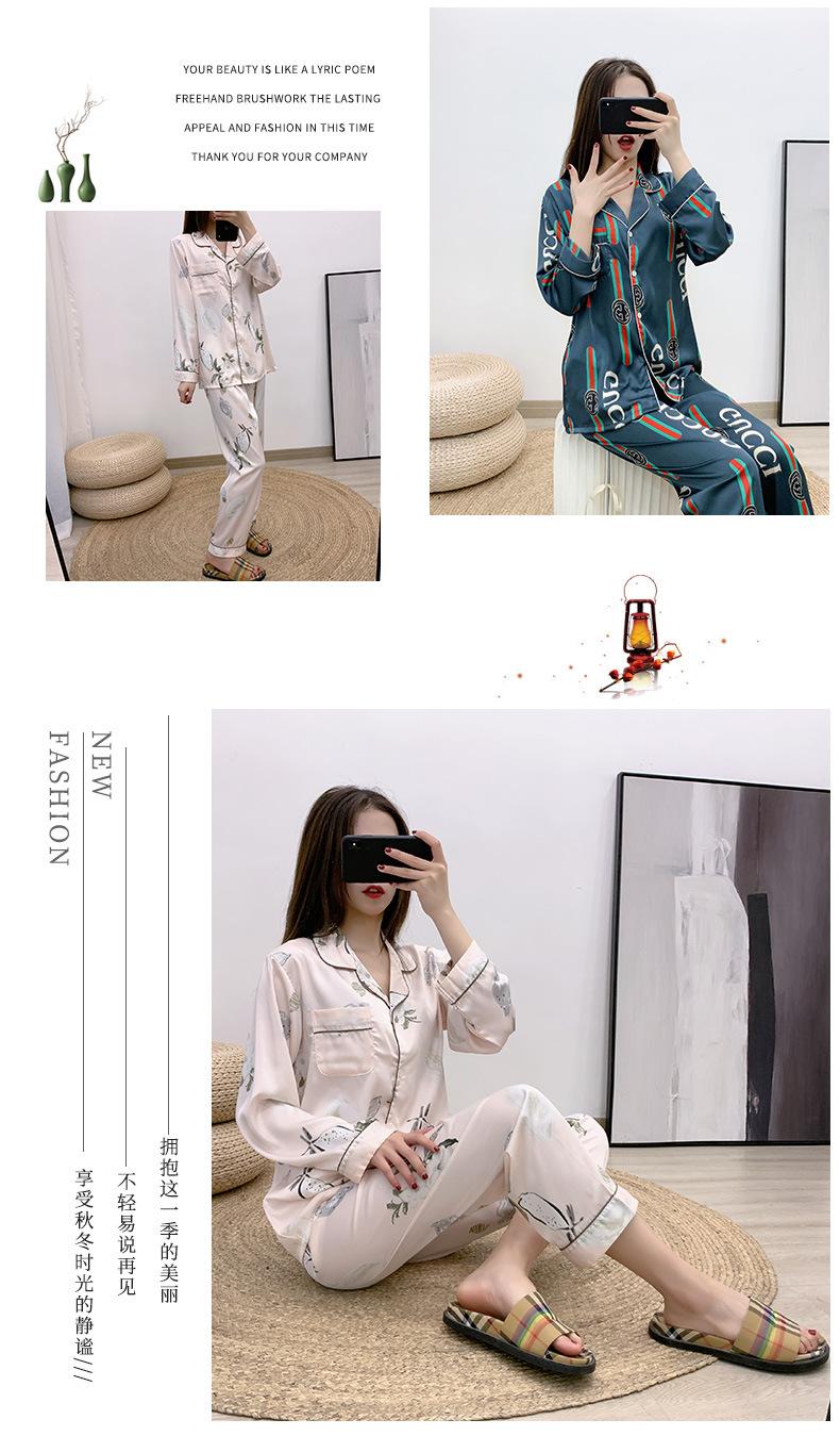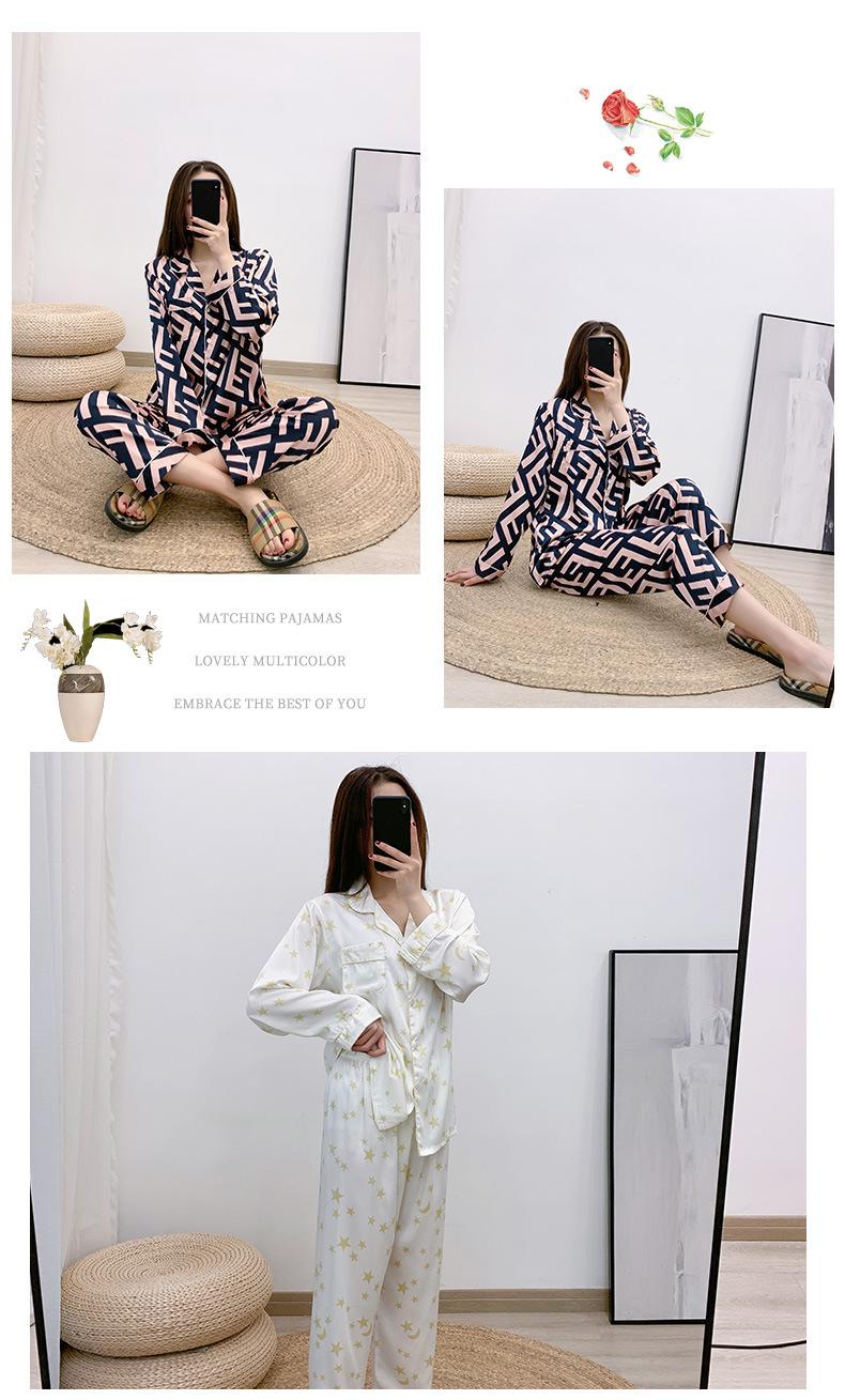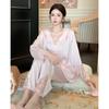 Conjunto de dos piezas de ropa para el hogar para mujer nuevo Primavera y Verano Pijama de satén y chifón Cárdigan Solapa Manga larga Pantalones Pijama